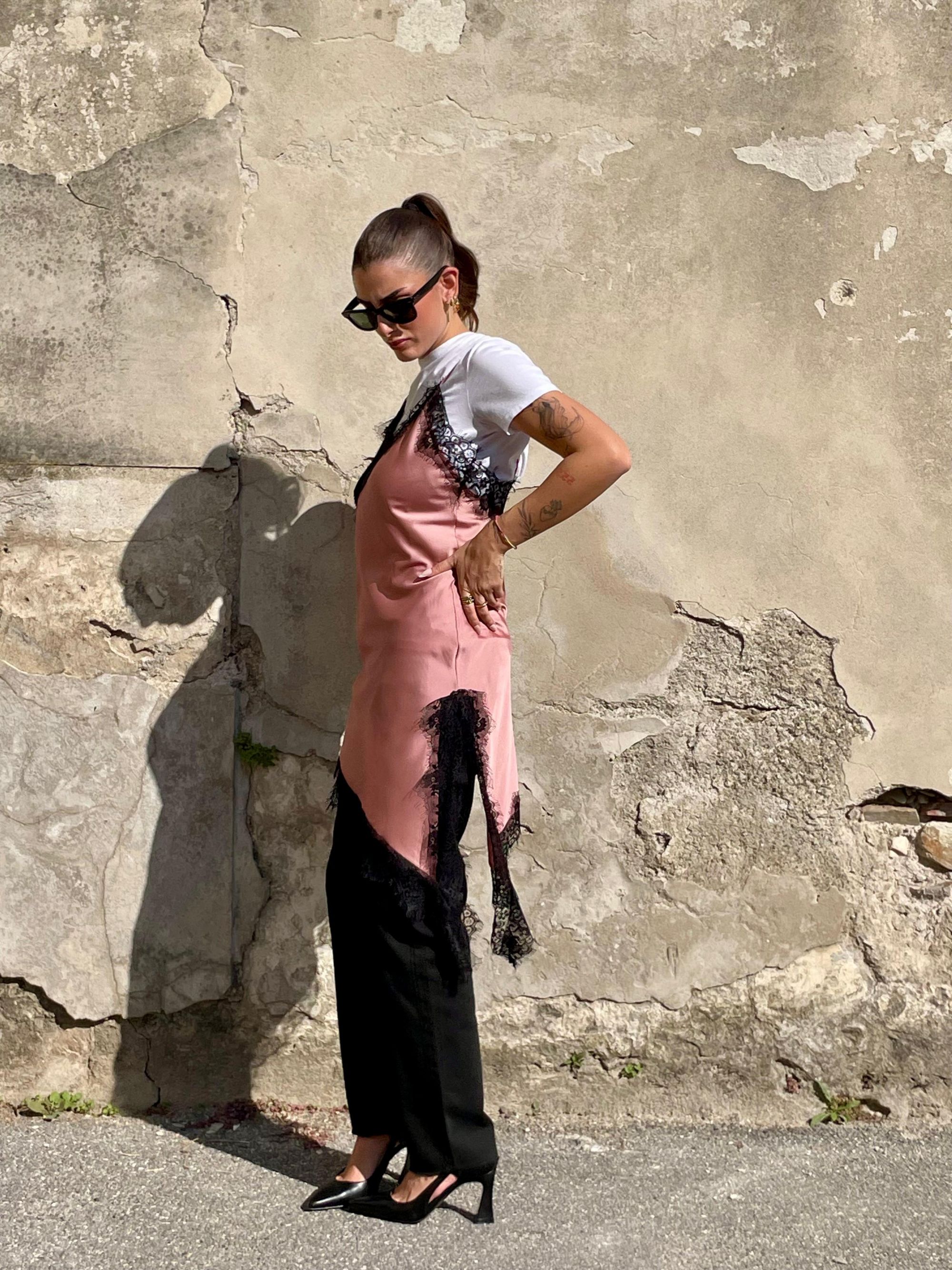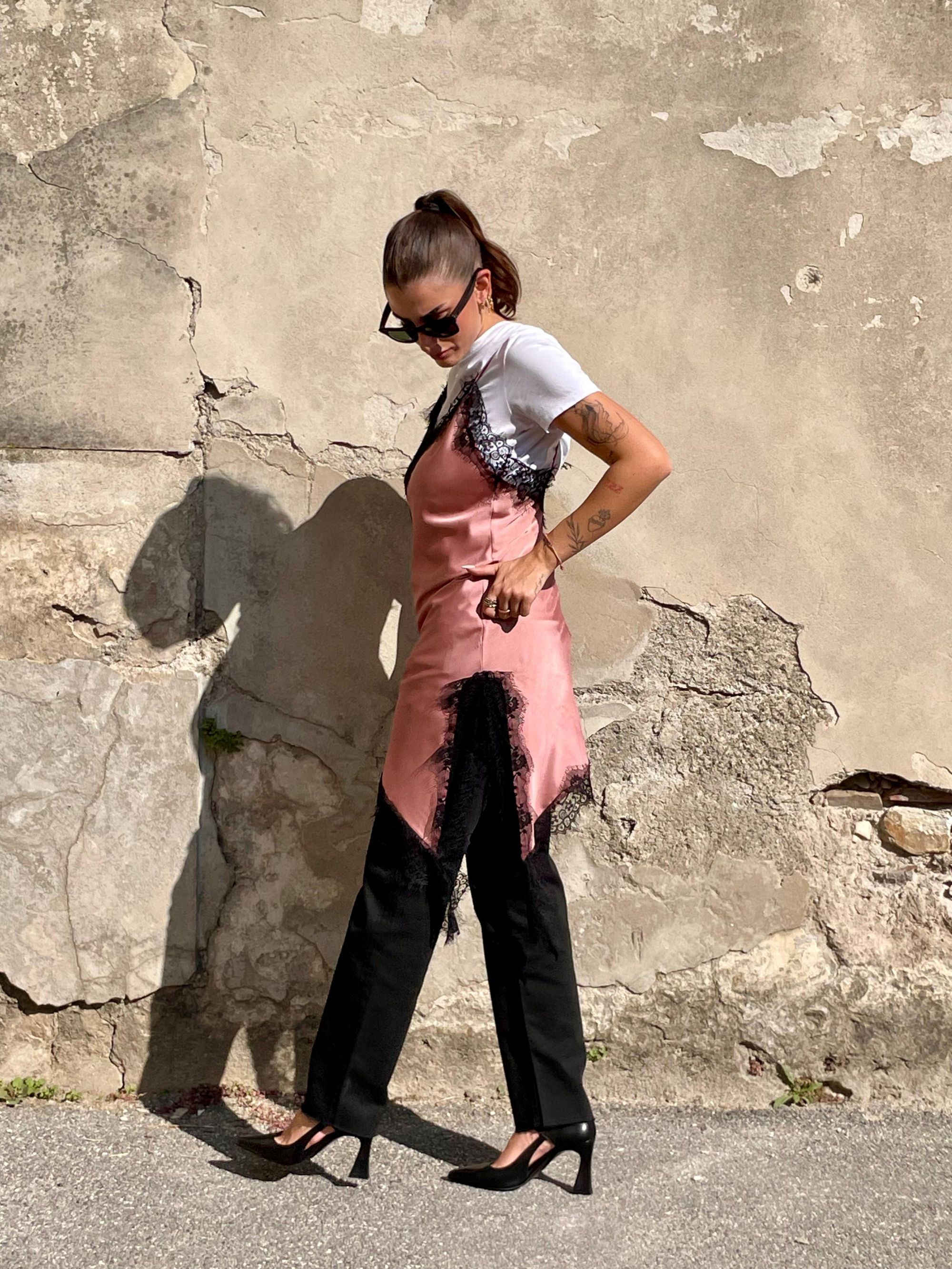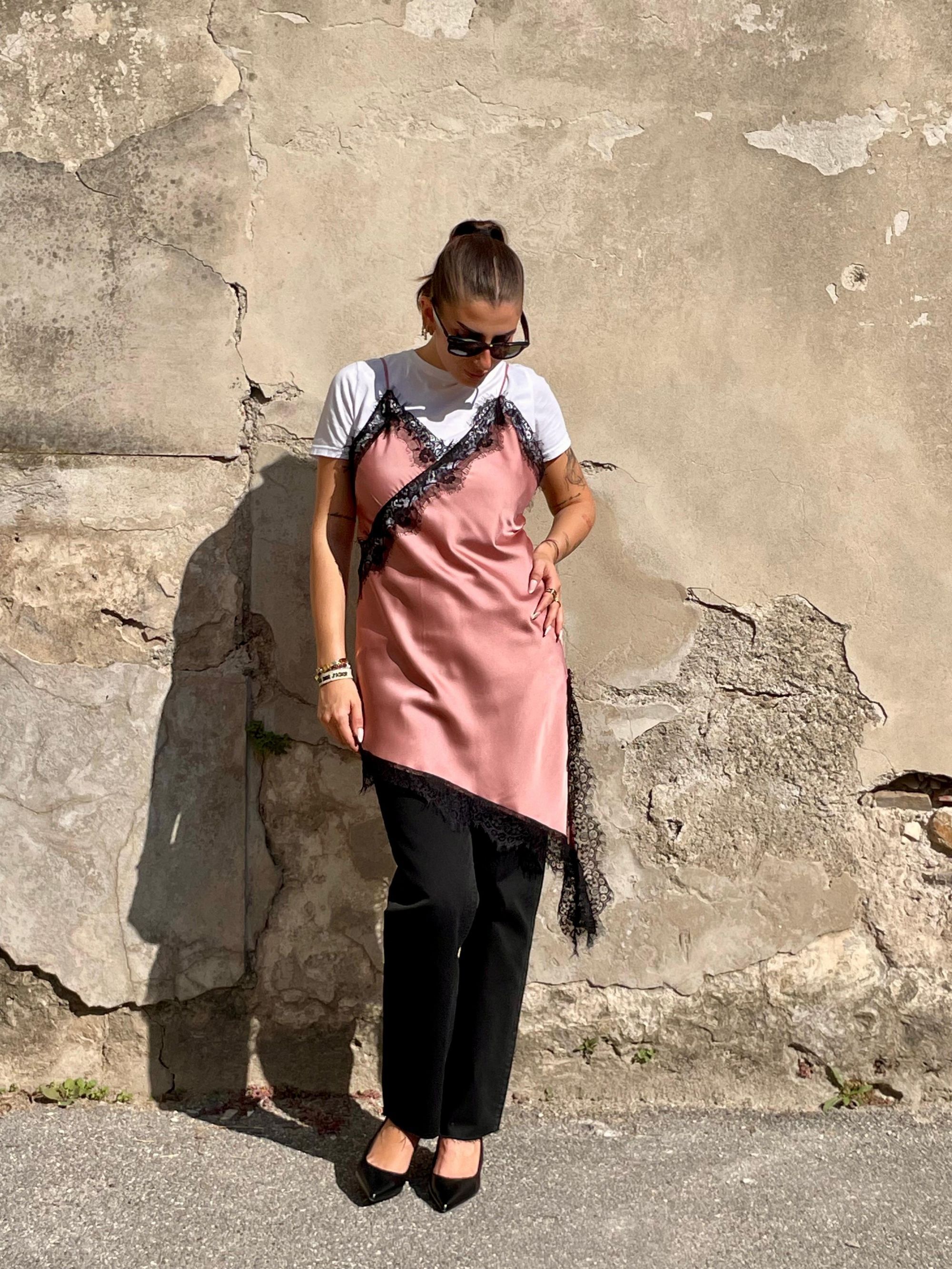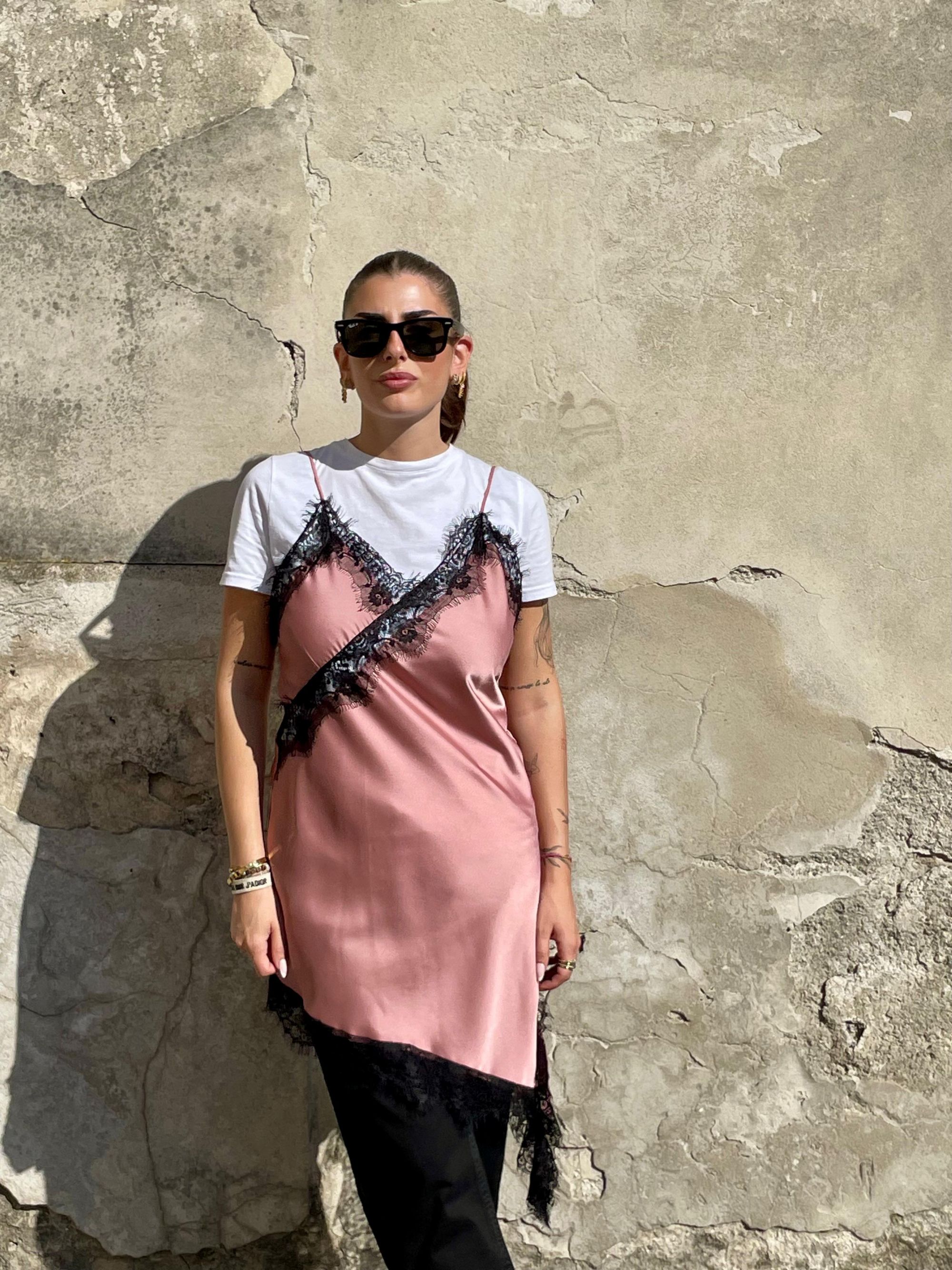 SUSY MIX - ABITO SOTTOVESTE ROSA RIFINITO IN PIZZO ART. D2205T59