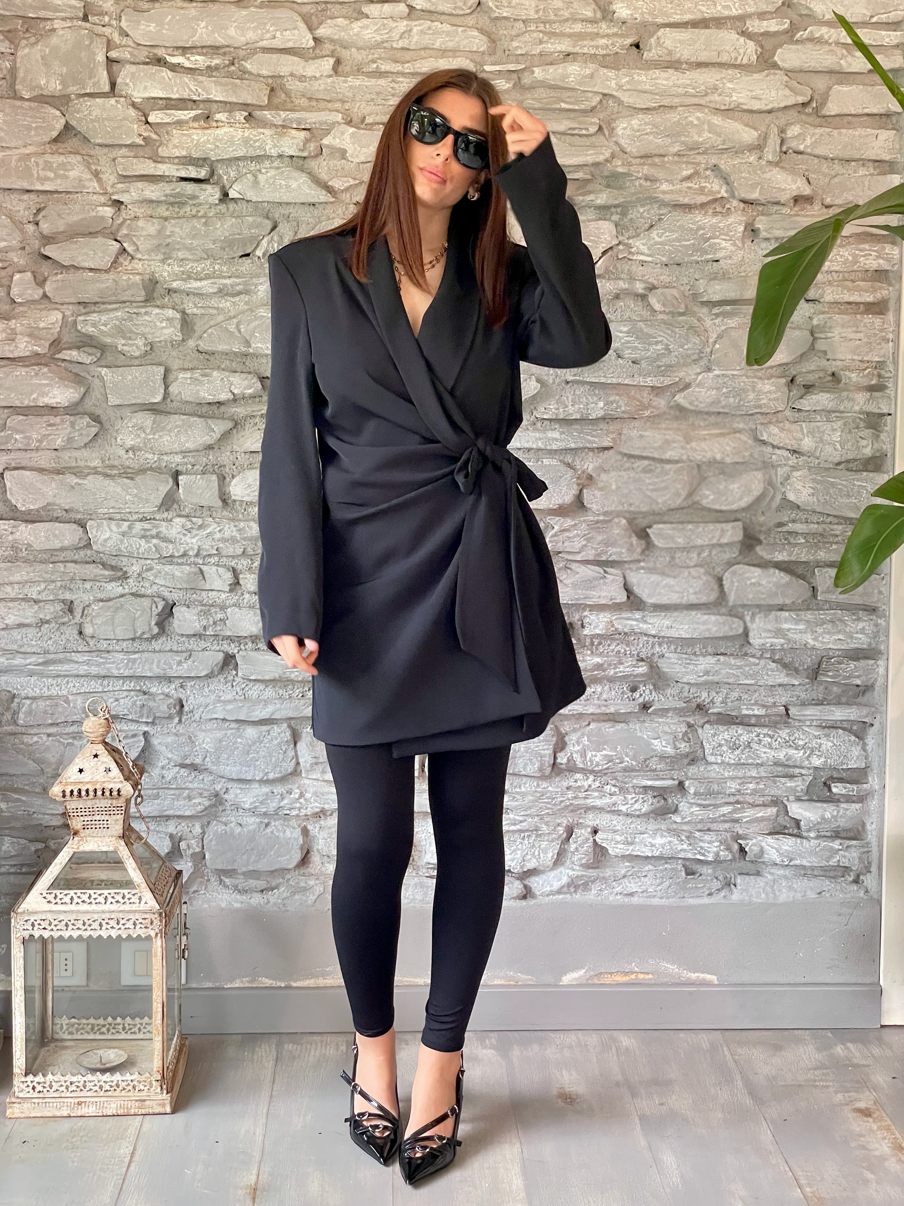 TENSIONE IN - ABITO NERO A PORTAFOGLIO CON FIOCCO ART. 38207