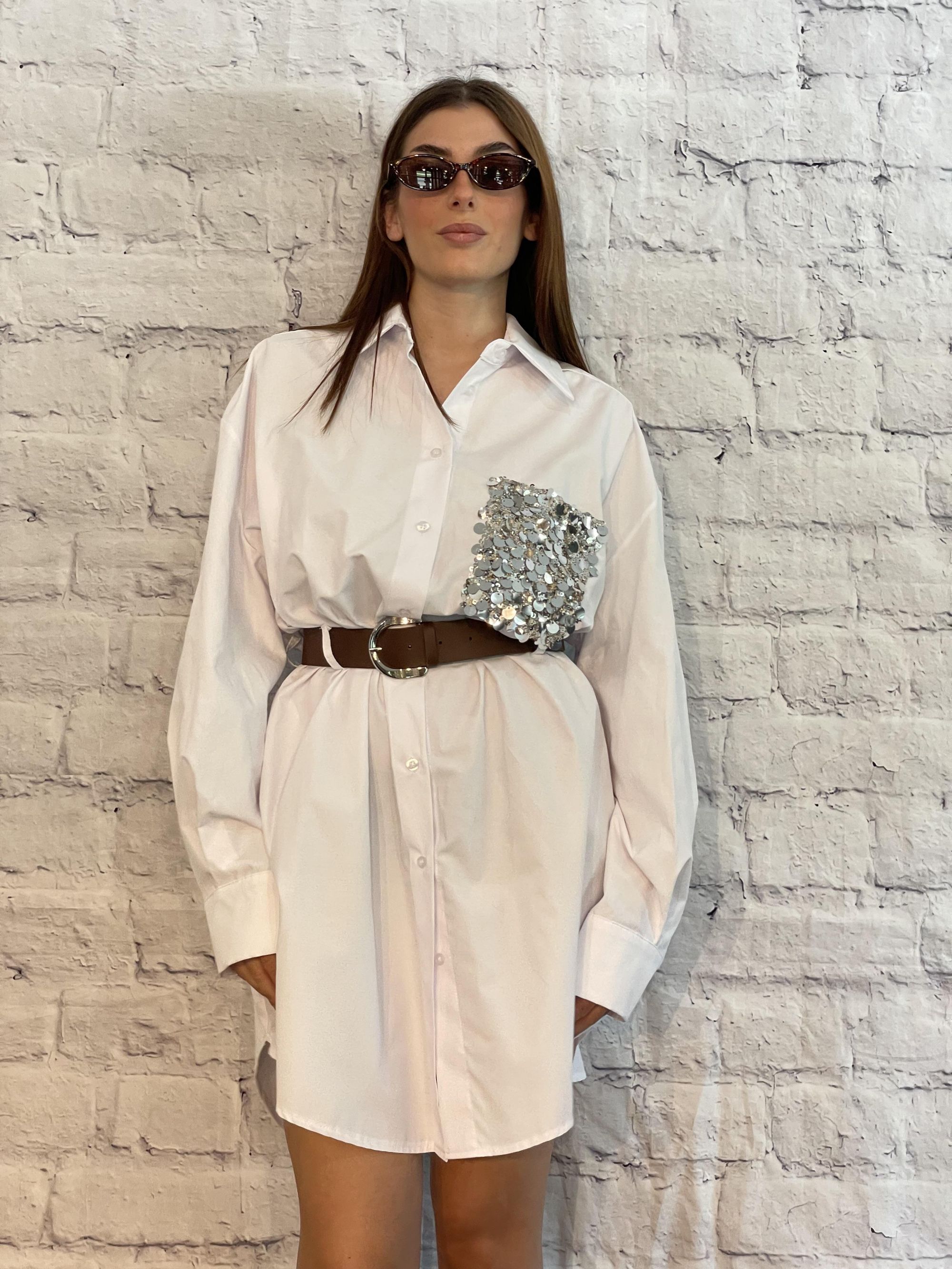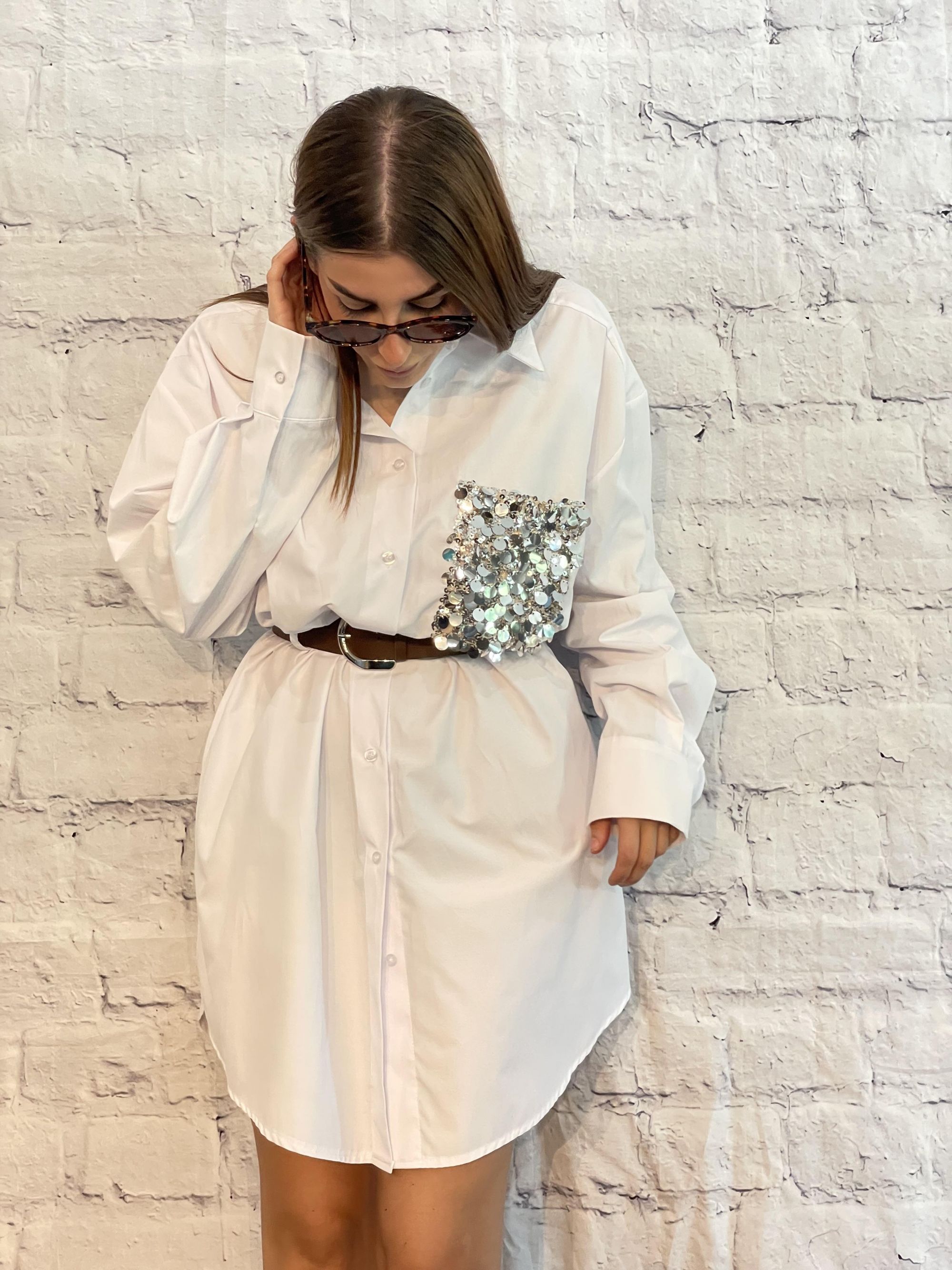 TENSIONE IN - ABITO/CAMICIA BIANCO CON TASCA IN PAILLETTES ART. PE260160