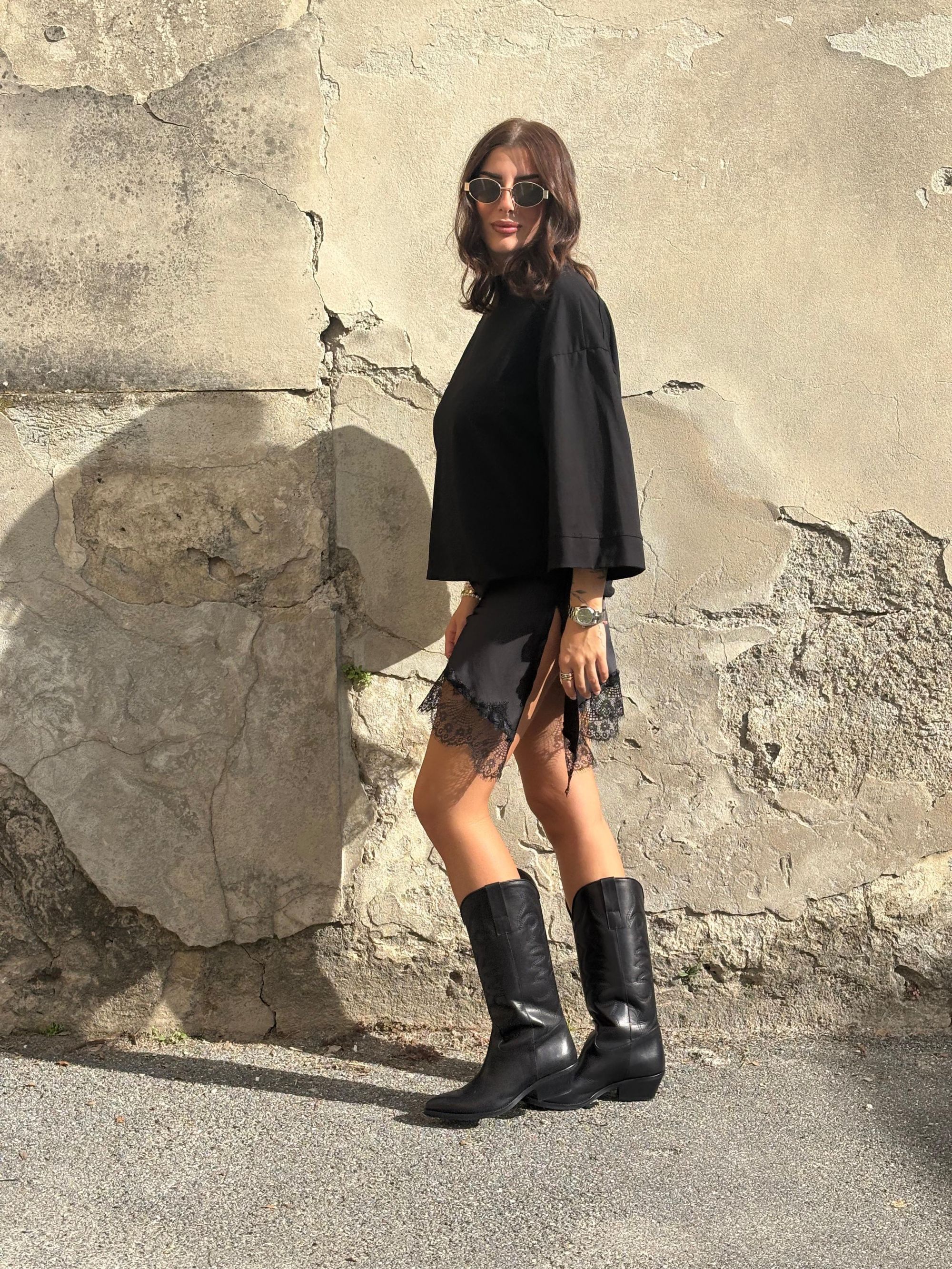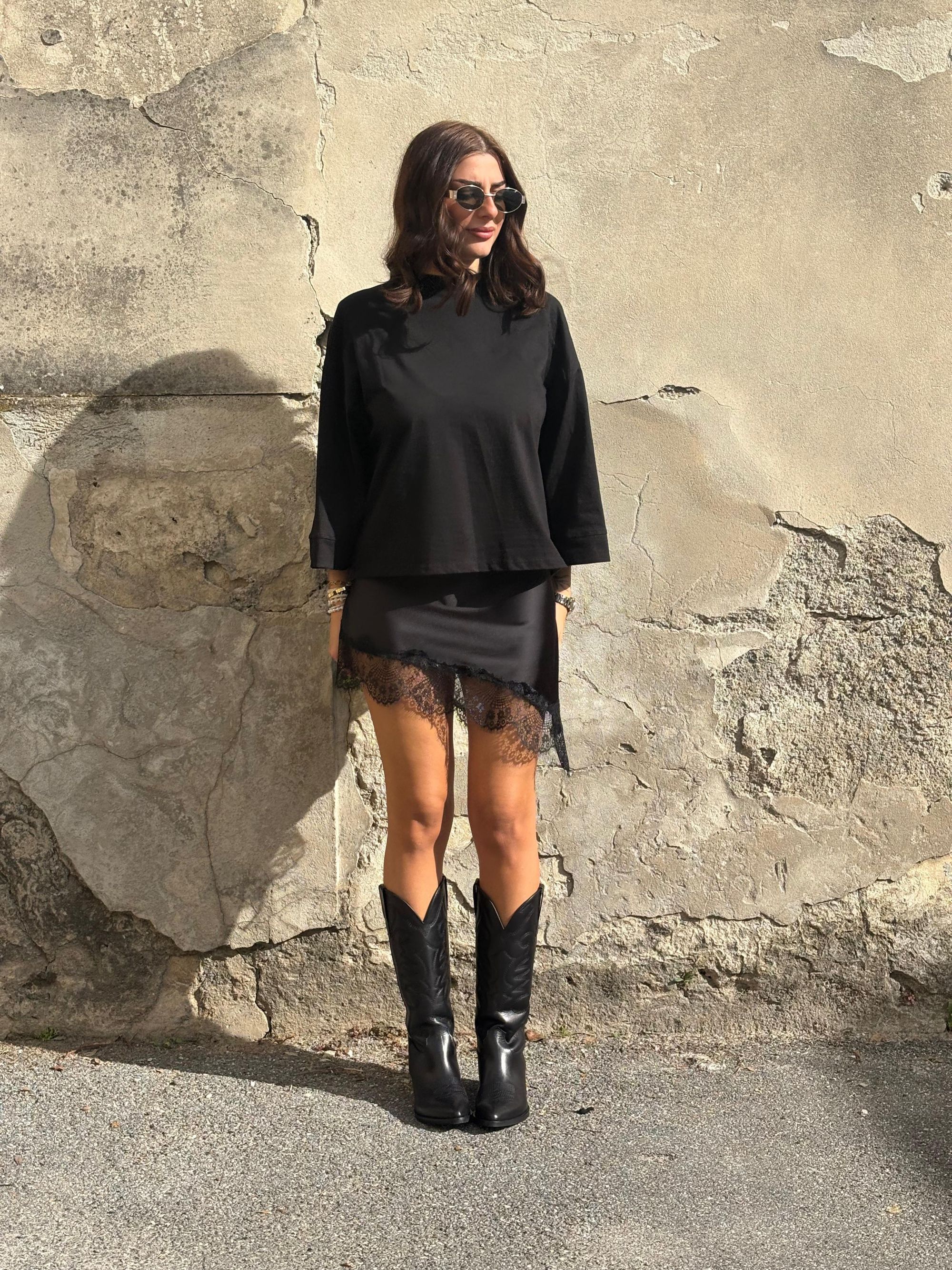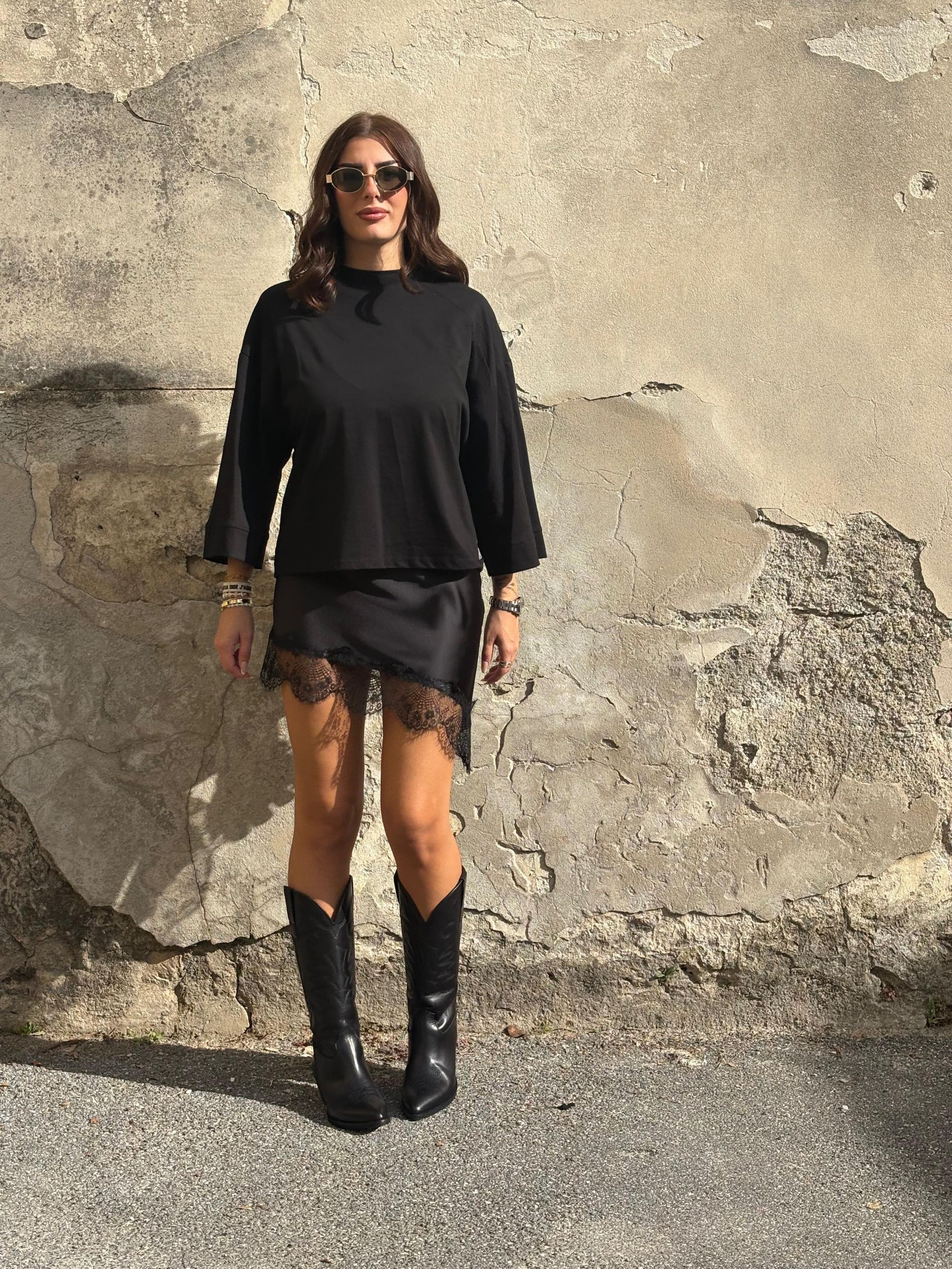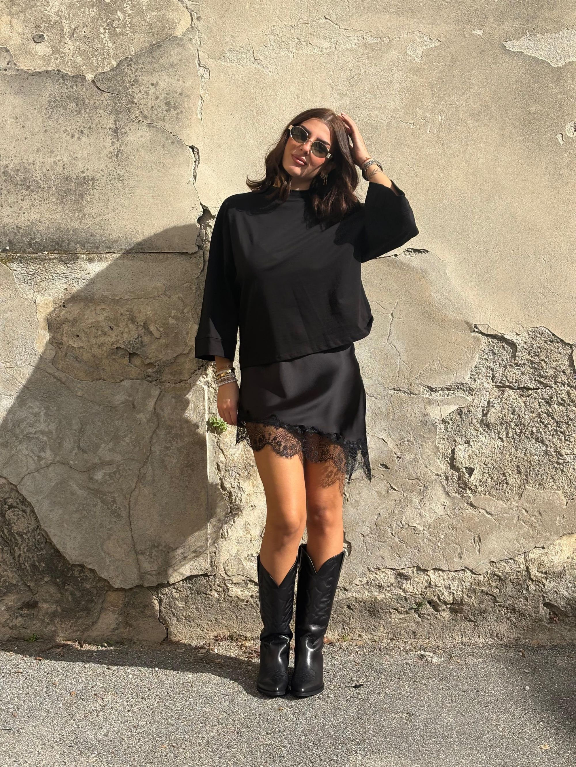 TENSIONE IN - MINI ABITO NERO BORDATO IN PIZZO ART. FW250062