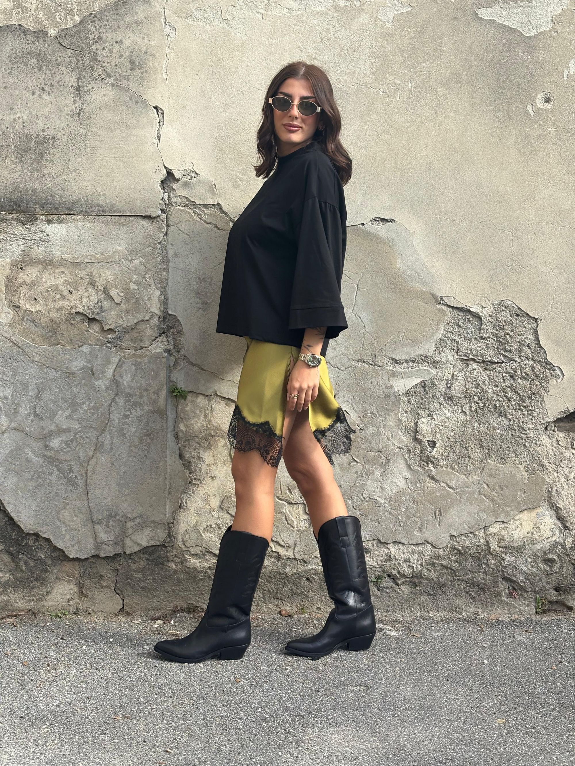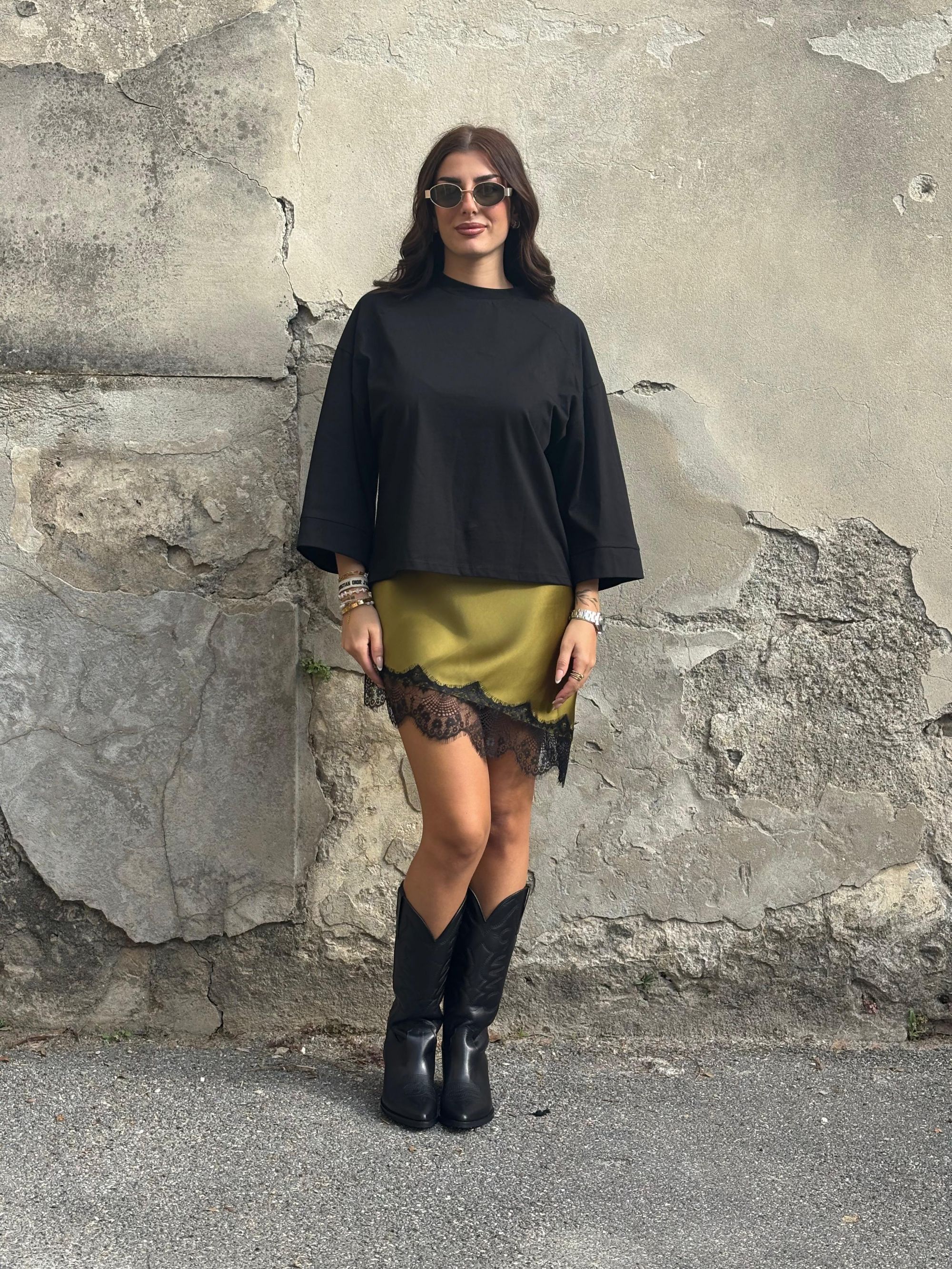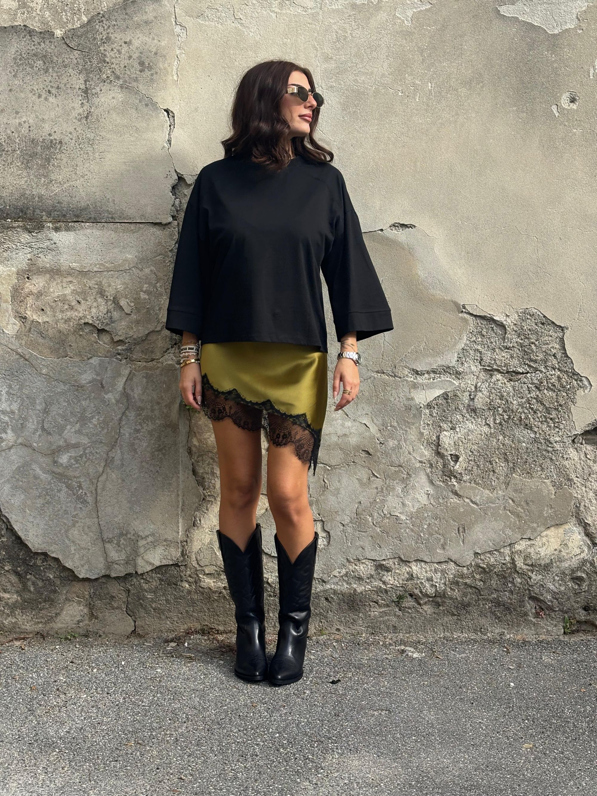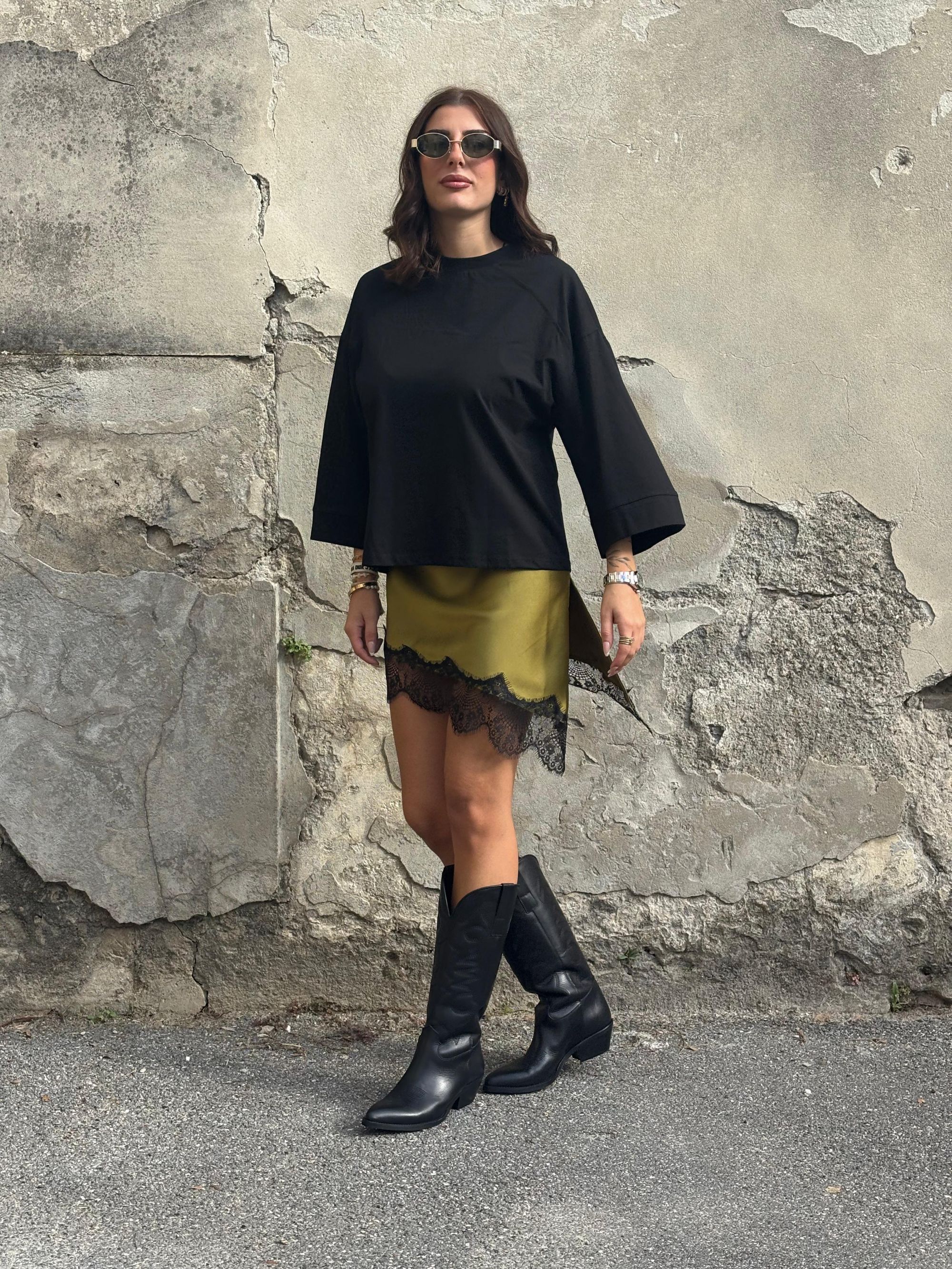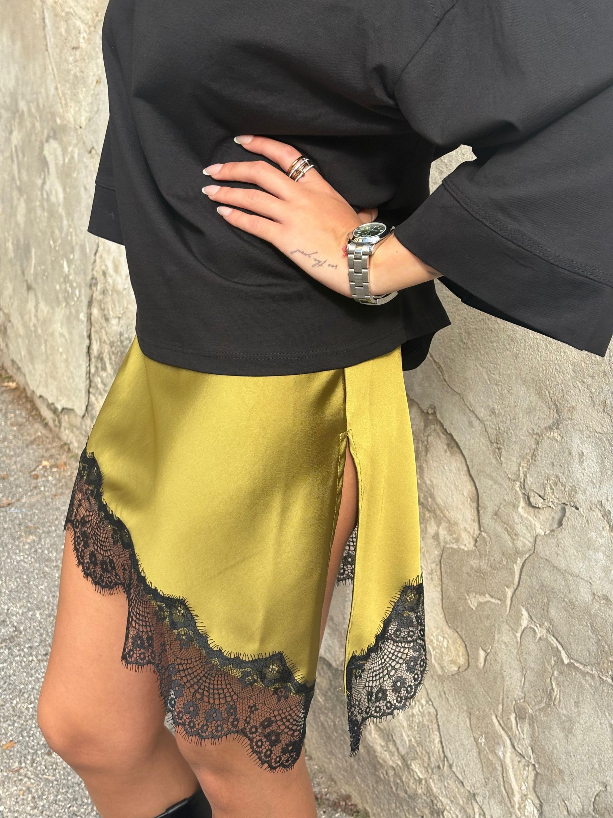 TENSIONE IN - MINI ABITO OLIO BORDATO IN PIZZO ART. FW250062