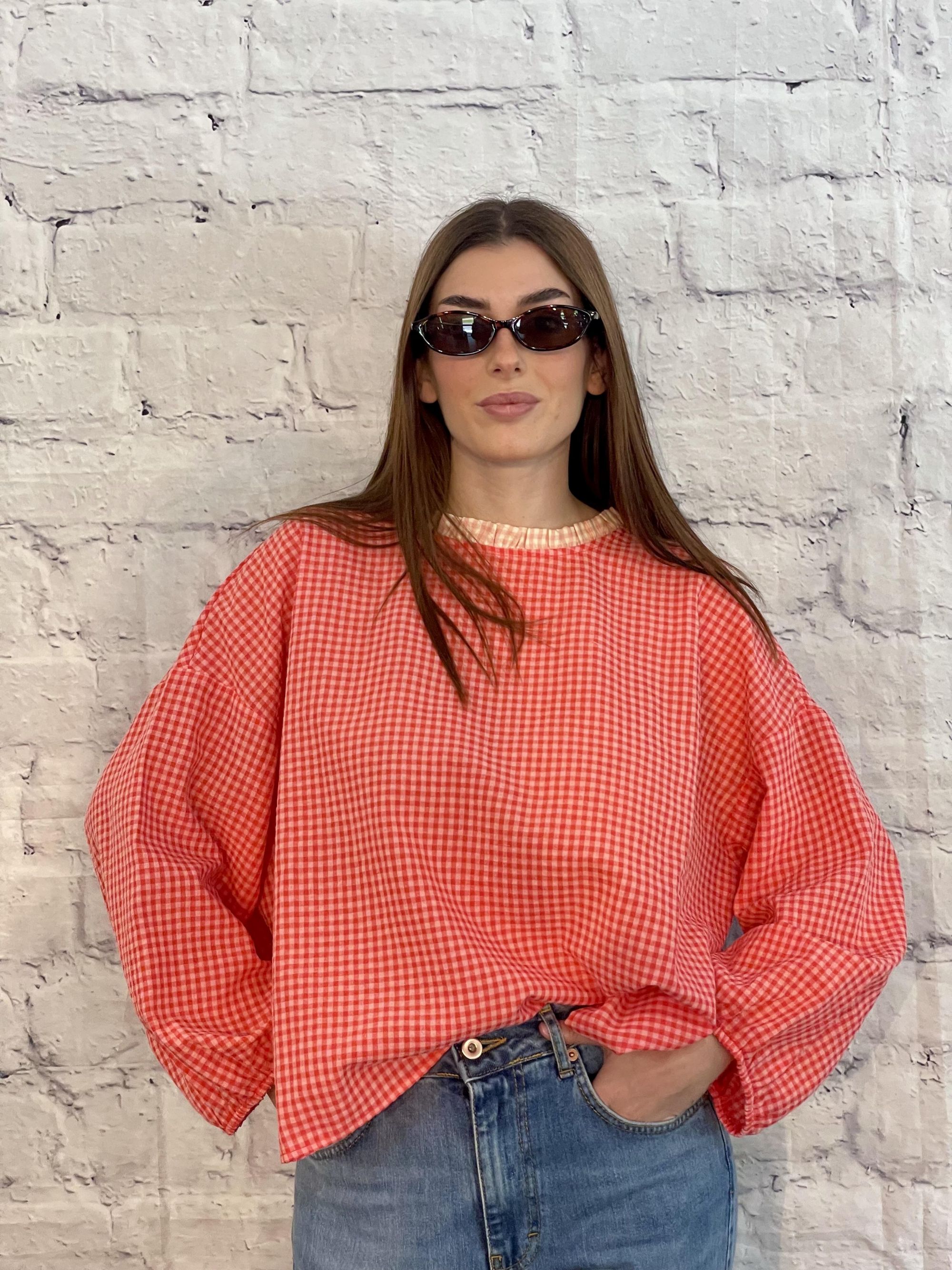 MDIMATILDE - BLUSA A QUADRETTI ARANCIO ART. W5937