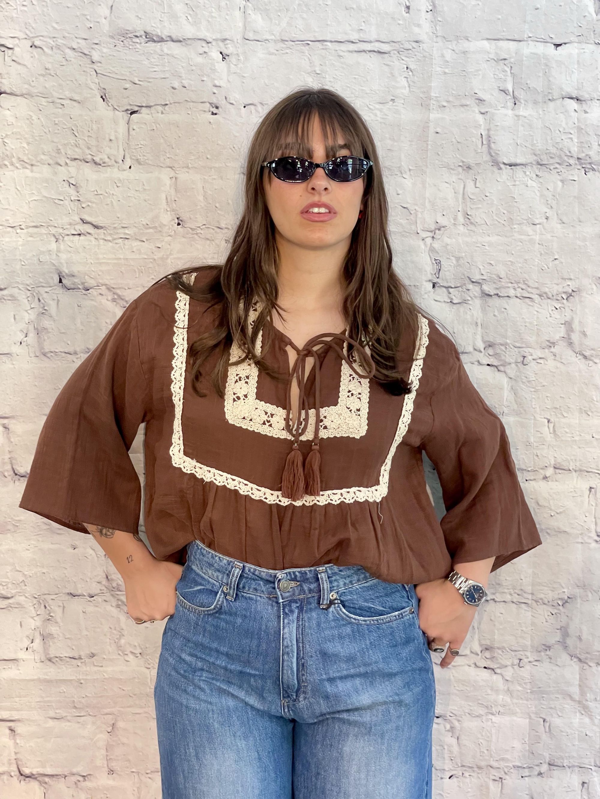 MDIMATILDE - BLUSA MORO BORDATA A UNCINETTO ART. WM2663