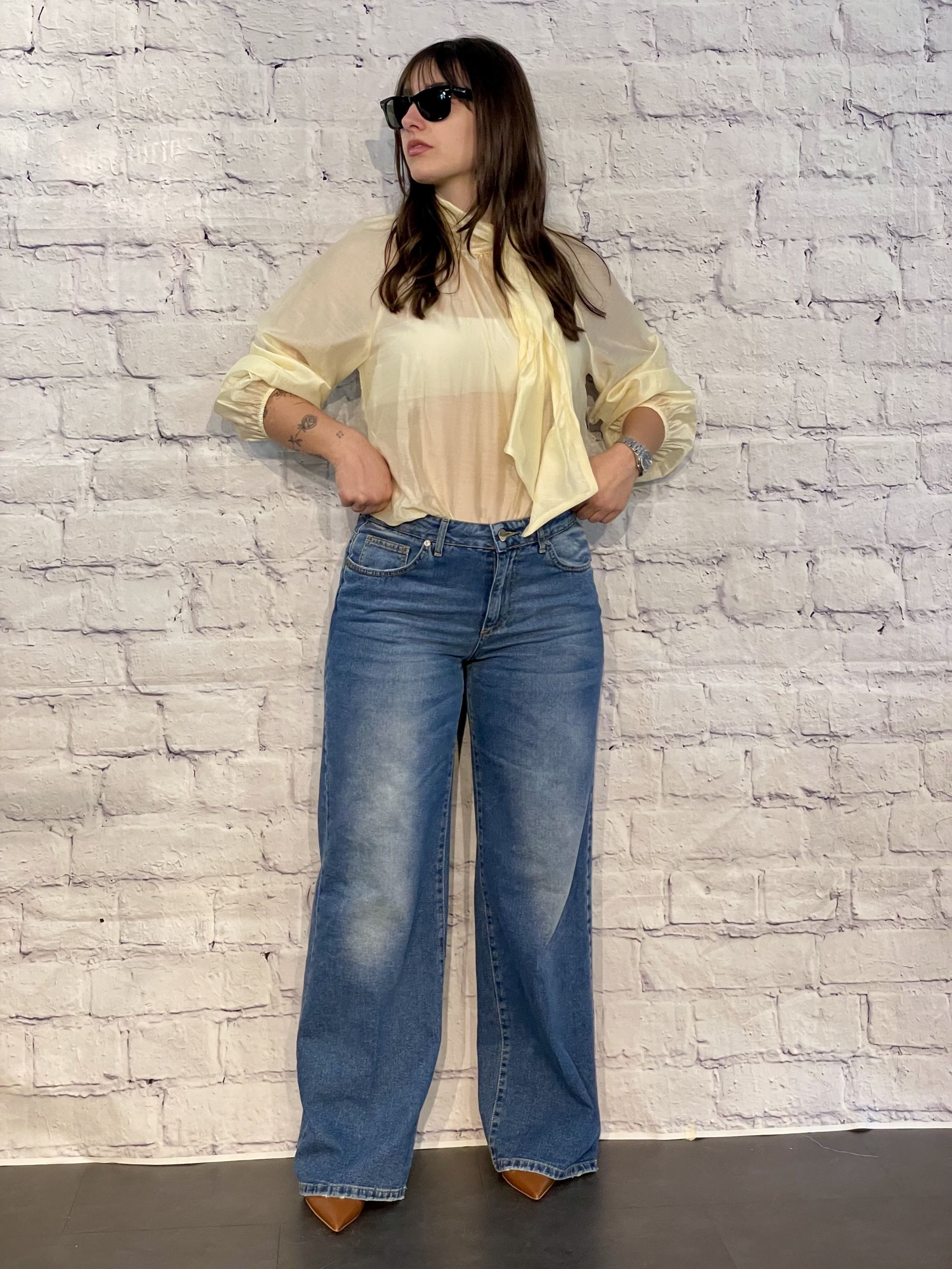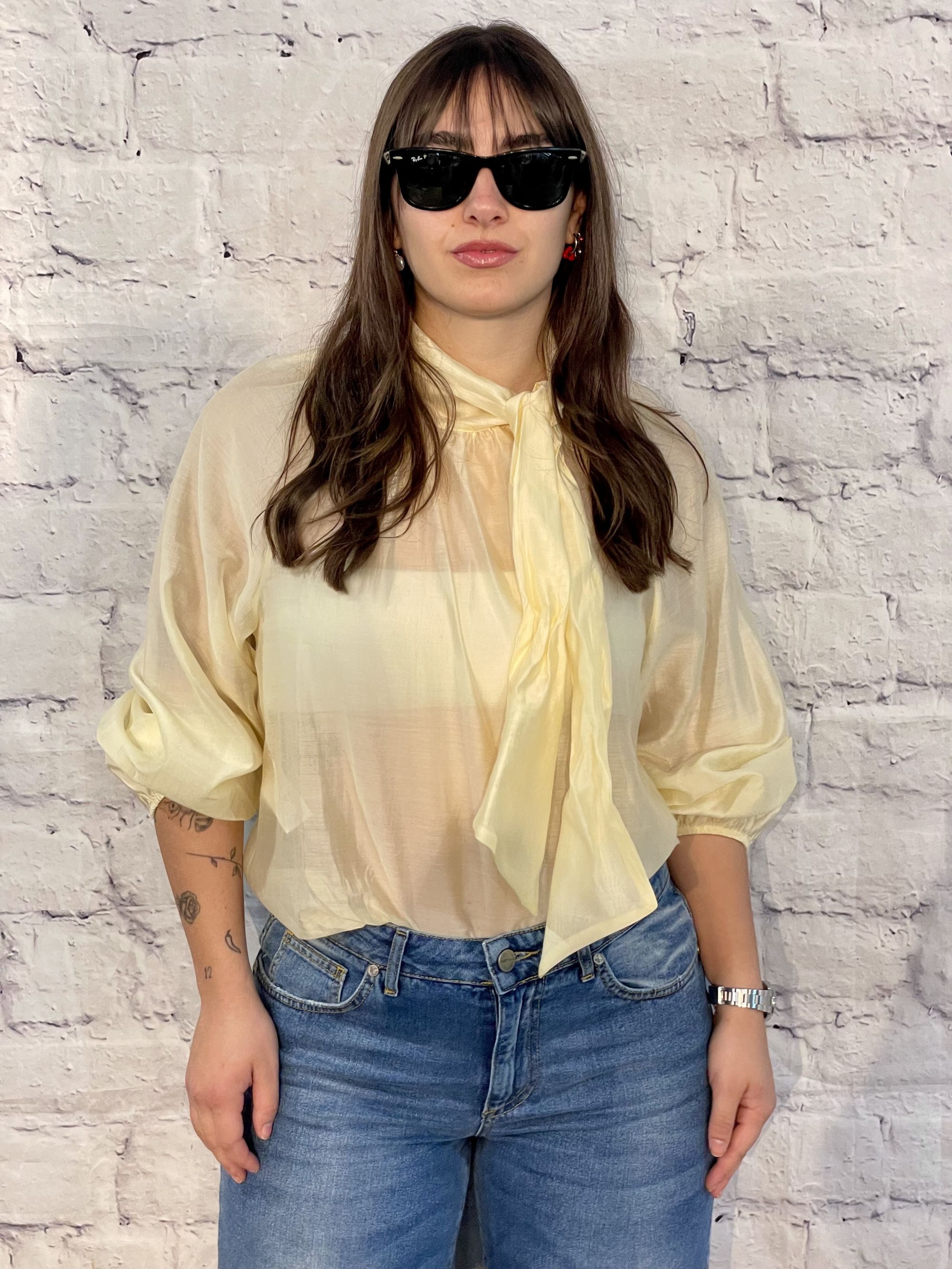 SUSY MIX - BLUSA IN SATIN GIALLO CON FIOCCO ART. K2365Z126
