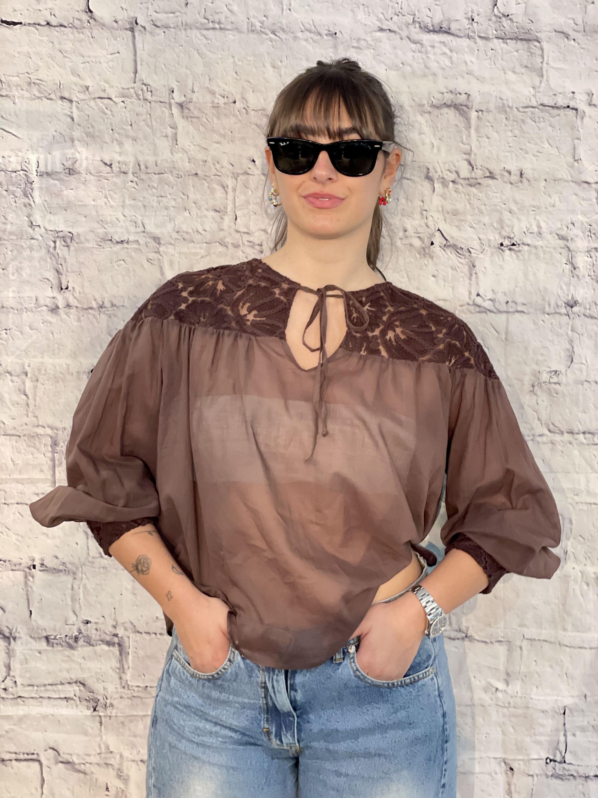 SUSY MIX - BLUSA MORO CON TULLE RICAMATO ART. 33119