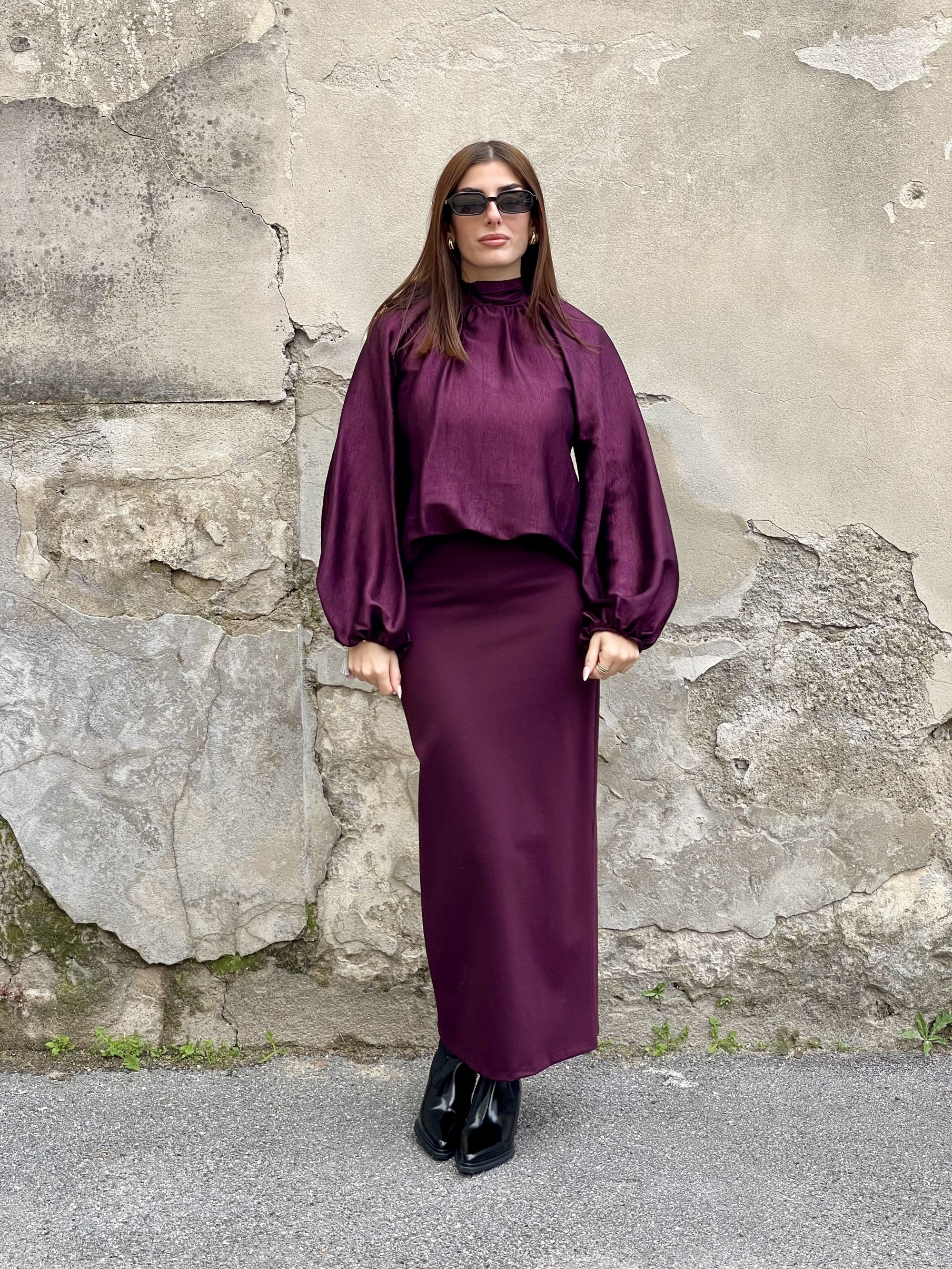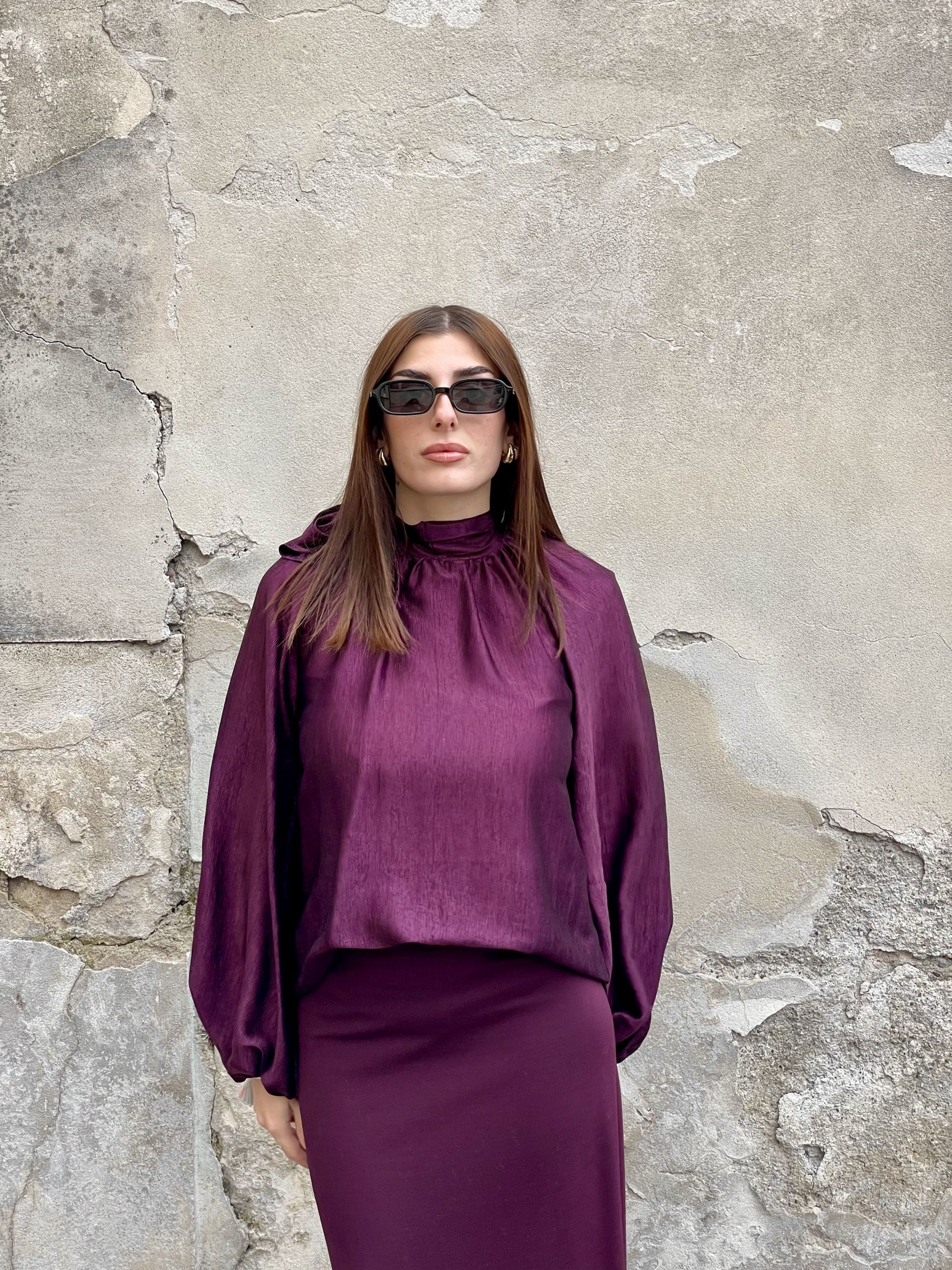 TENSIONE IN - BLUSA GOFFRATA BORDEAUX CON FIOCCO ART. 38201