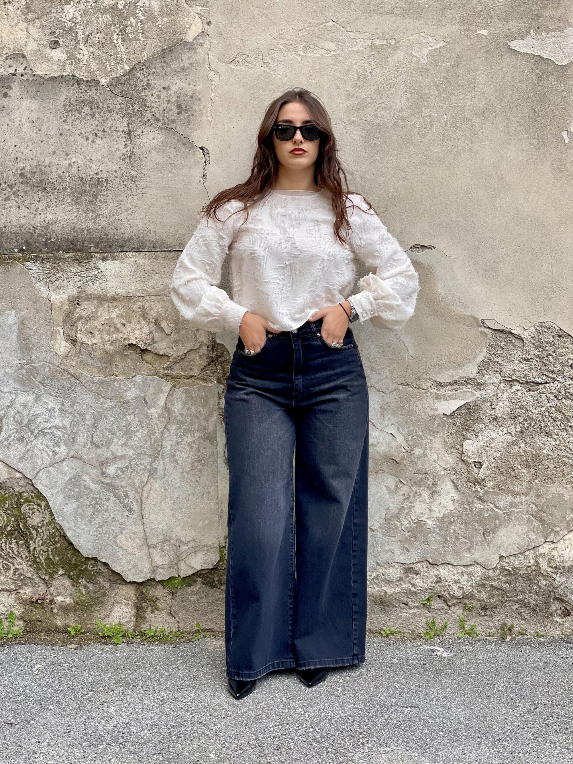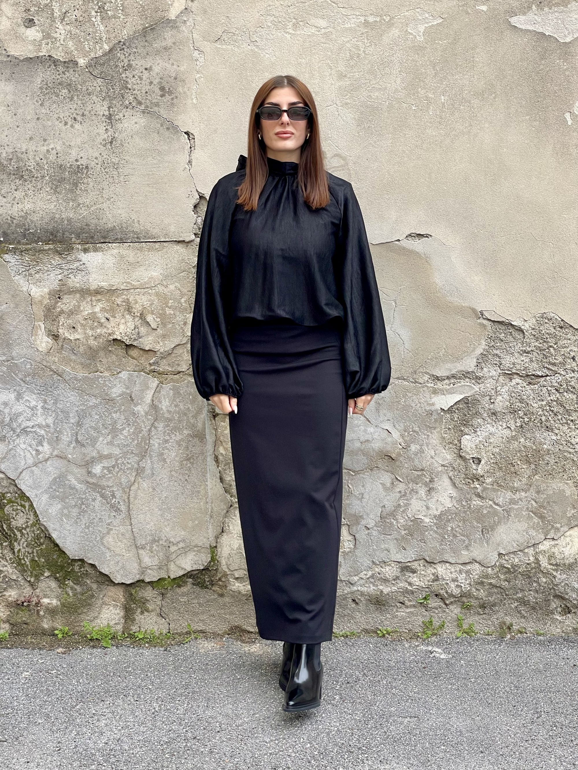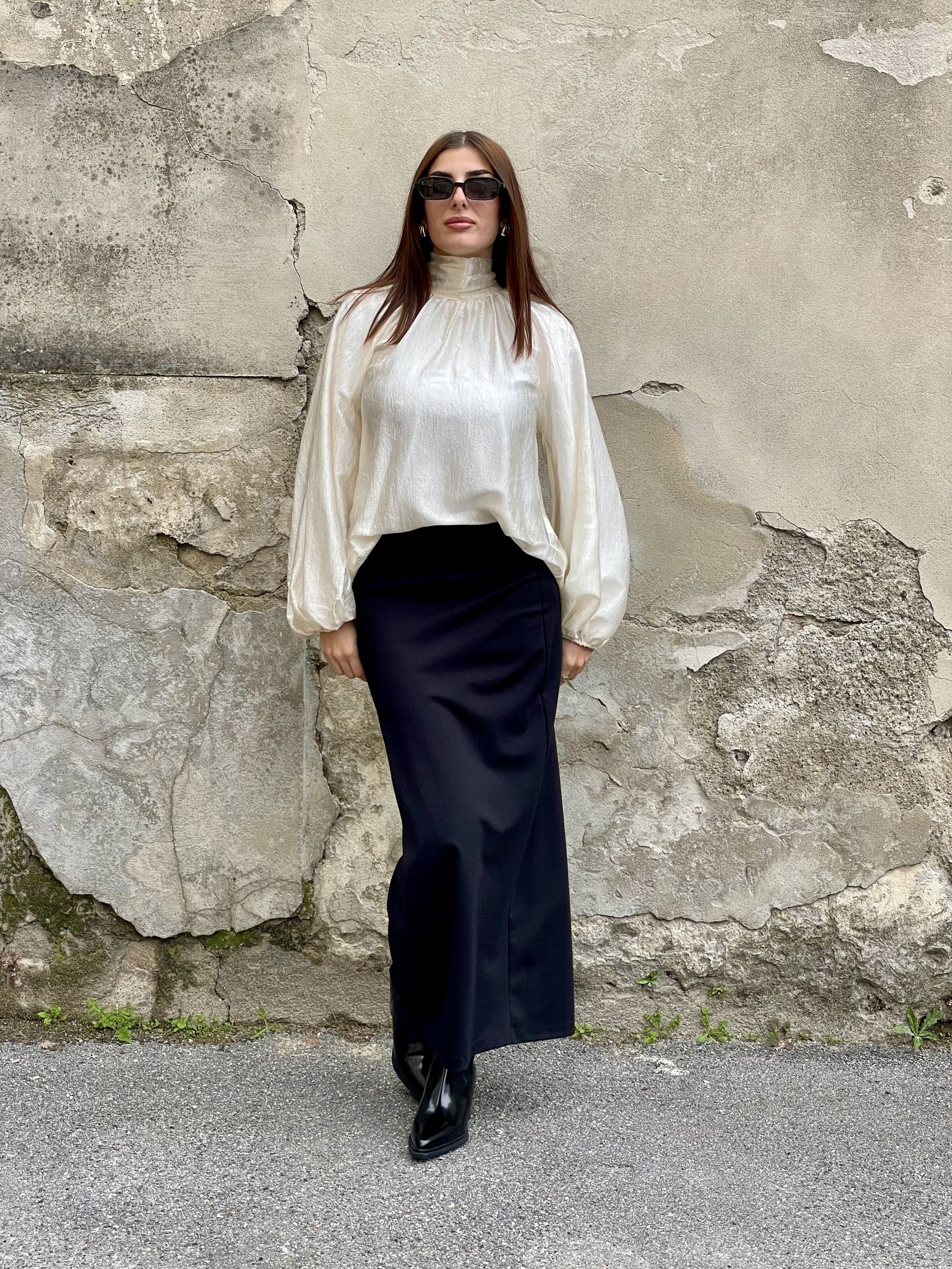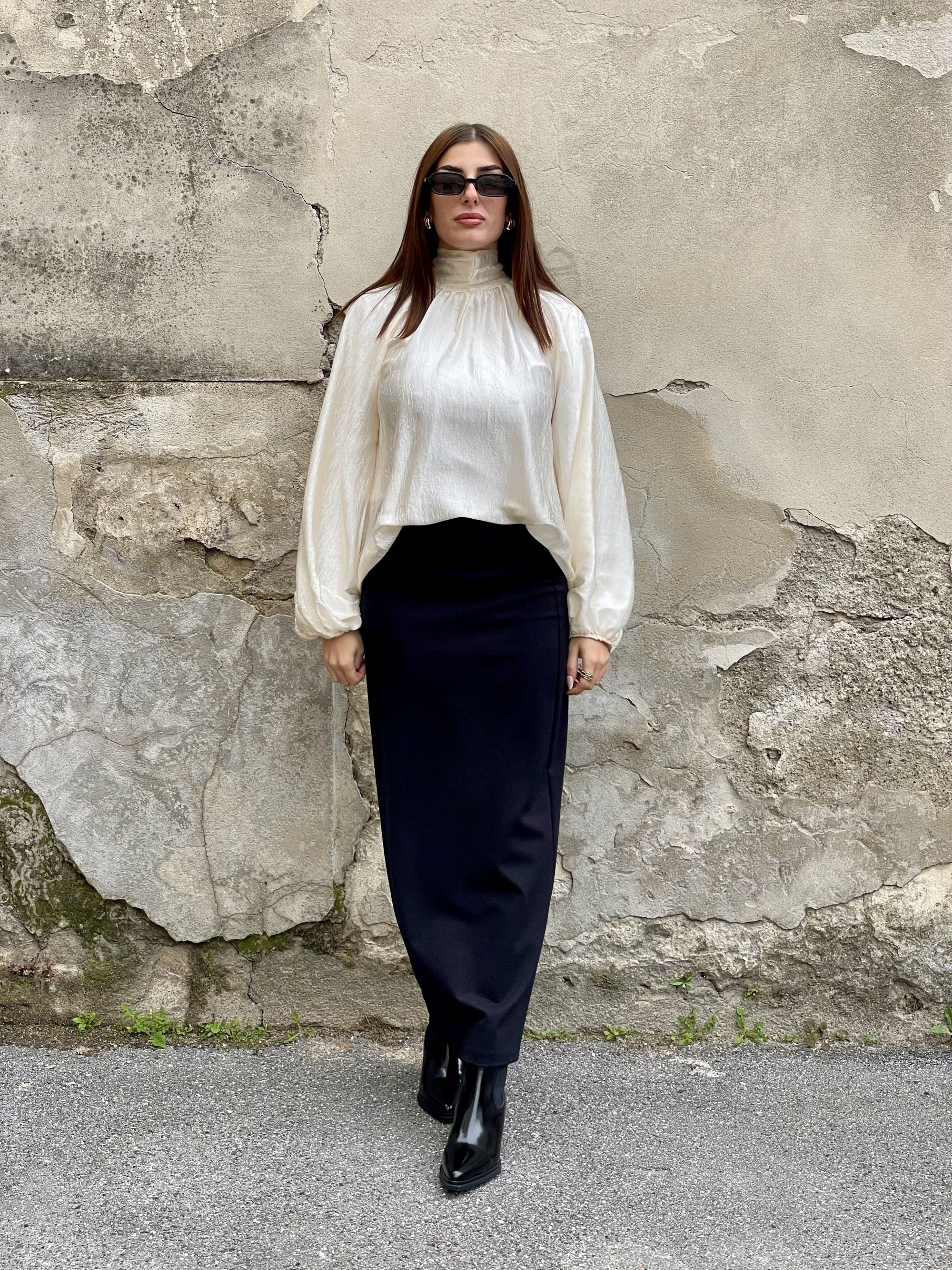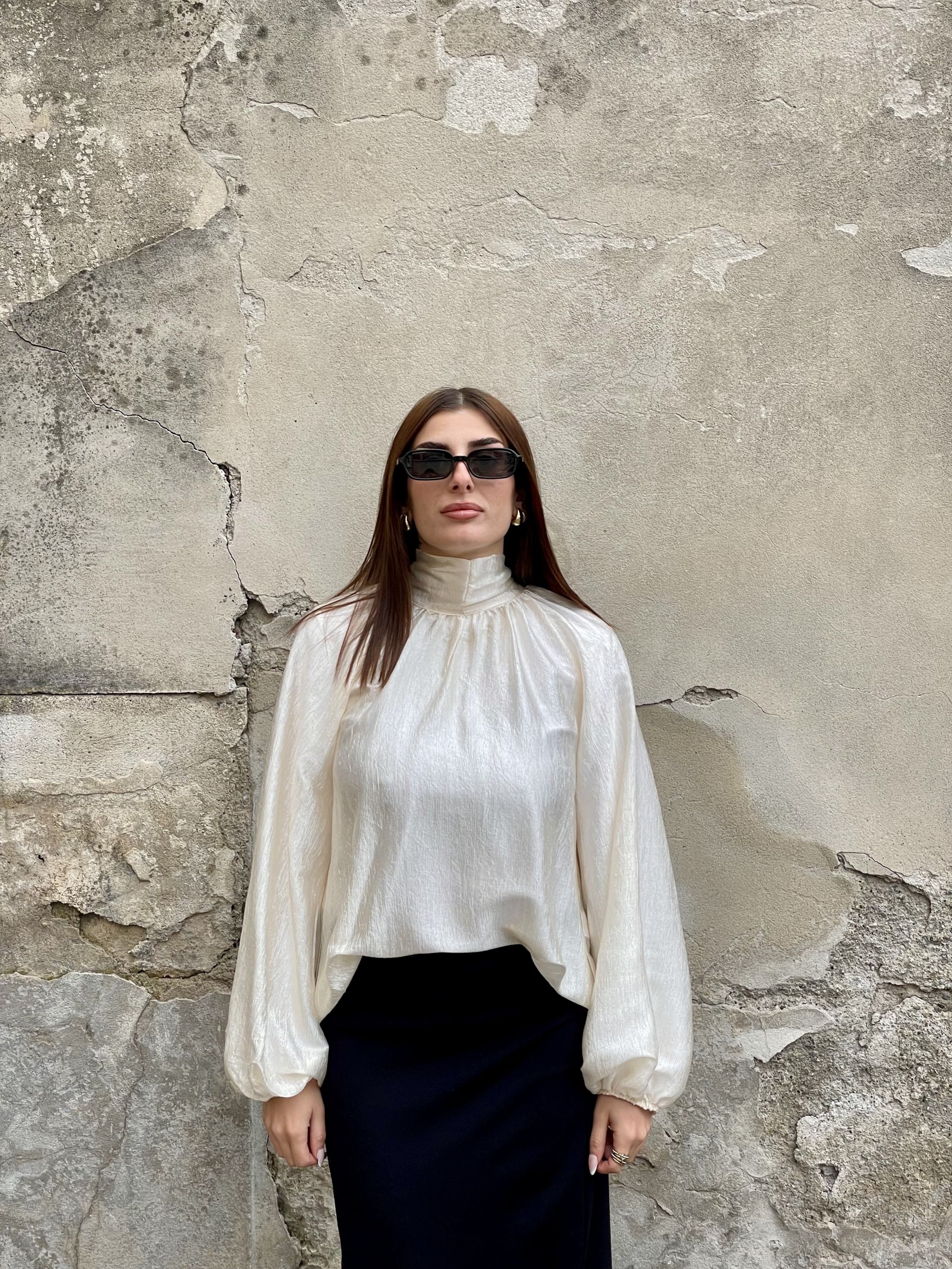 TENSIONE IN - BLUSA GOFFRATA COLOR LATTE CON FIOCCO ART. 38201