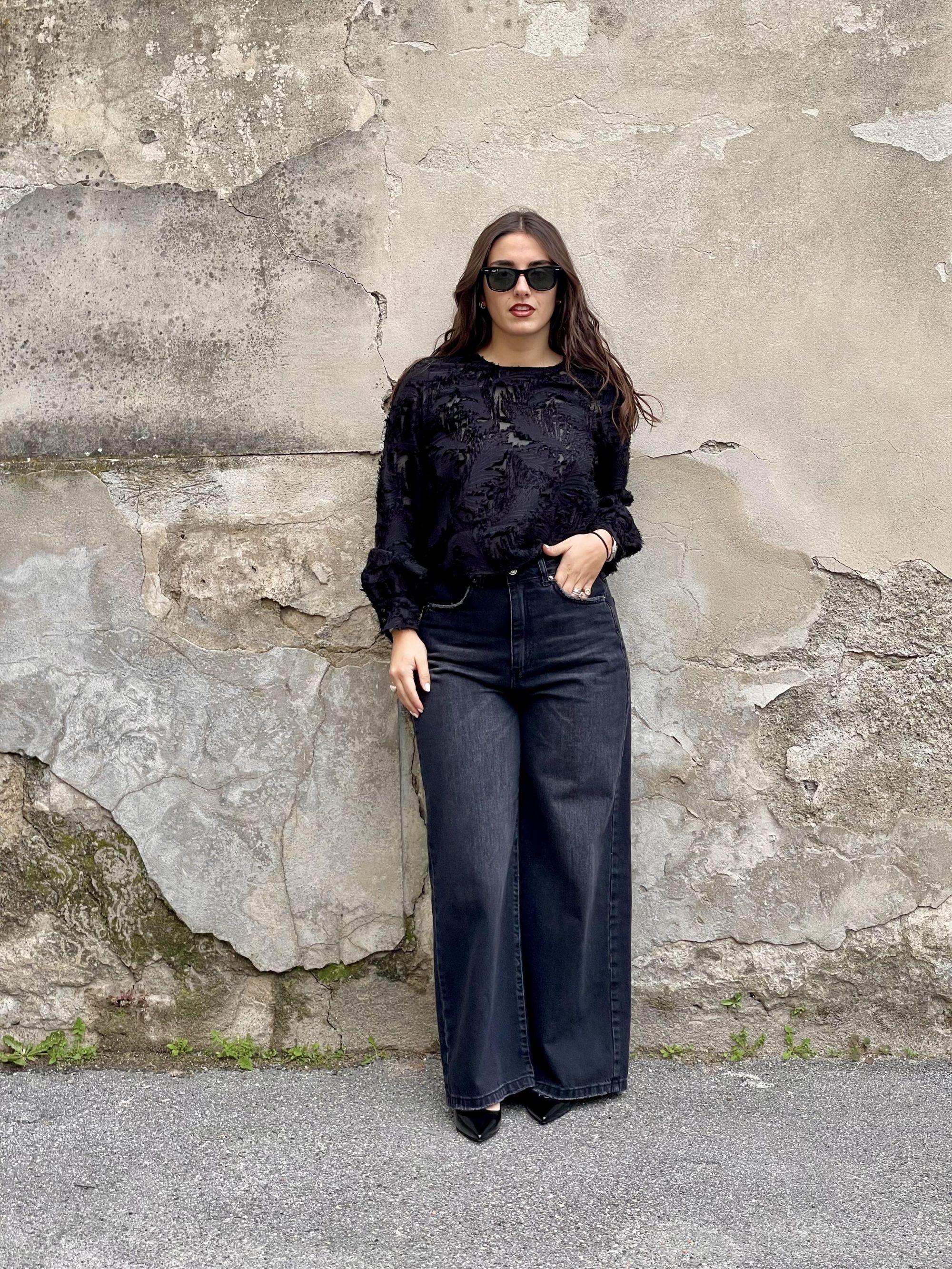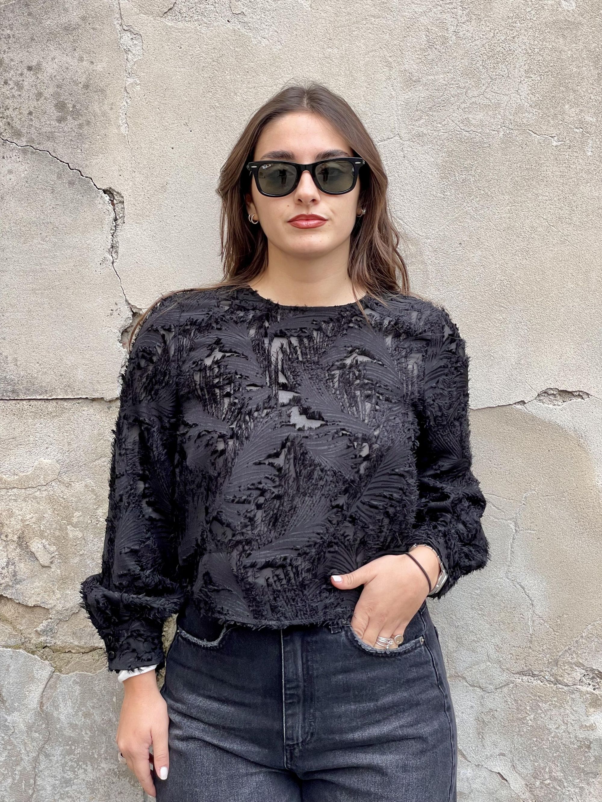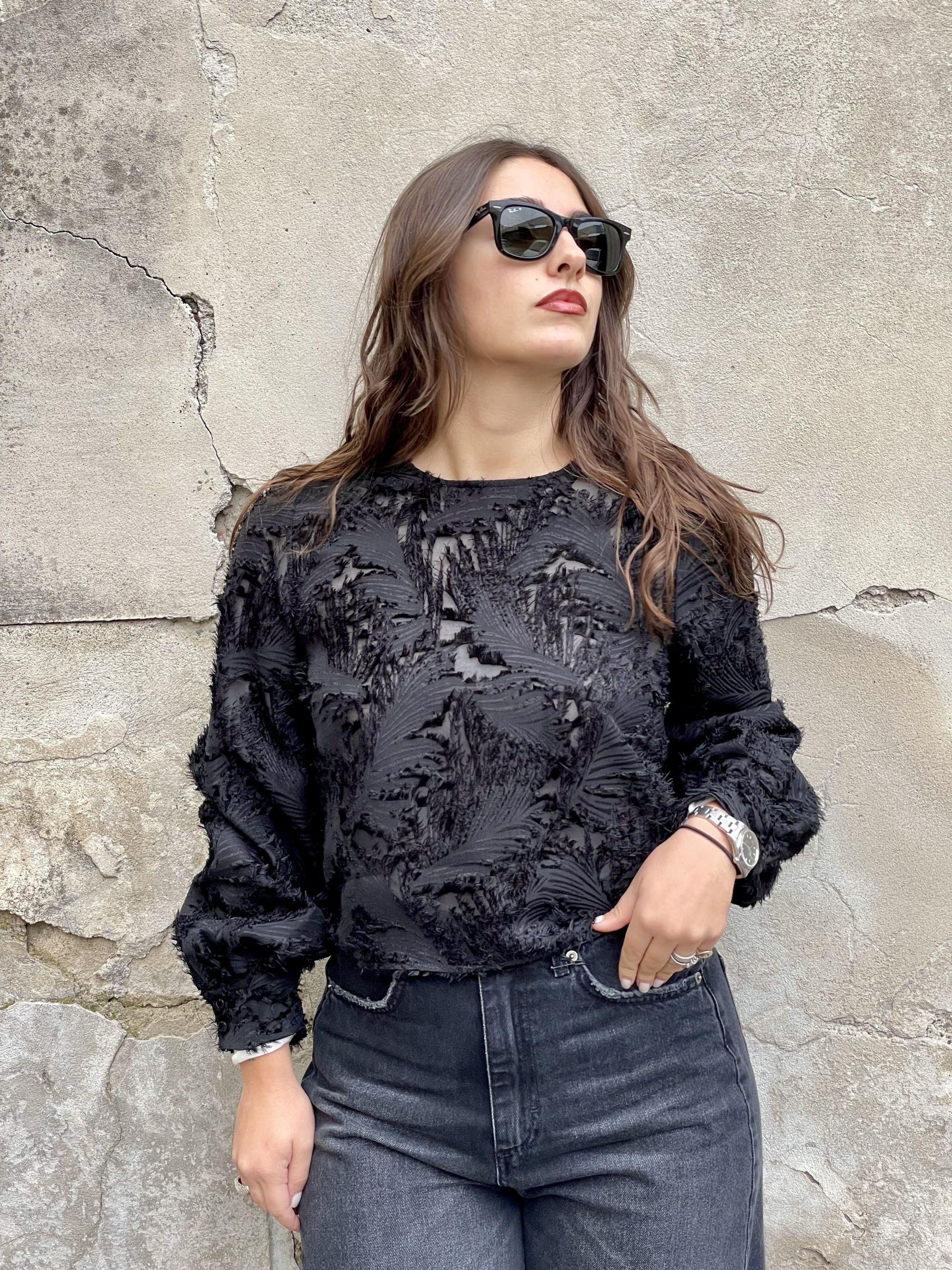TENSIONE IN - BLUSA NERO IN CREPE RICAMATO ART. W25C874
