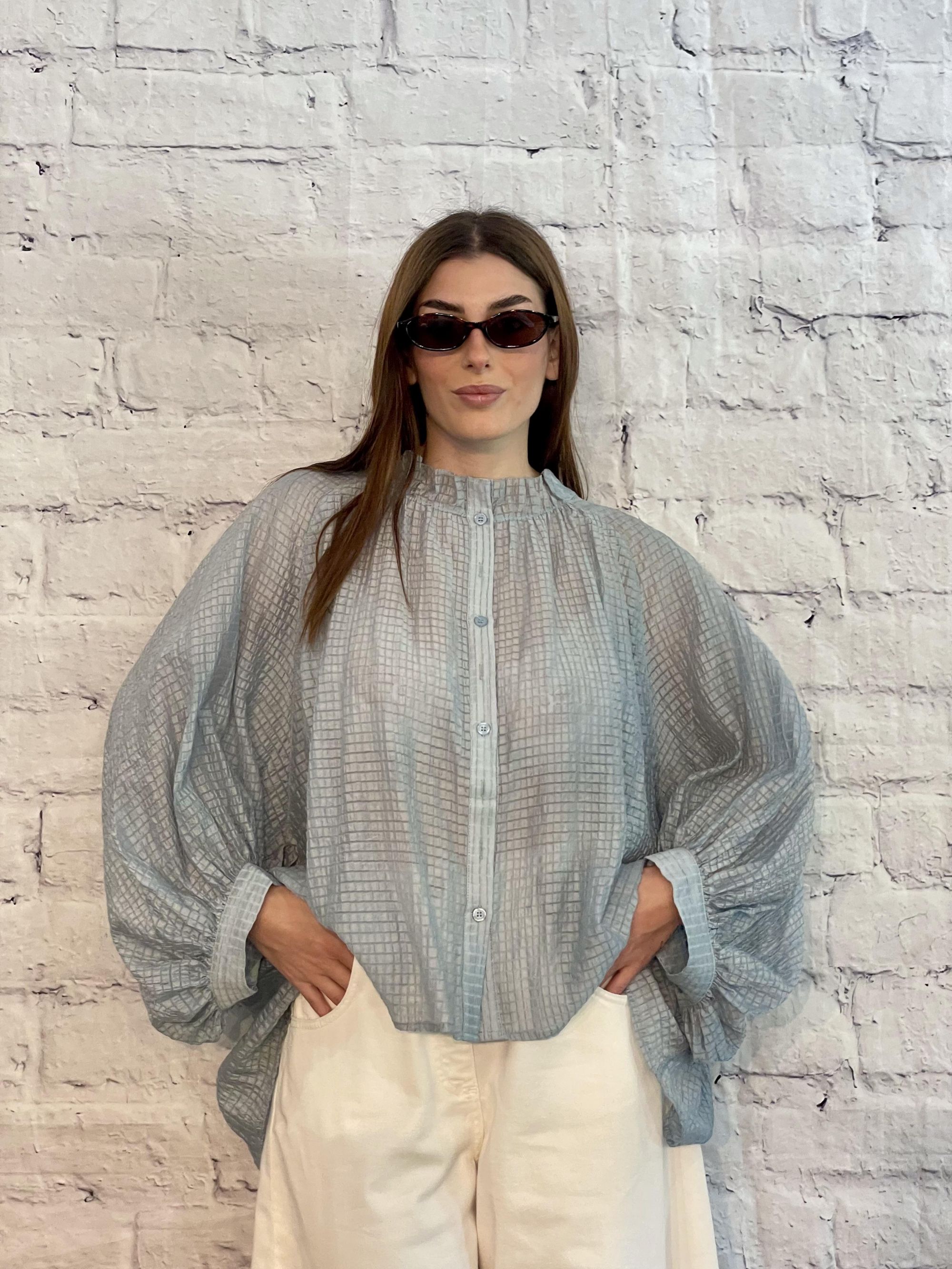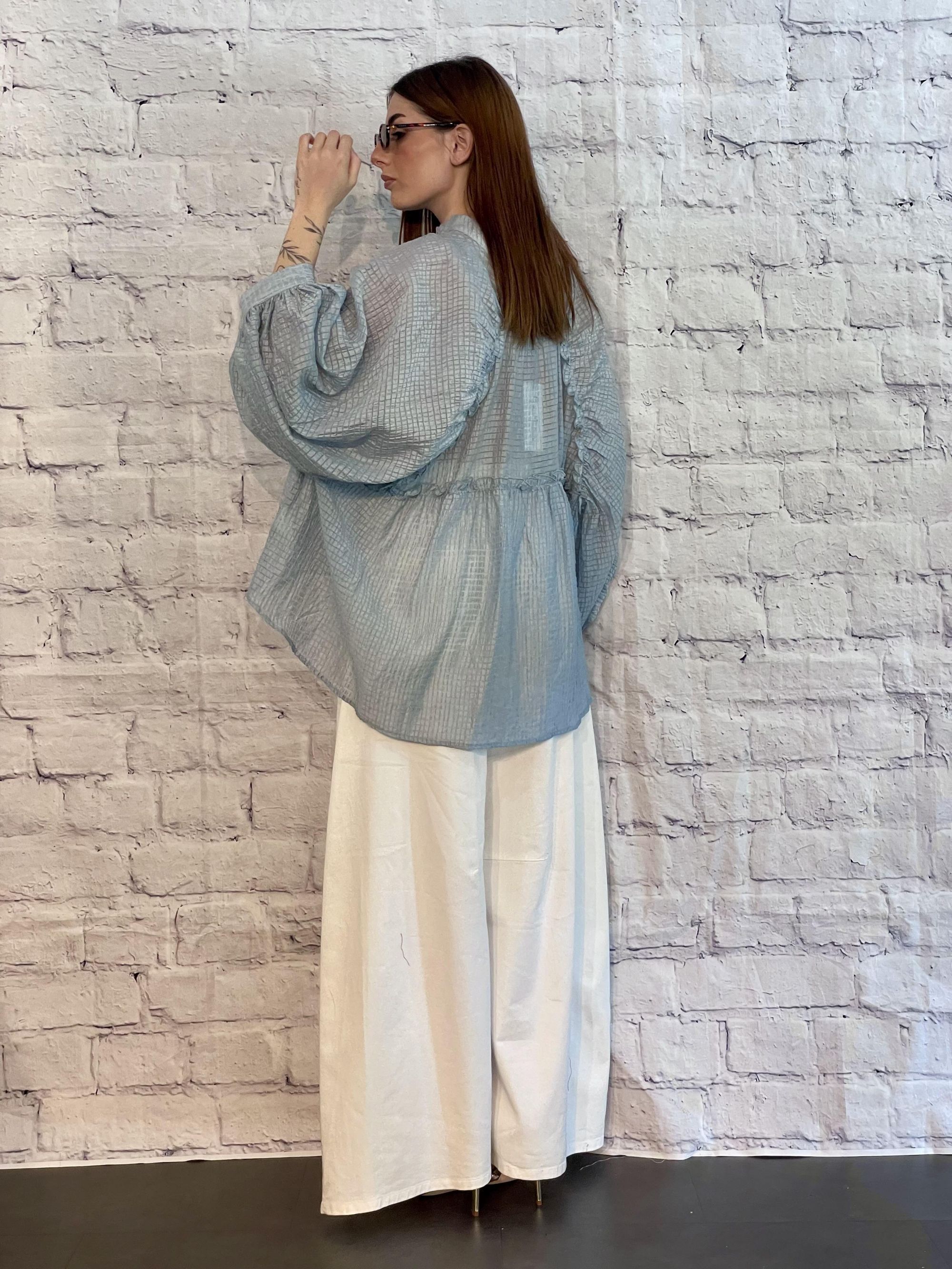 MDIMATILDE - CAMICIA OVER CELESTE GOFFRATA ART. W5948
