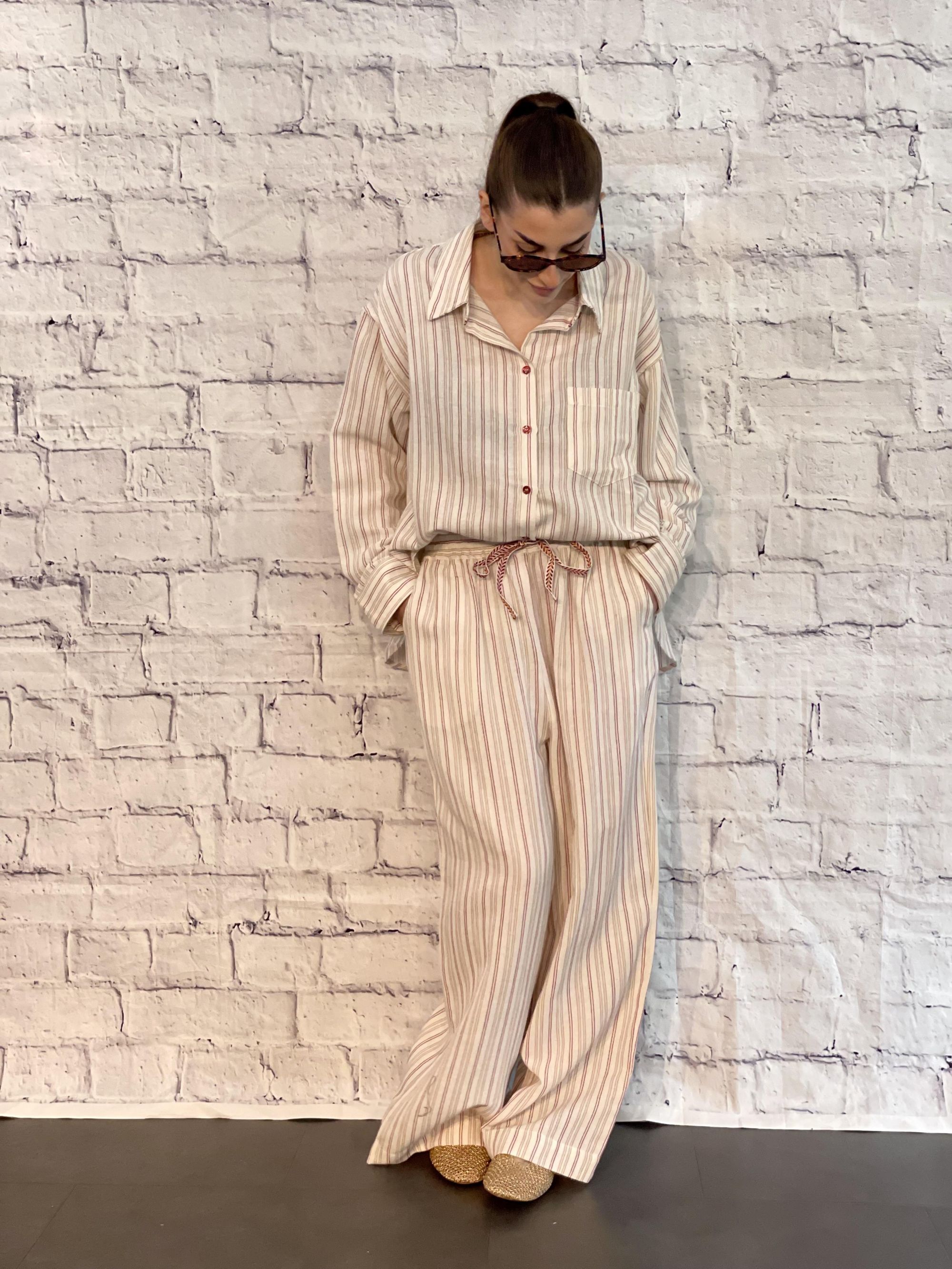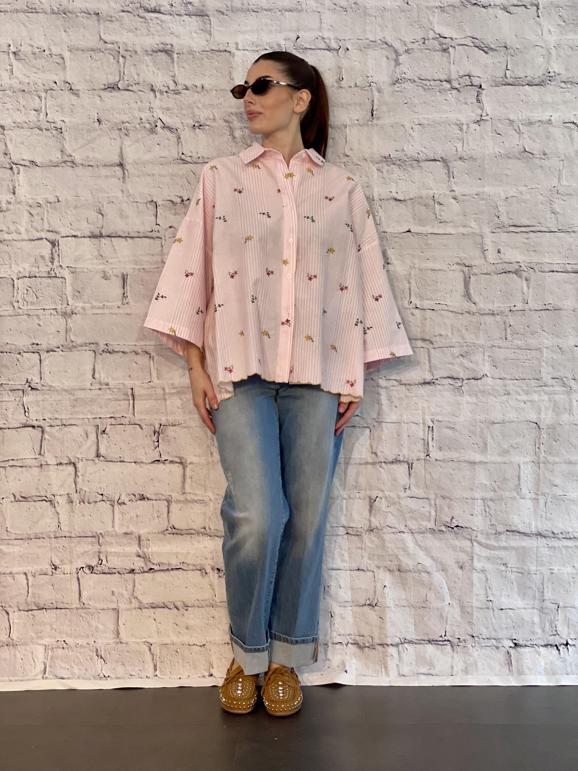 MDIMATILDE - CAMICIA OVER A RIGHE ROSA CON RICAMI SRT. WM2657