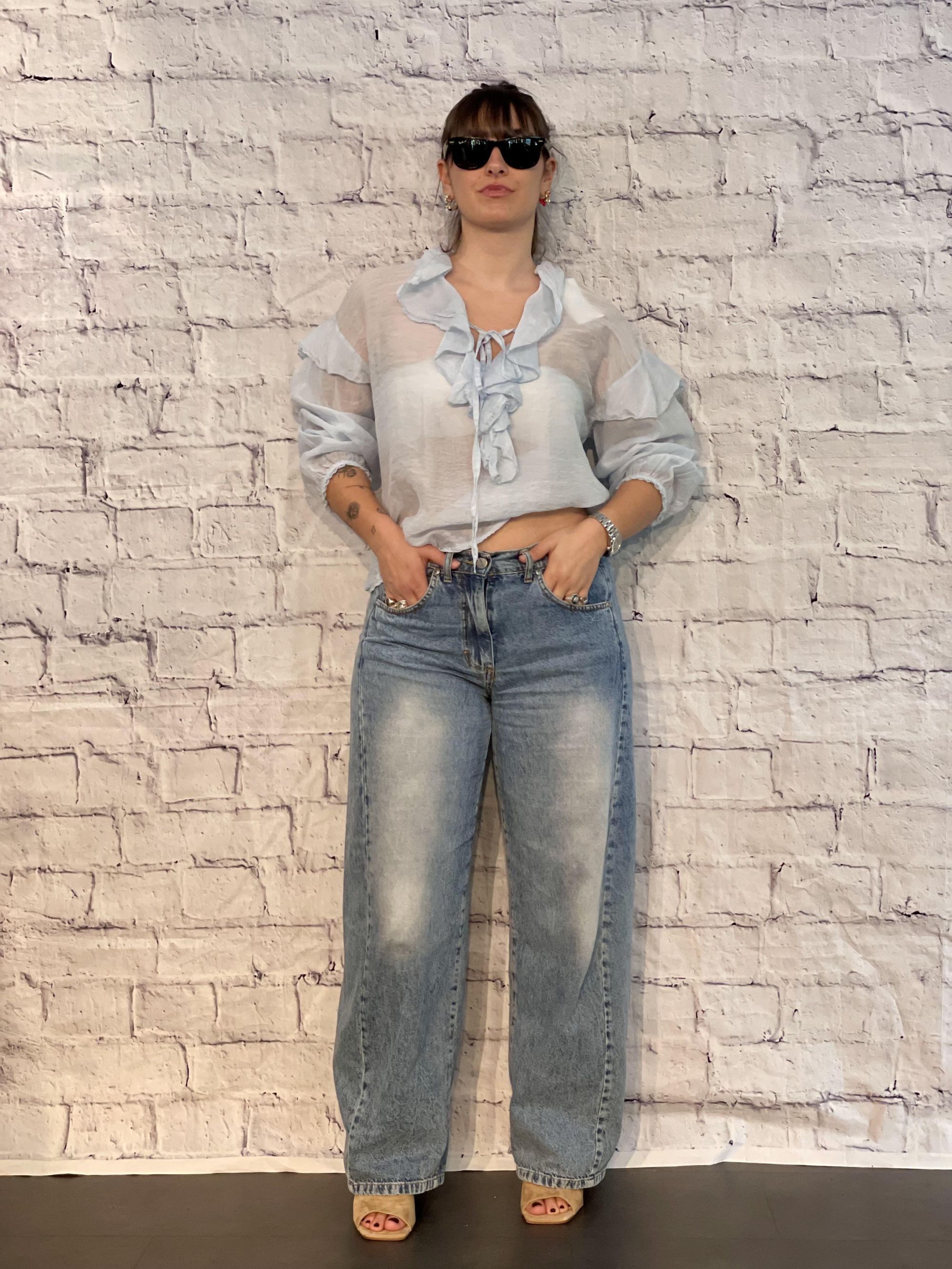 SUSY MIX - CAMICIA IN DENIM BLU CON RUCHES ART. YX533