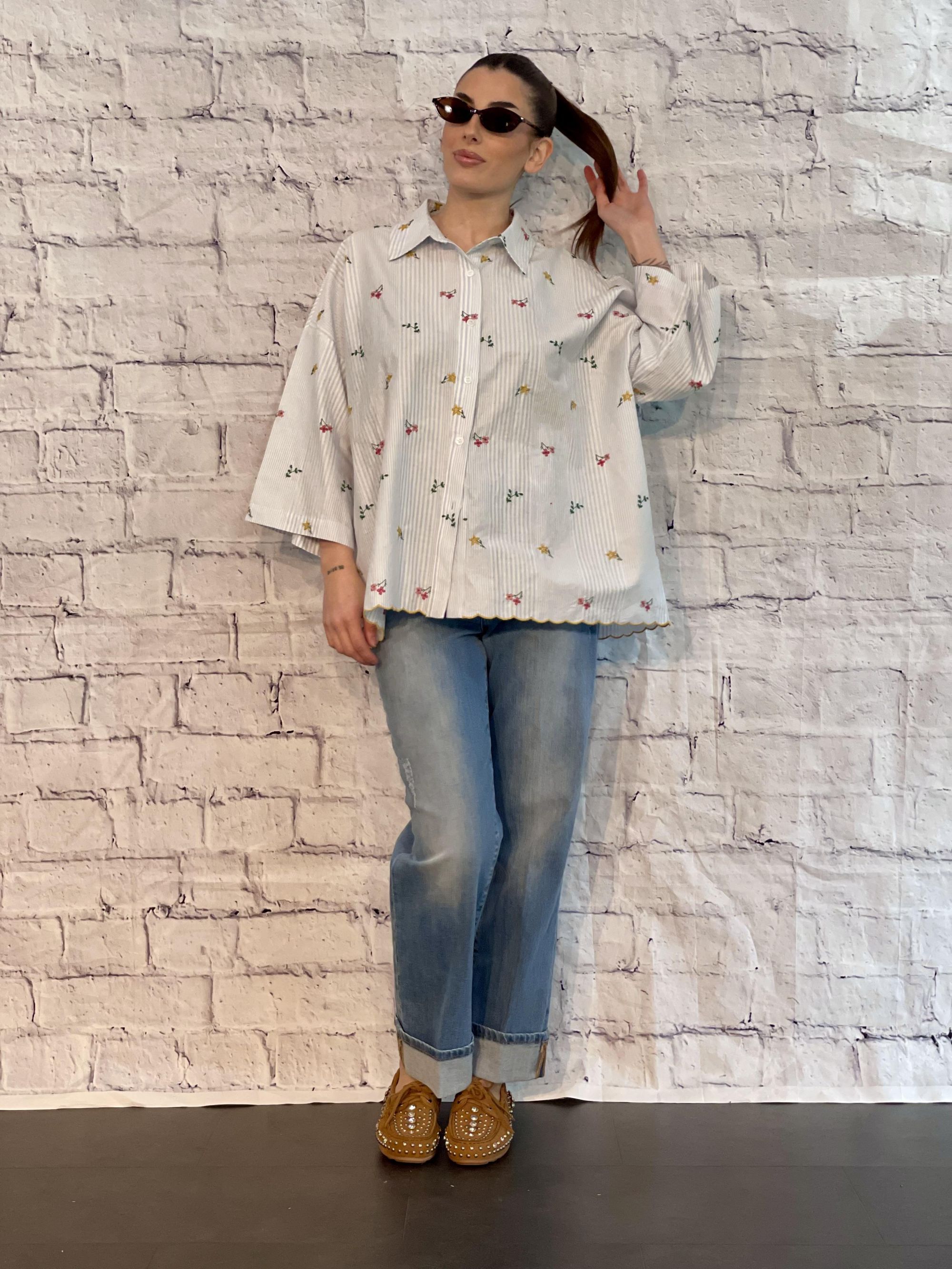 MDIMATILDE - CAMICIA OVER A RIGHE CELESTI CON RICAMI SRT. WM2657