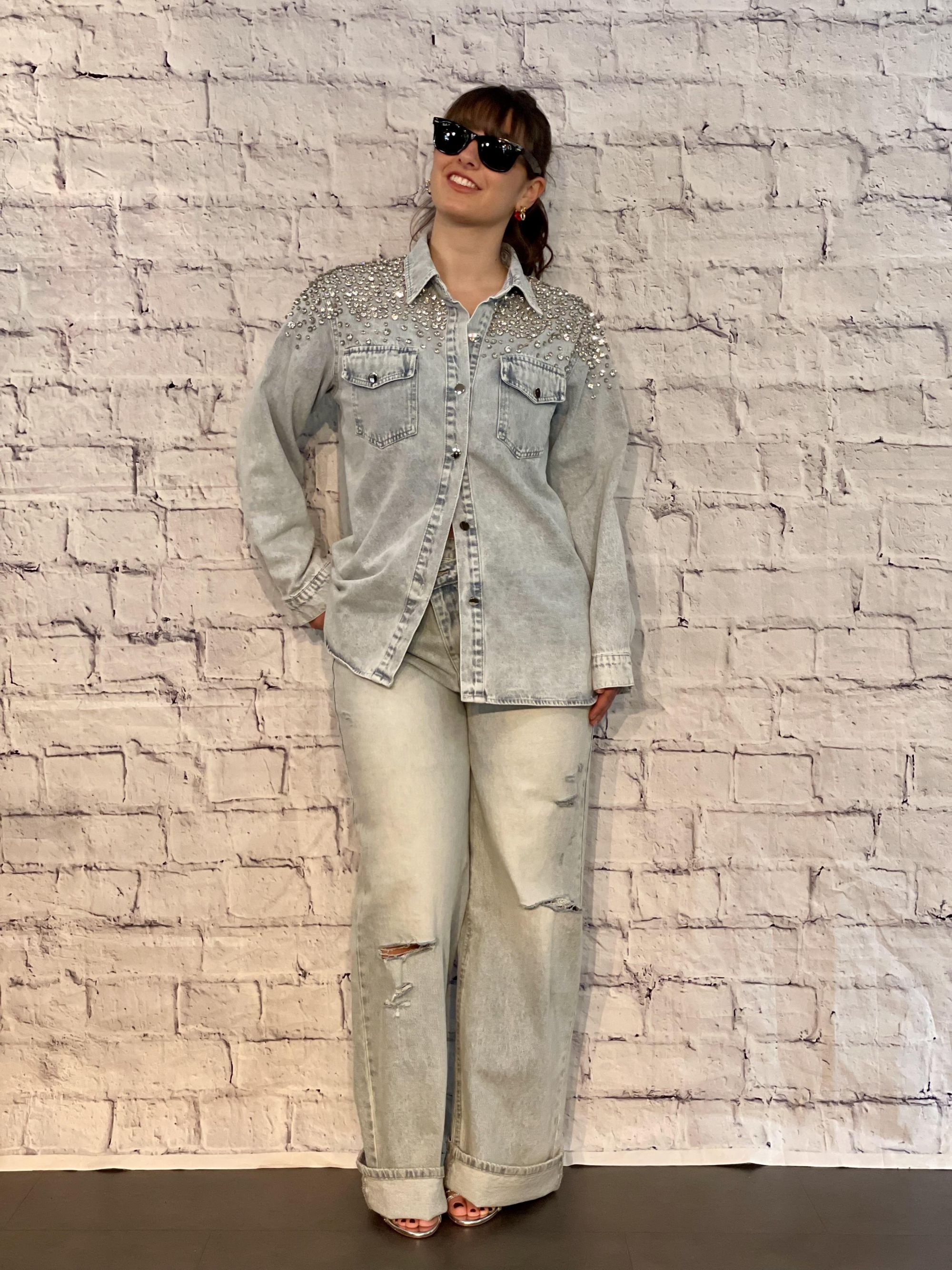 SUSY MIX - CAMICIA IN DENIM CELESTE CON STRASS ART. MF3006