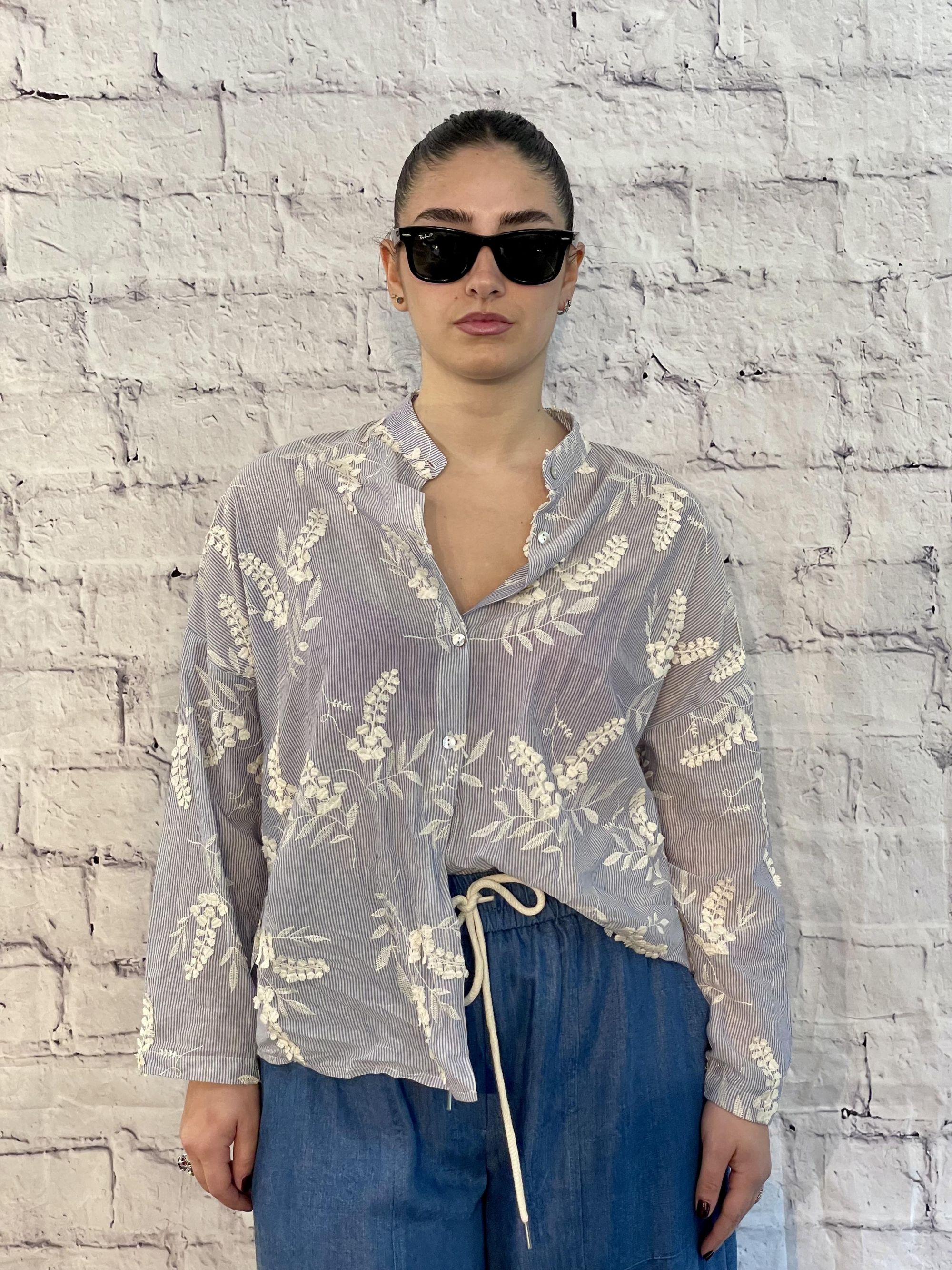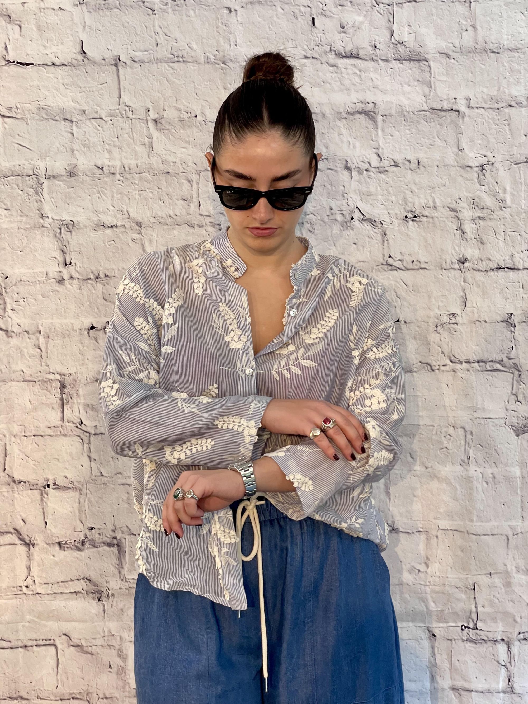 SUSY MIX - CAMICIA CELESTE A RIGHE CON RICAMI ART. 23235SD