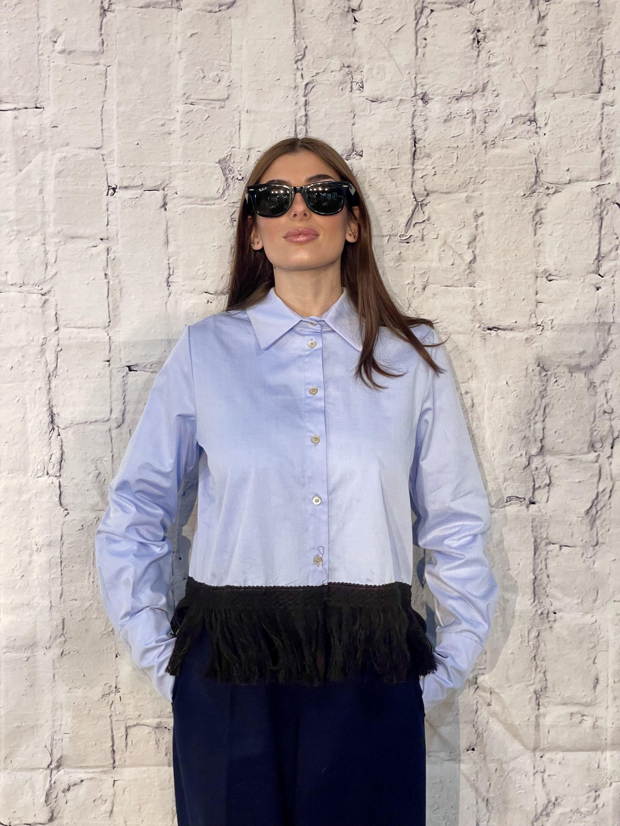 TENSIONE IN - CAMICIA CELESTE CON FRANGE ART. 38065