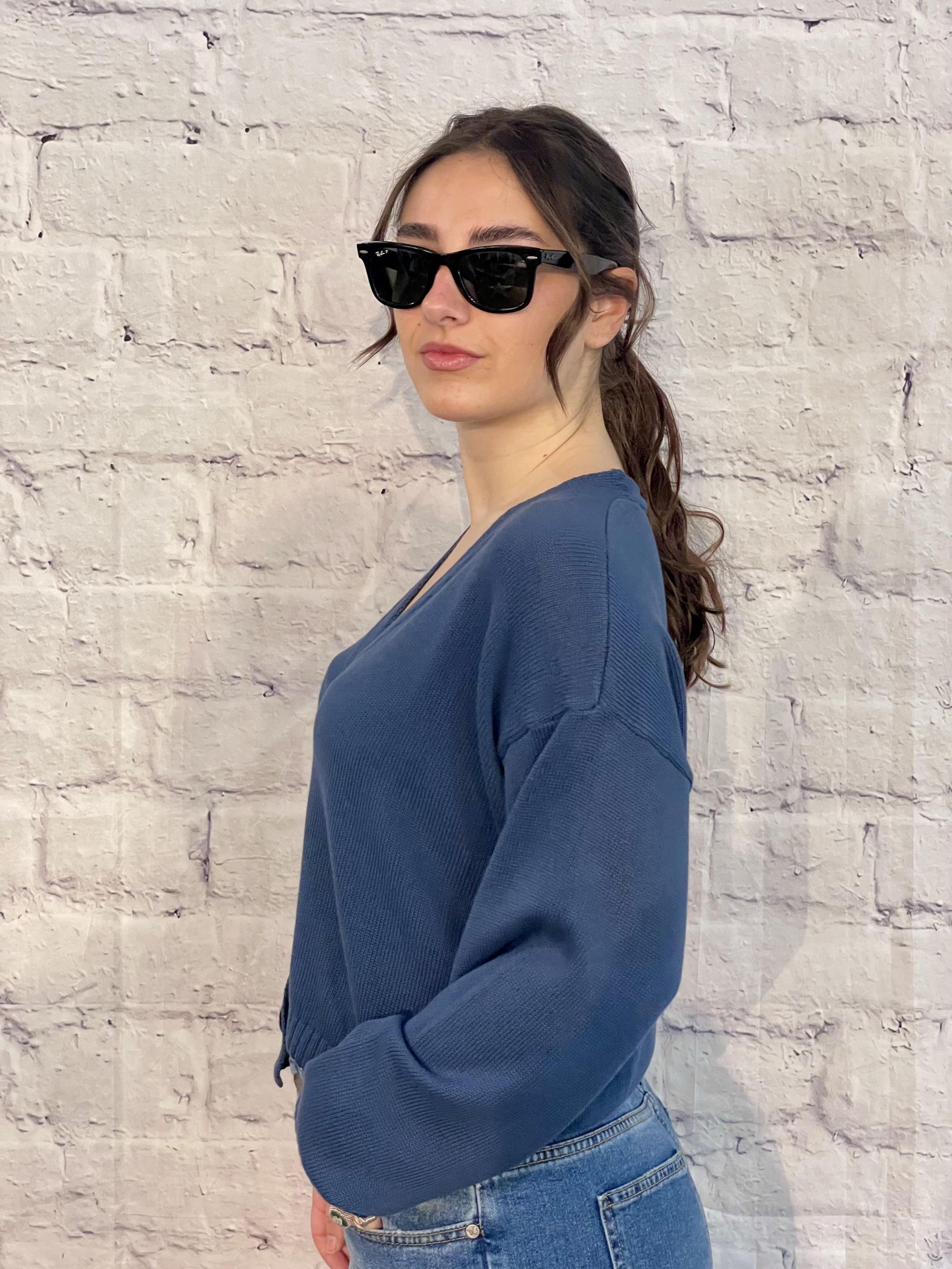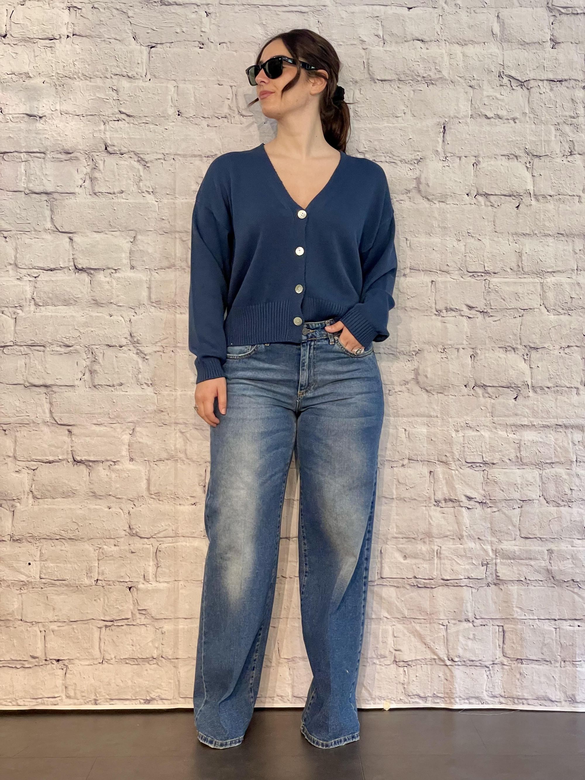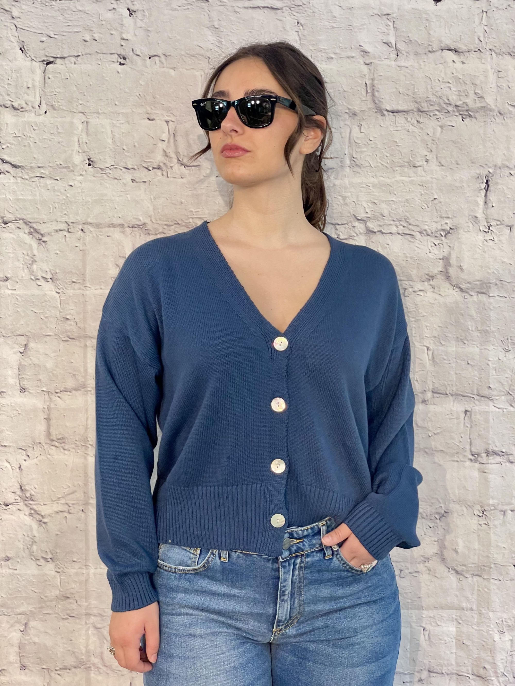 SUSY MIX - CARDIGAN CROPPED BLU SCOLLO A V ART. 20039