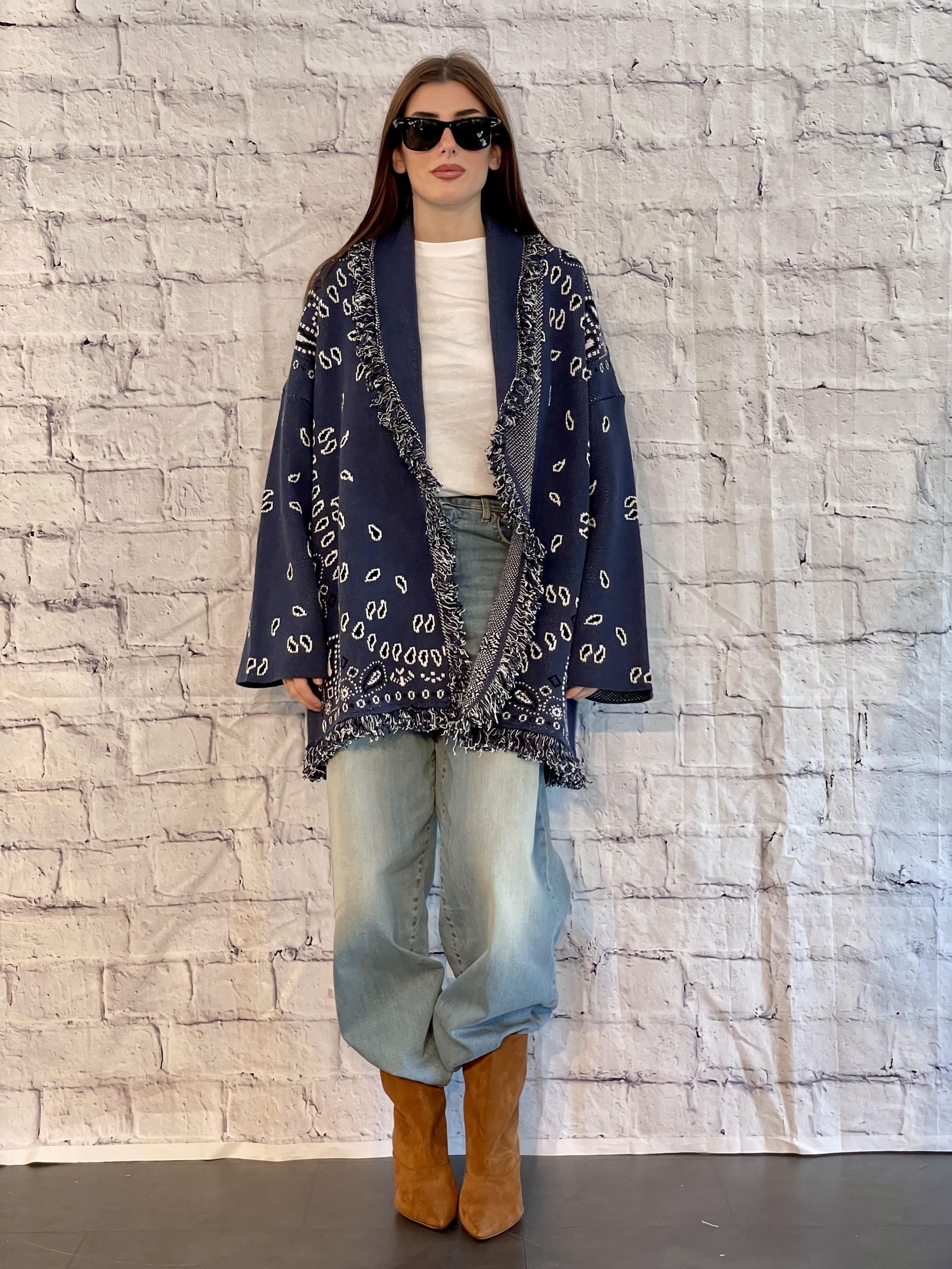 TENSIONE IN - CARDIGAN BLU STAMPA BANDANA SFRANGIATO ART. P6HMG38A414