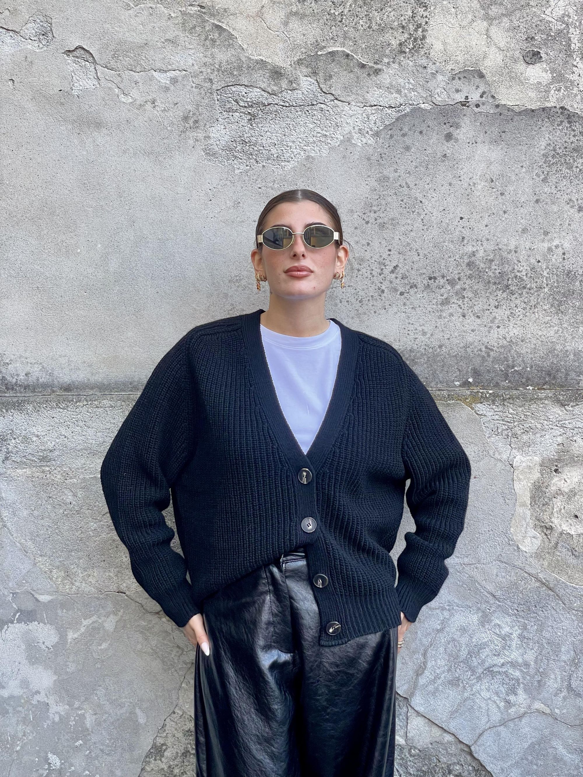 TENSIONE IN - CARDIGAN A COSTE NERO ART. D80942