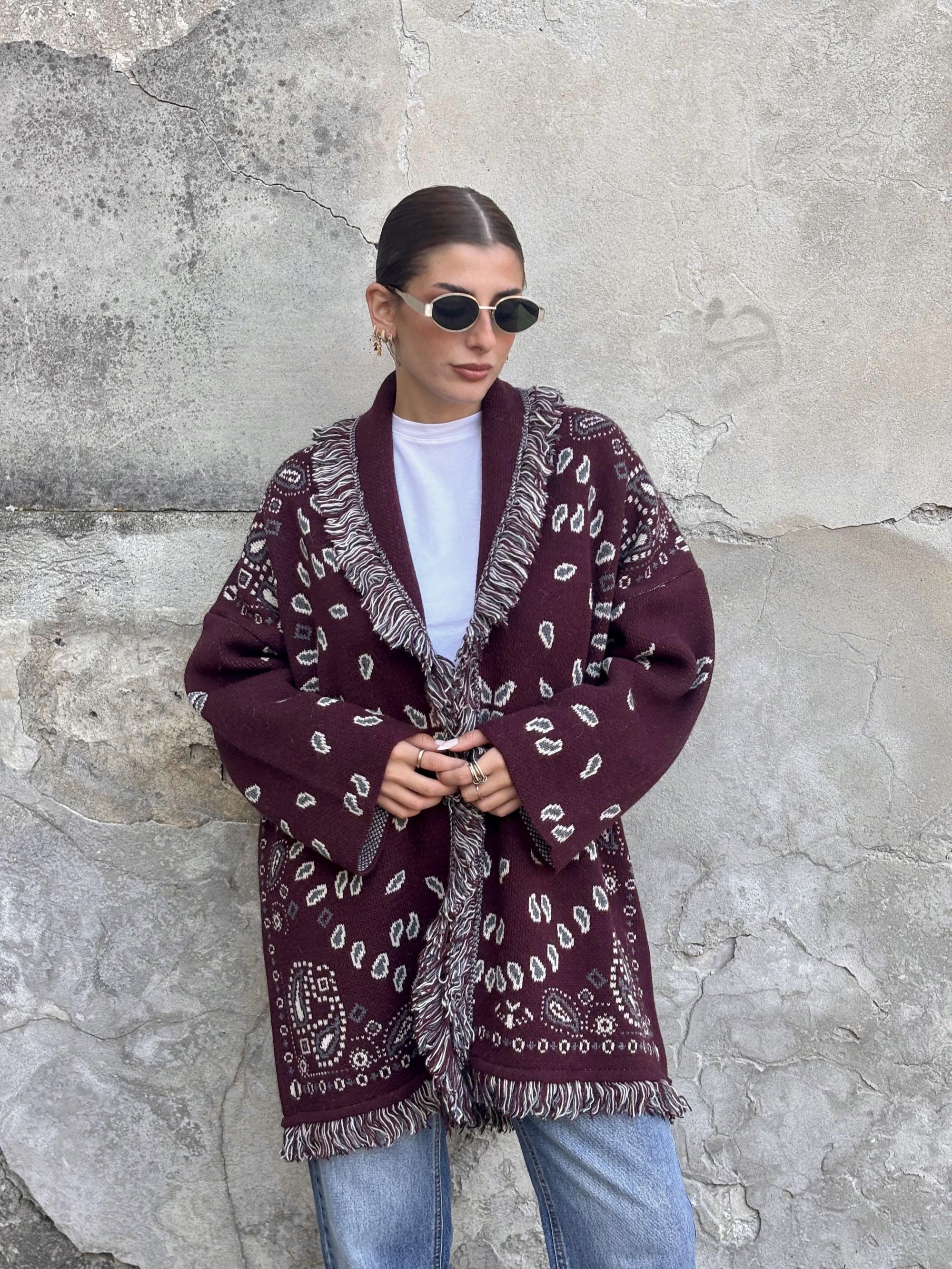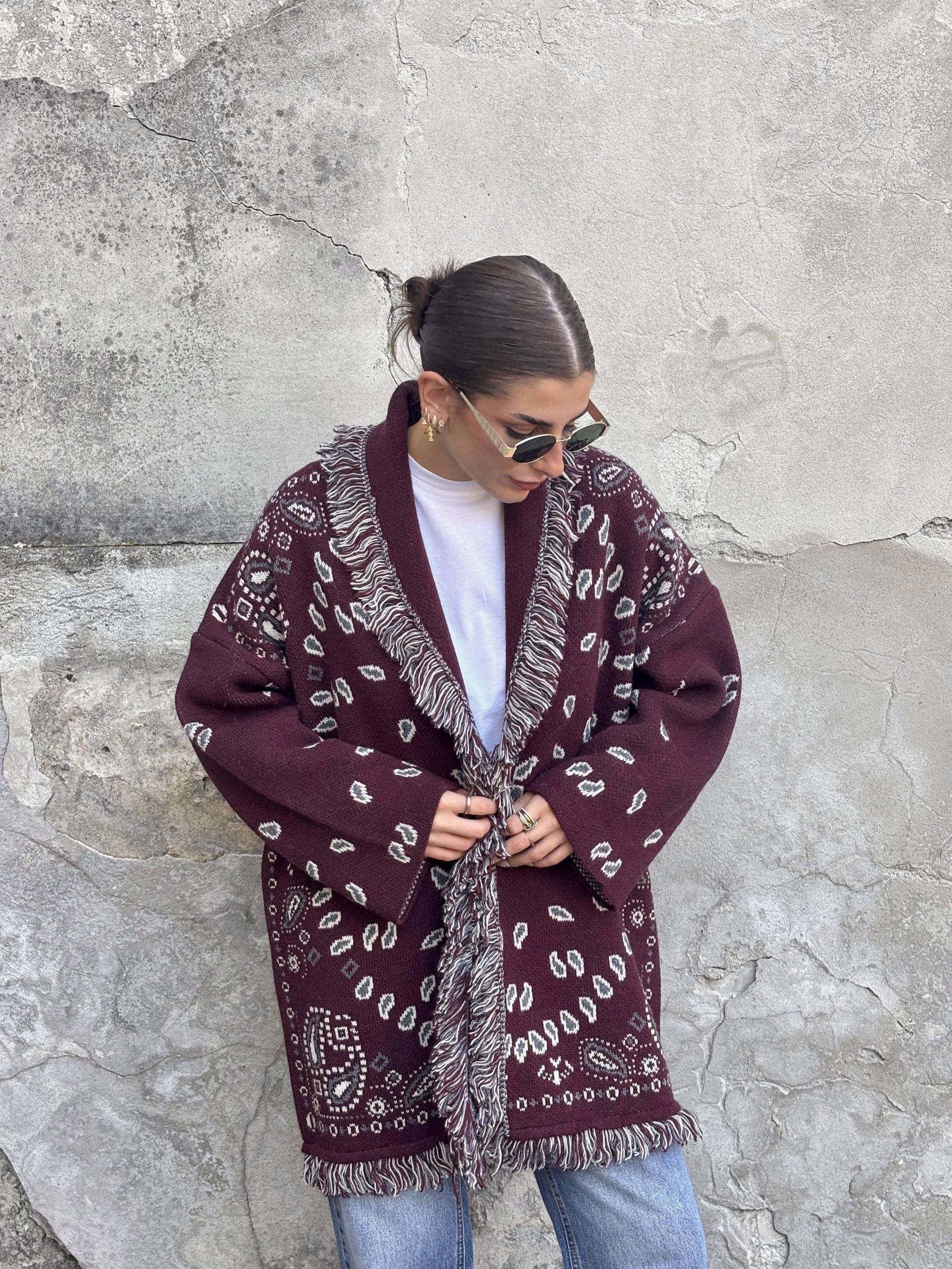 TENSIONE IN - CARDIGAN FANTASIA BANDANA BORDEAUX ART. W5HMG38A400