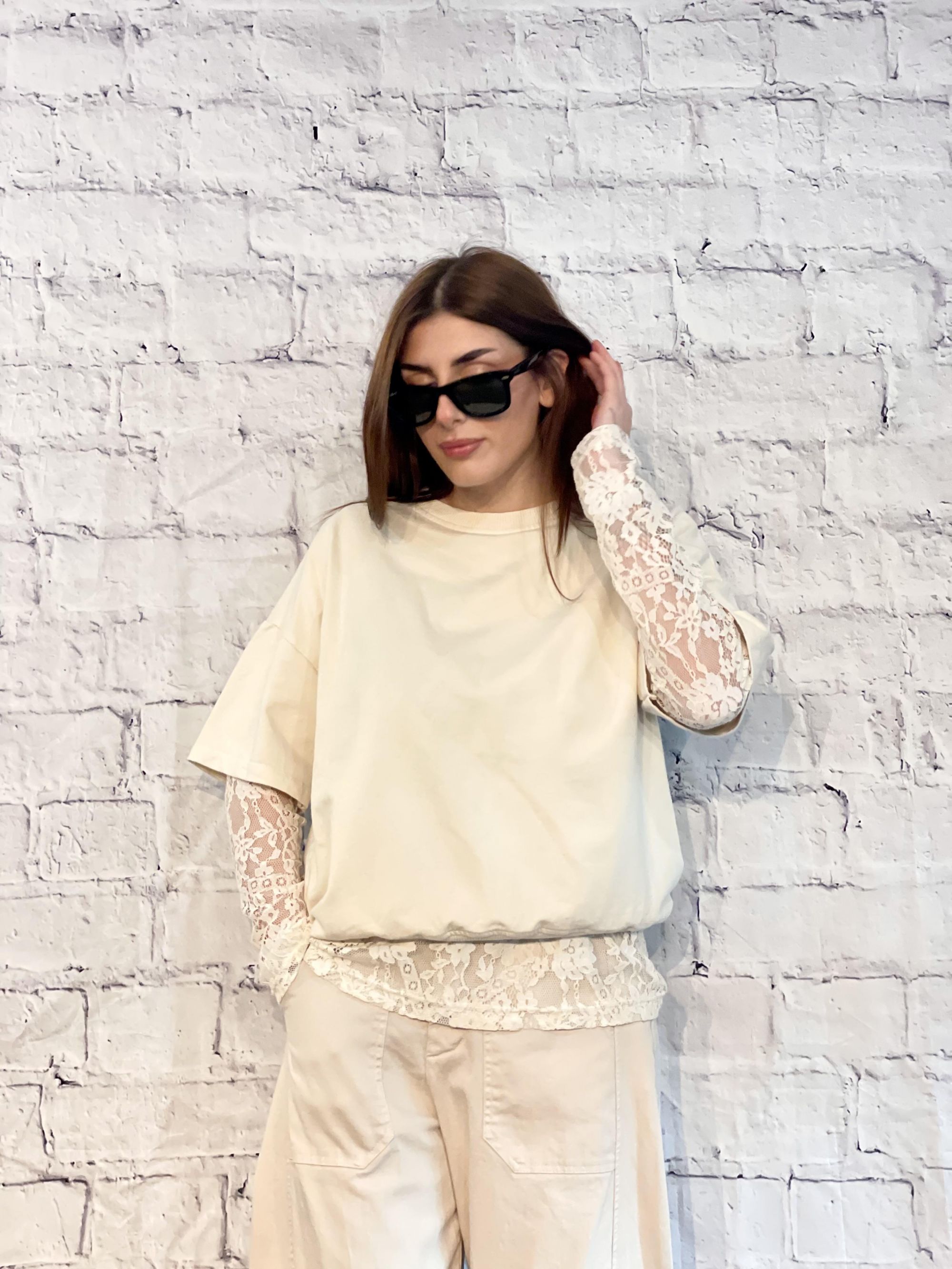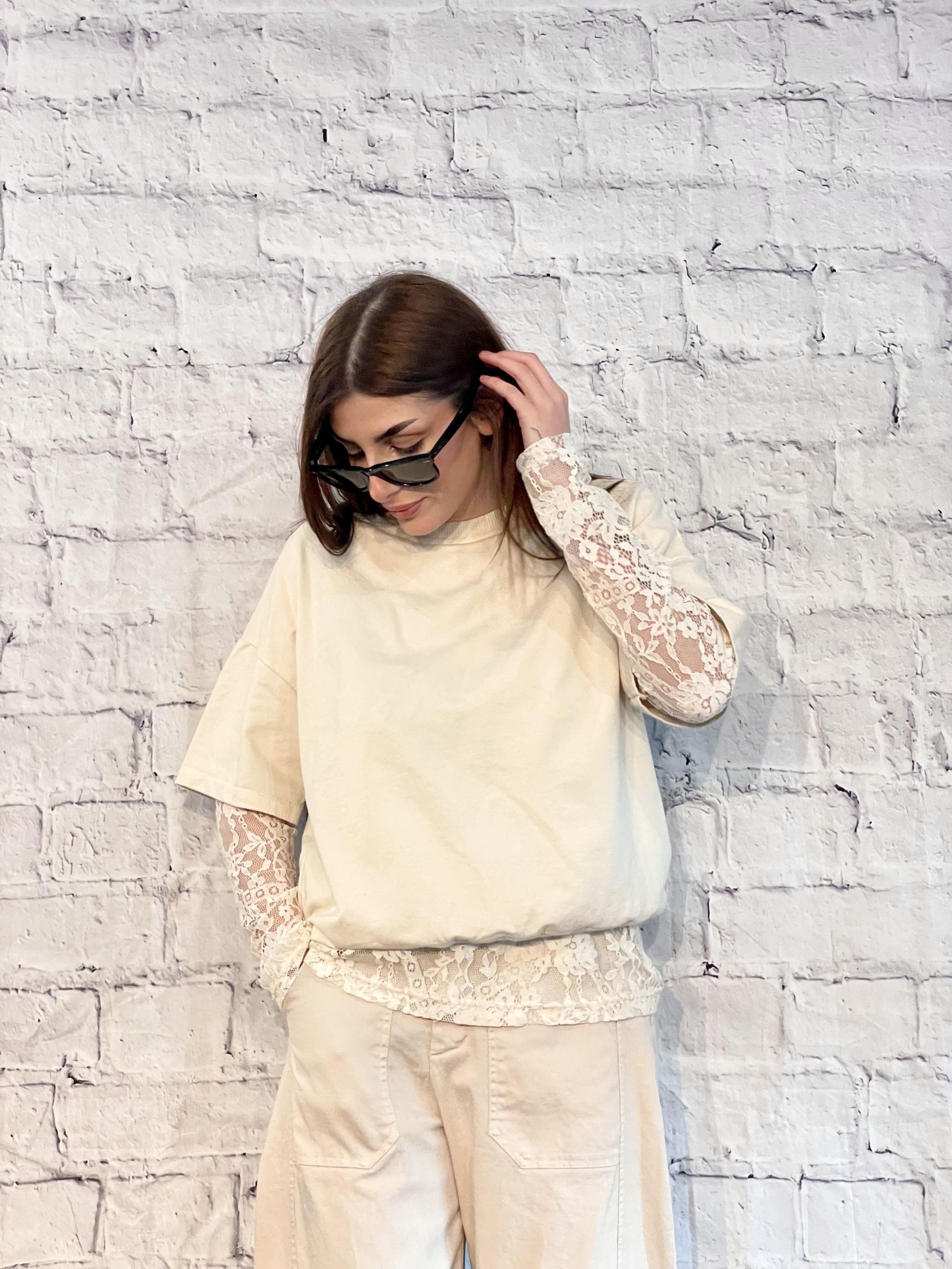 SUSY MIX - COMPLETO COLOR BURRO FELPA E MAGLIA IN PIZZO ART. 26871