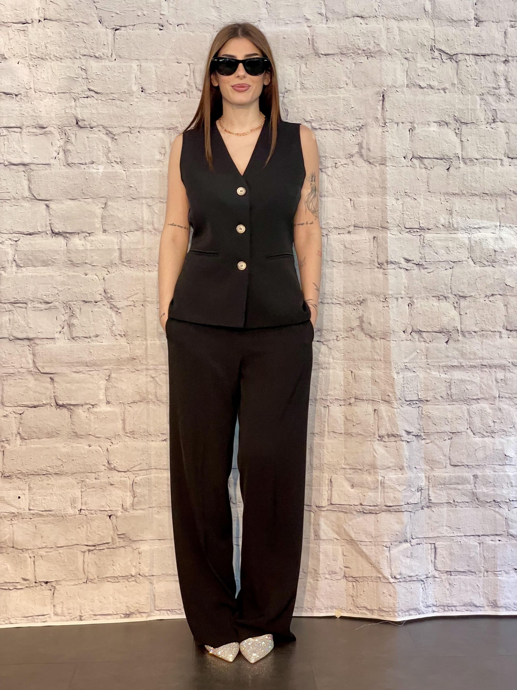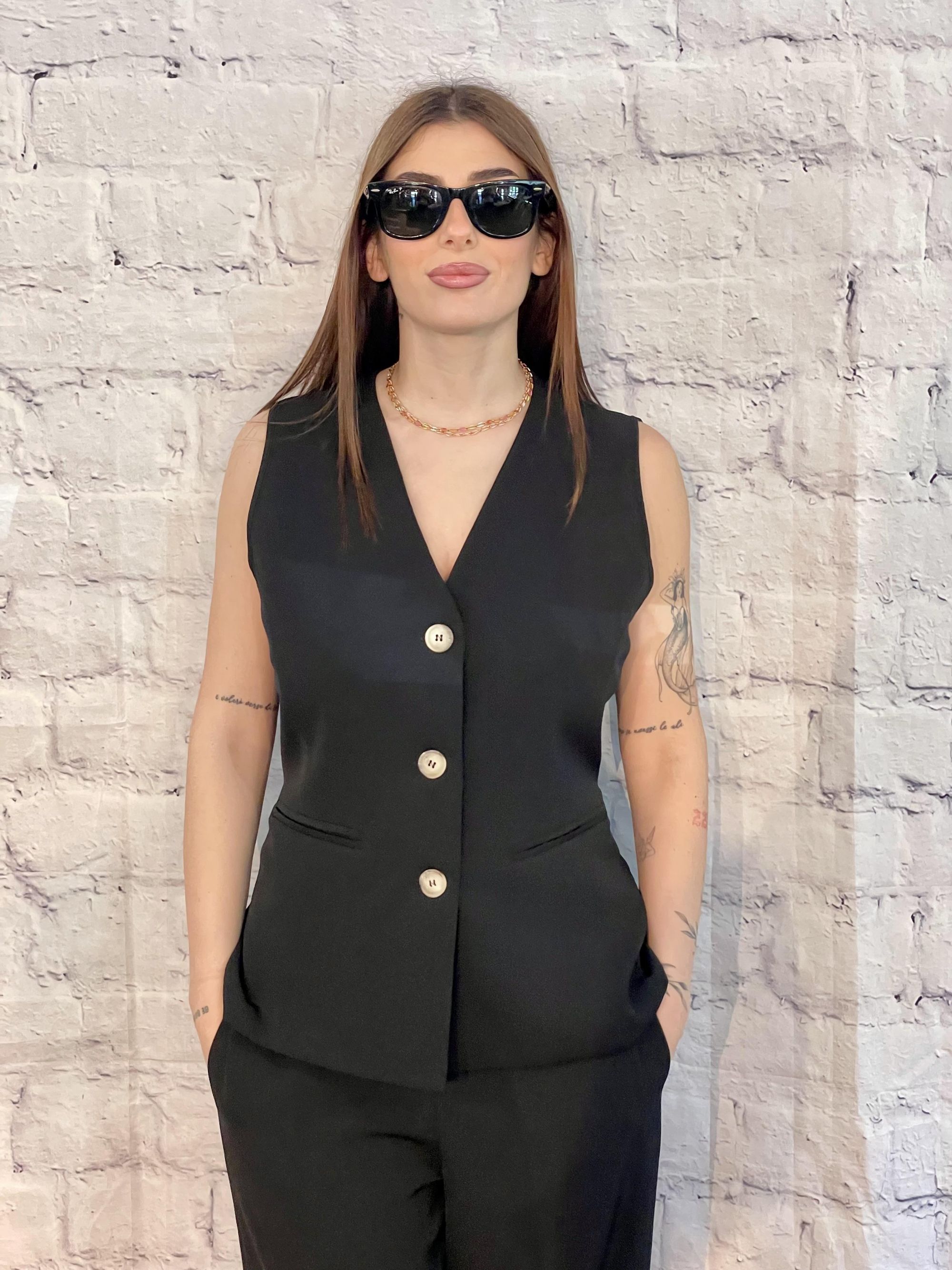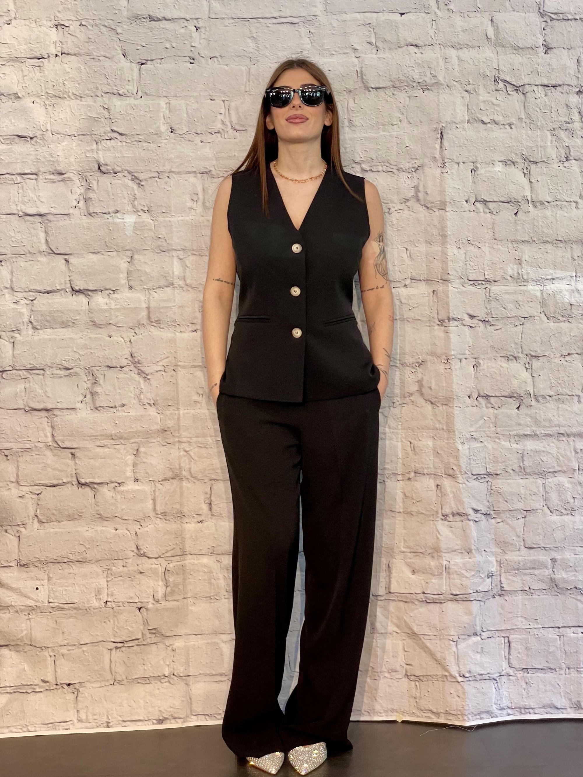 SUSY MIX - COMPLETO GILET LUNGO E PANTALONE NERO ART. SM205A