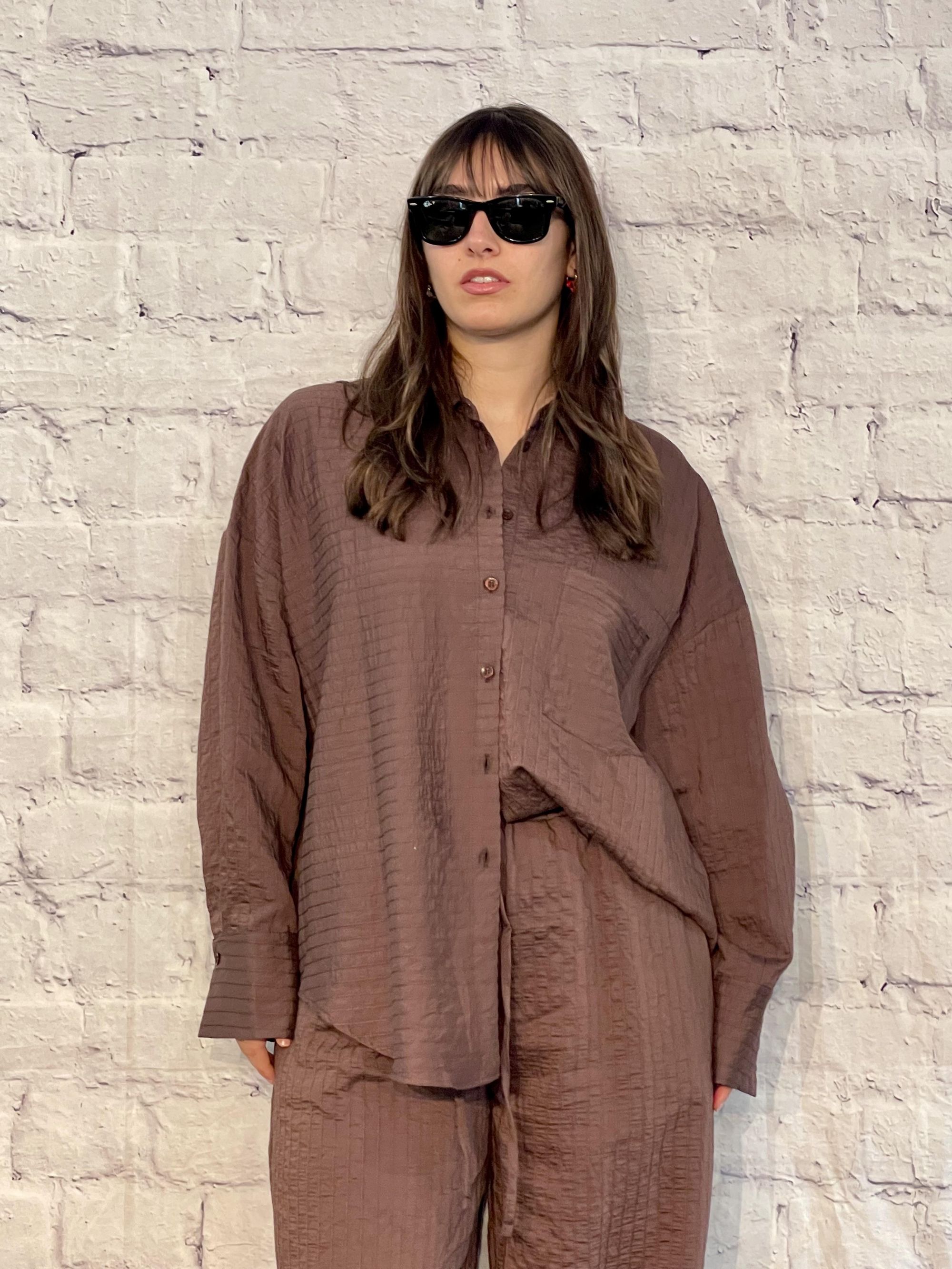 SUSY MIX - COMPLETO RIGATO MARRONE CAMICIA E PANTALONE ART. CM0542PN1668