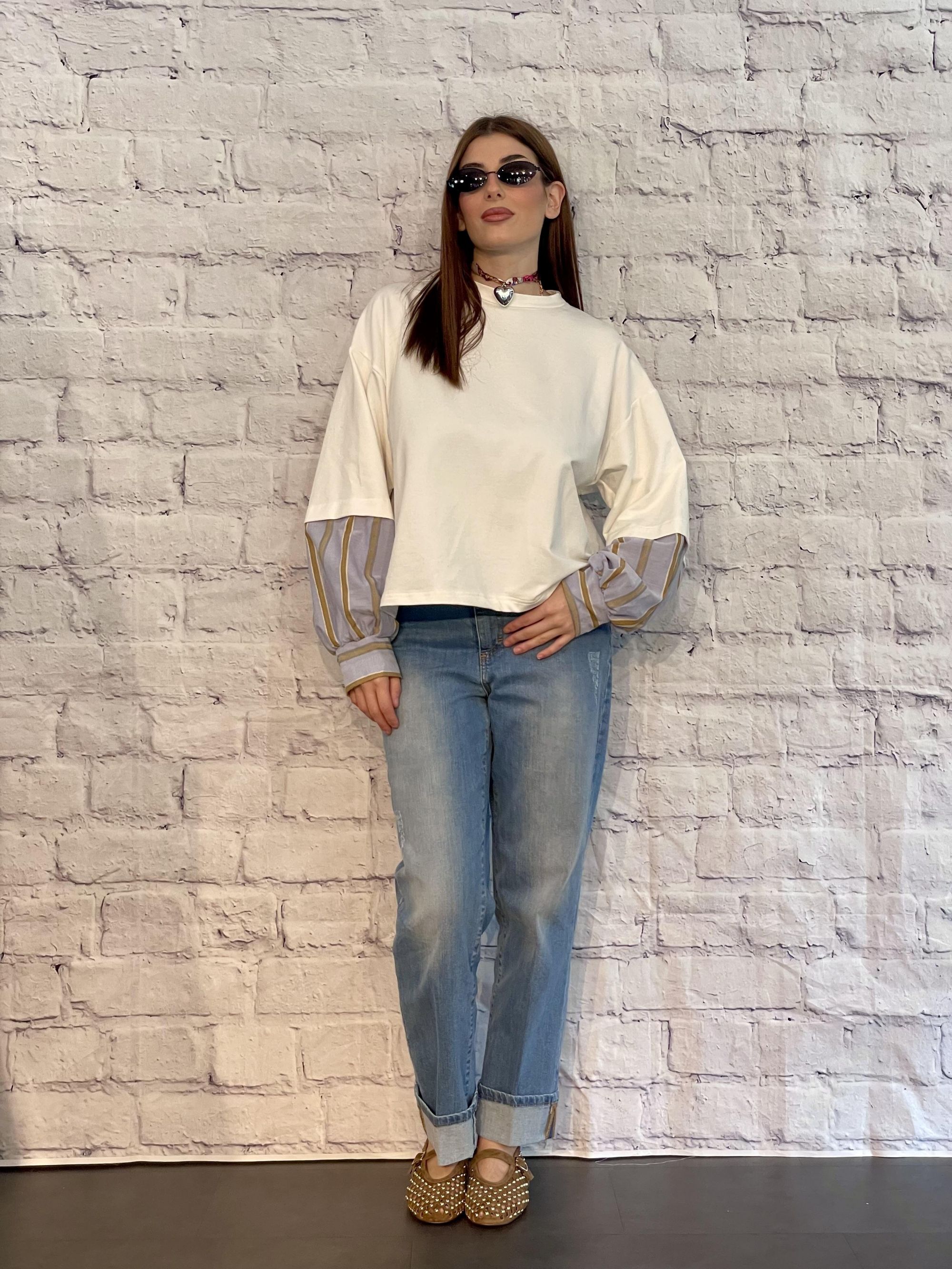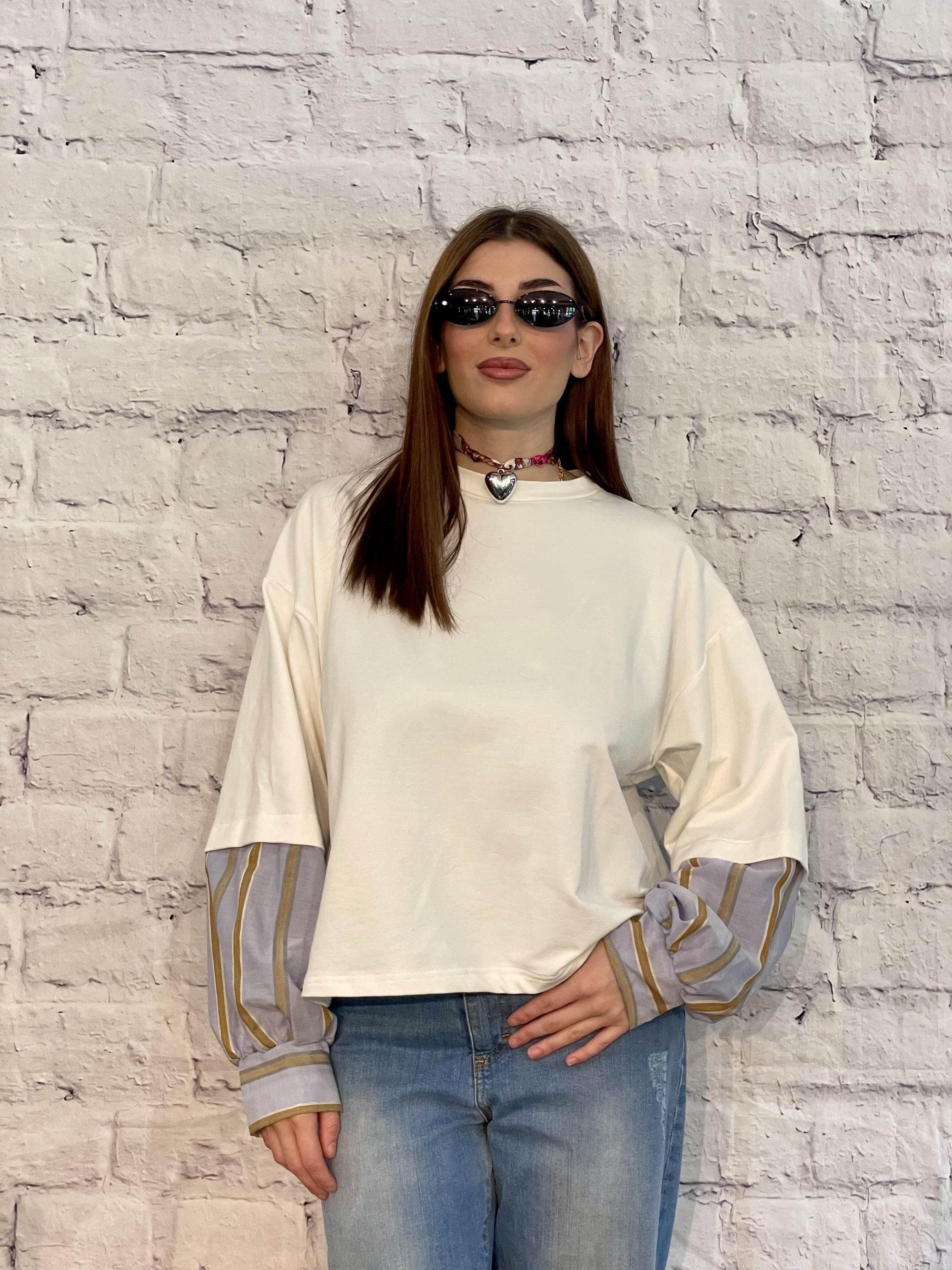 SUSY MIX - FELPA COLOR LATTE PARICOLLO CON MANICHE A RIGHE ART. 26631