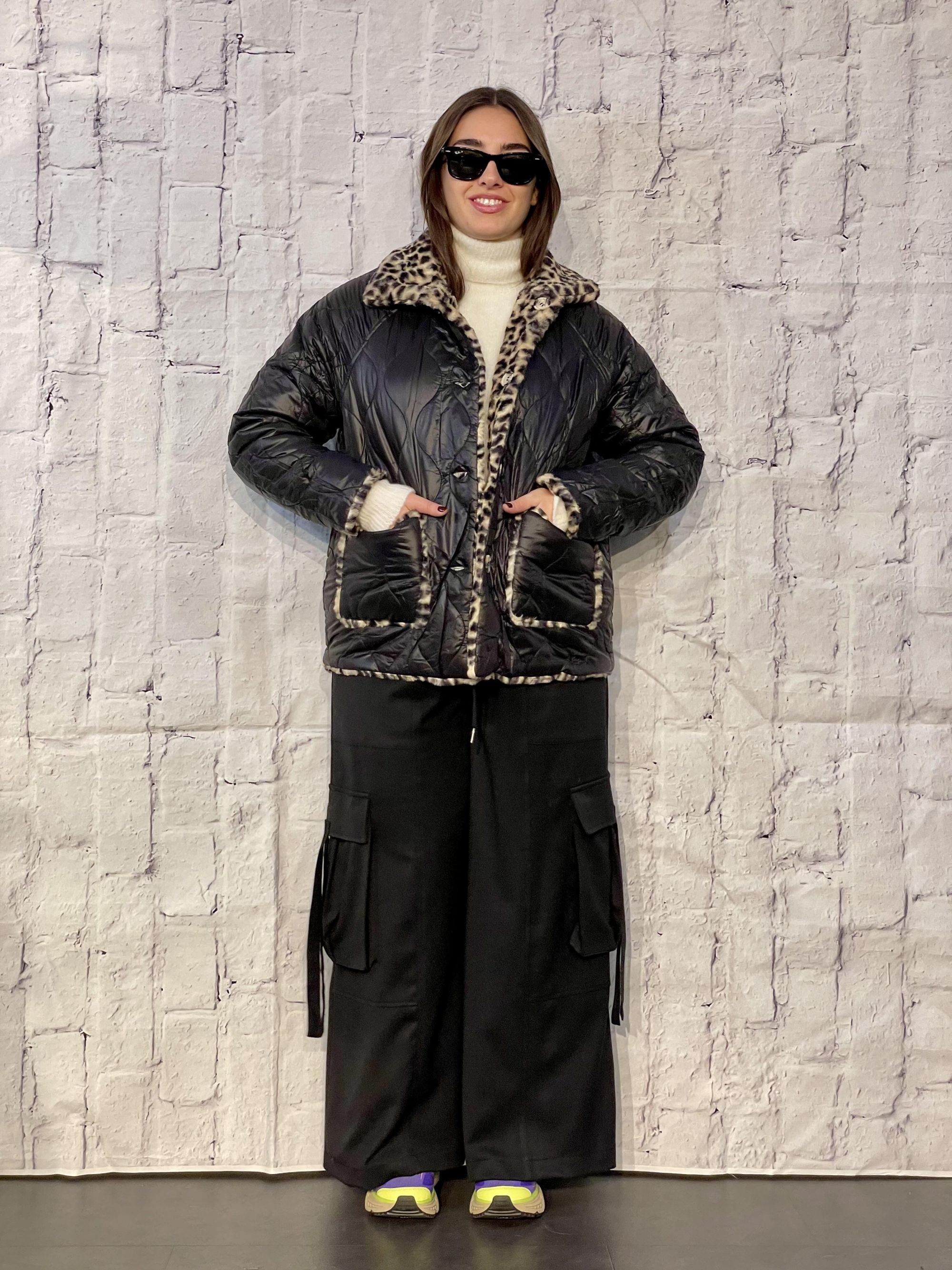 MDIMATILDE - GIACCA TRAPUNTATA REVERSIBILE NERA CON INTERNO ECOPELLICCIA ANIMALIER