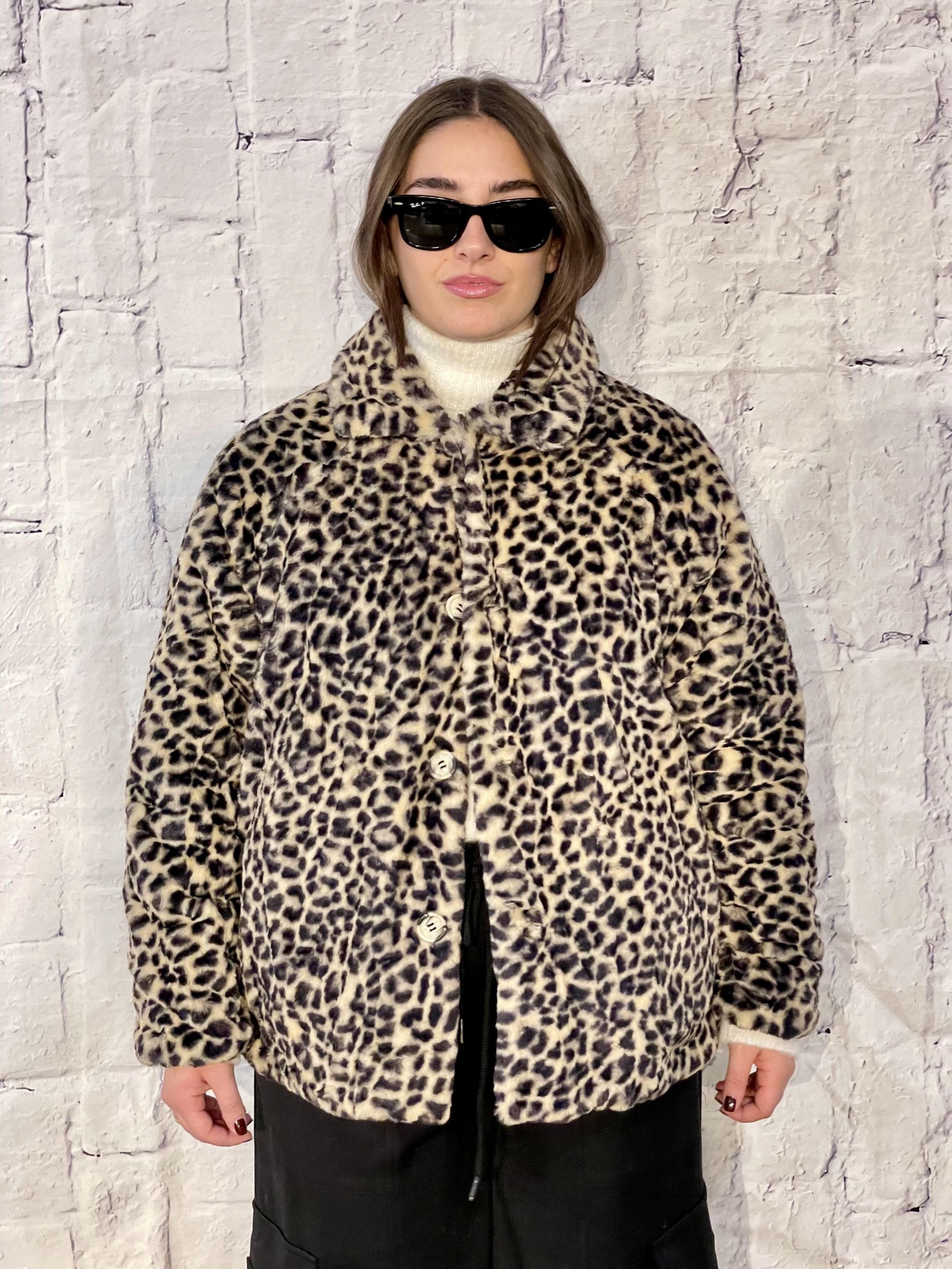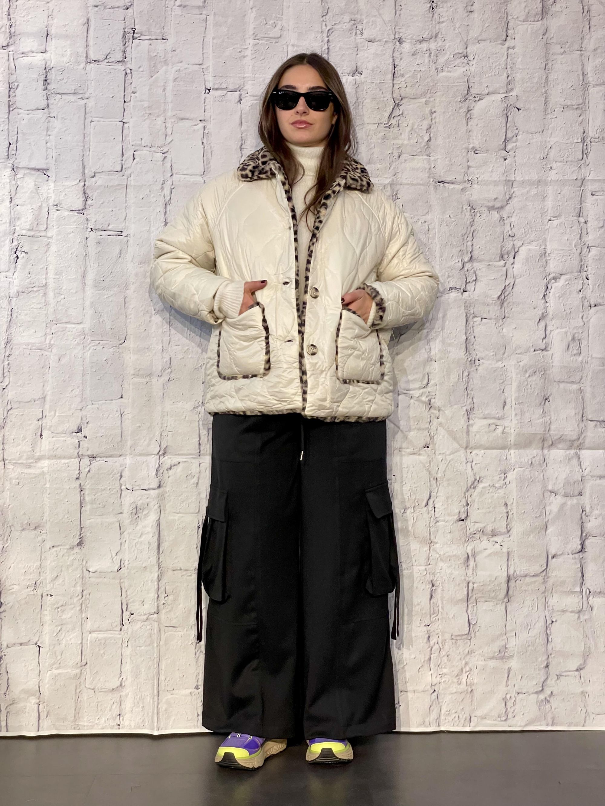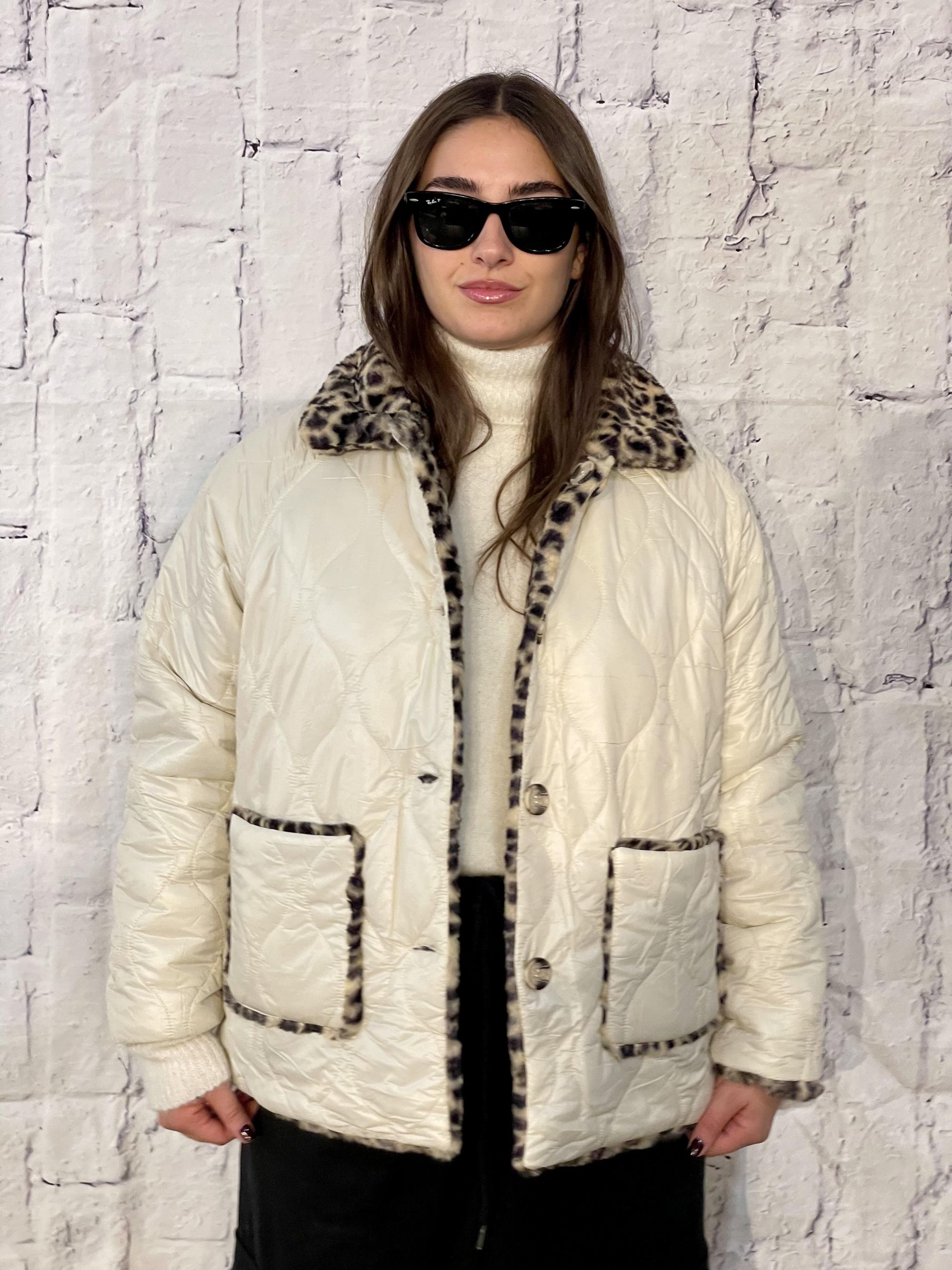 MDIMATILDE - GIACCA TRAPUNTATA REVERSIBILE PANNA CON INTERNO ECOPELLICCIA ANIMALIER