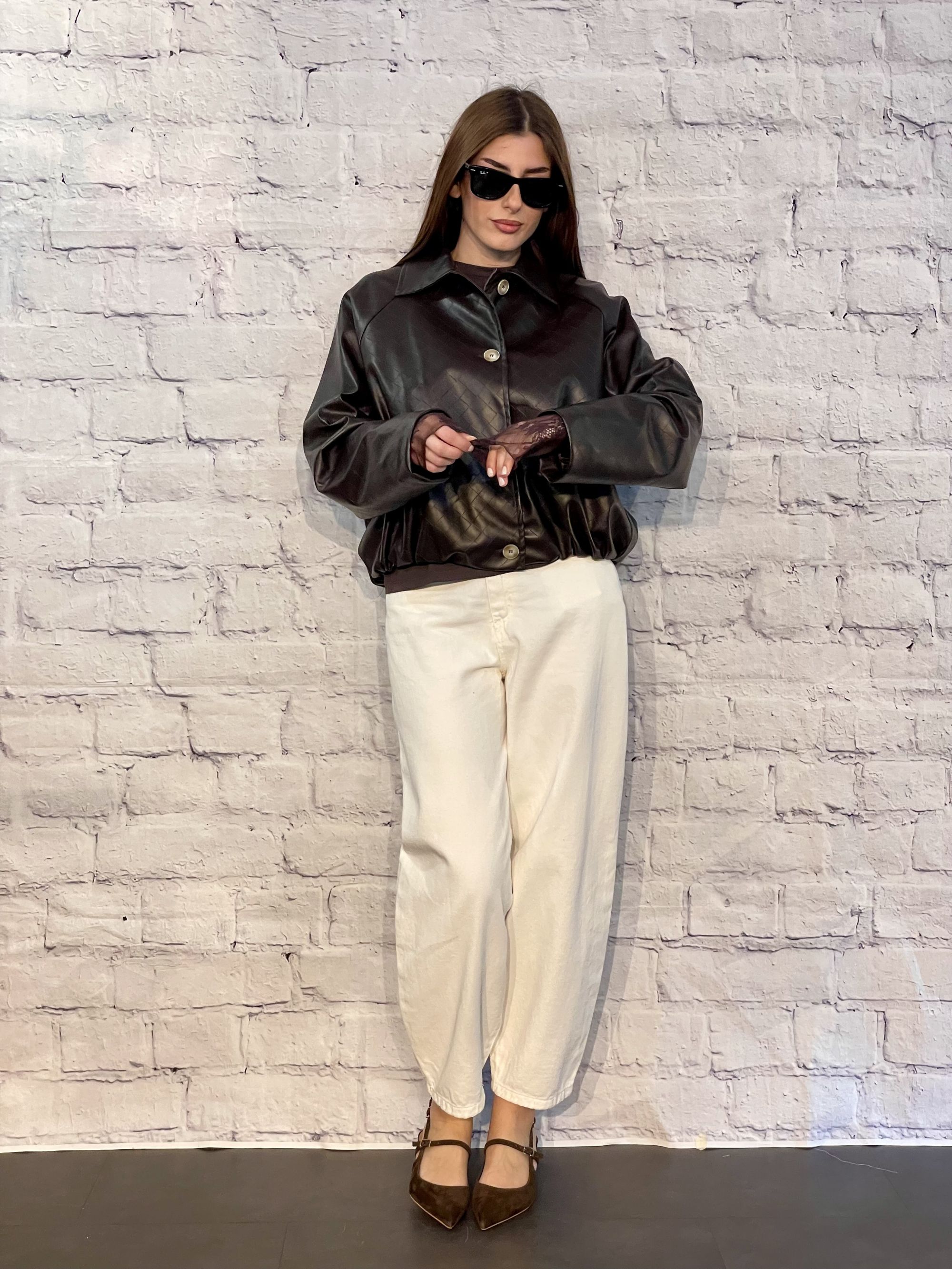 SUSY MIX - GIACCA BOMBER ECOPELLE LASERATA MORO ART. S26M285