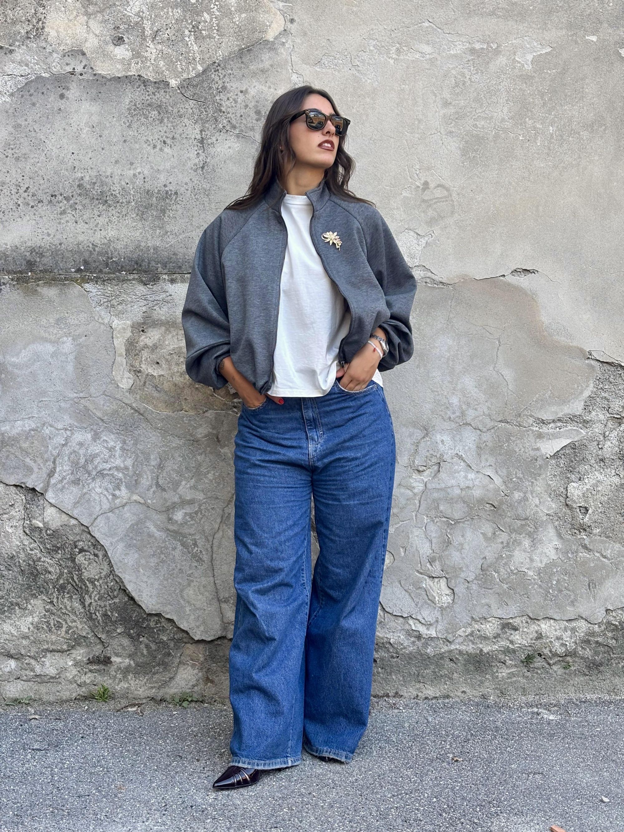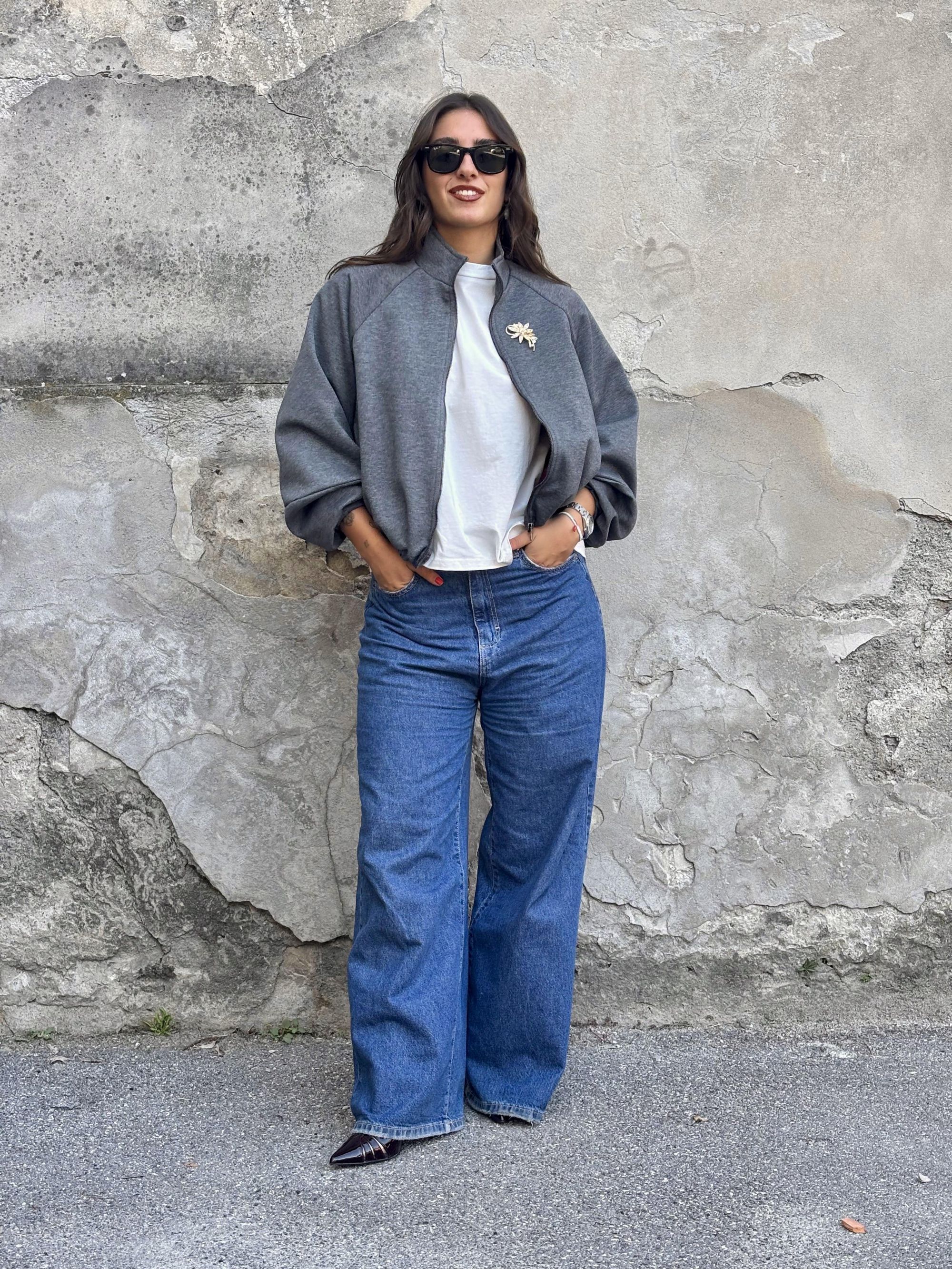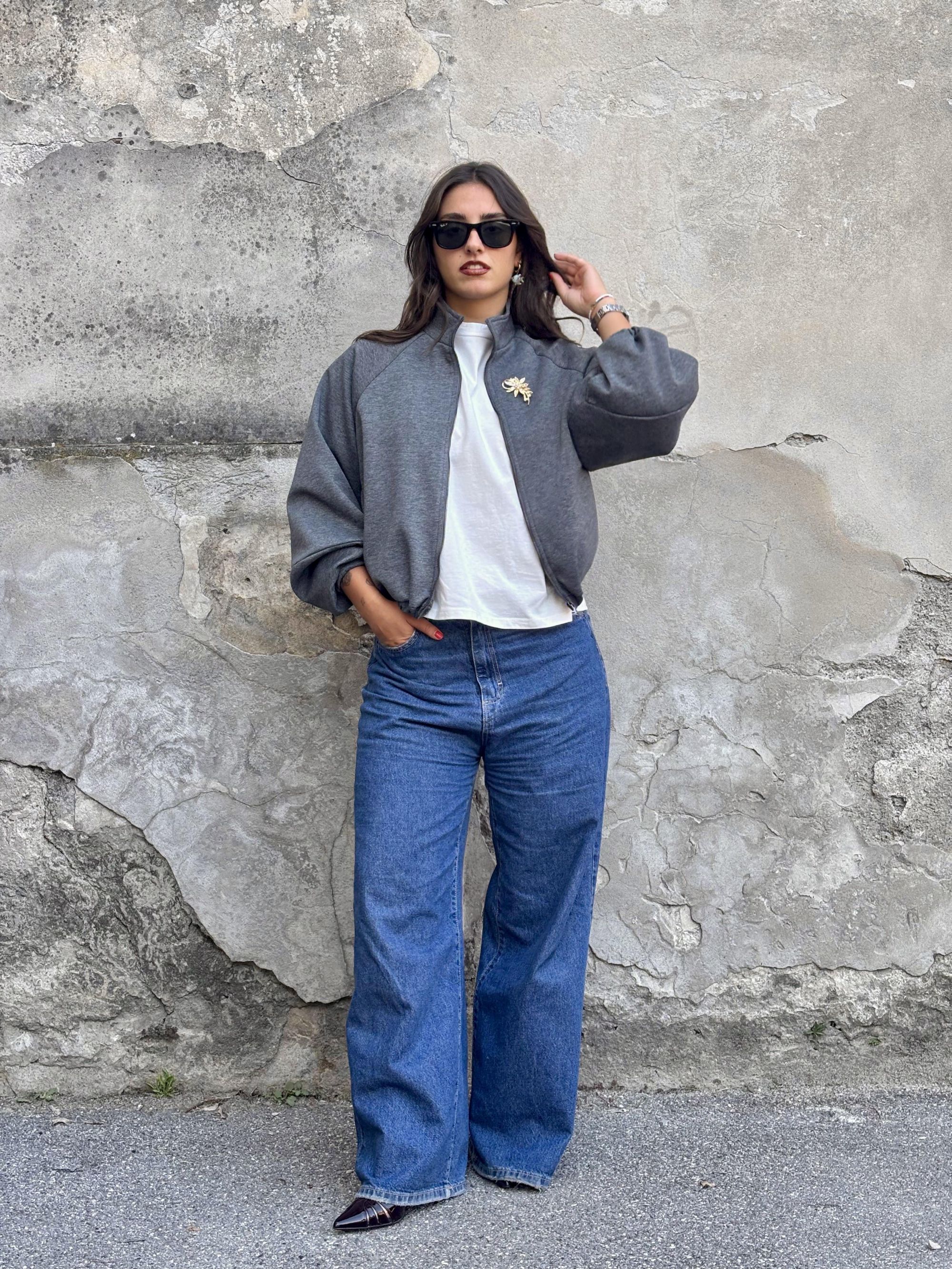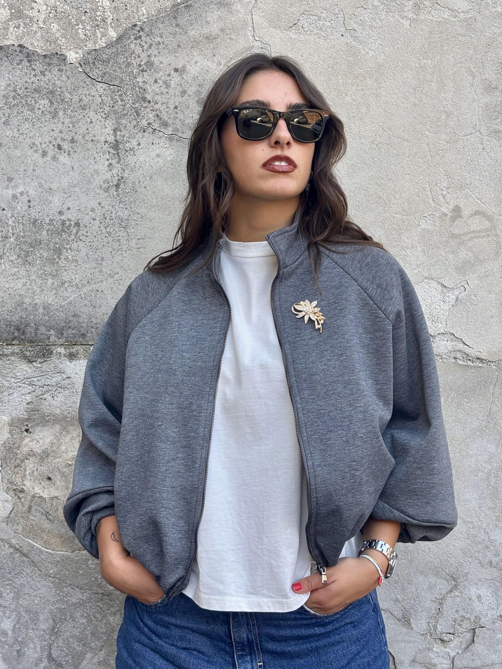 SUSY MIX - GIACCA BOMBER GRIGIA CON SPILLA GIOIELLO ART. GB01562
