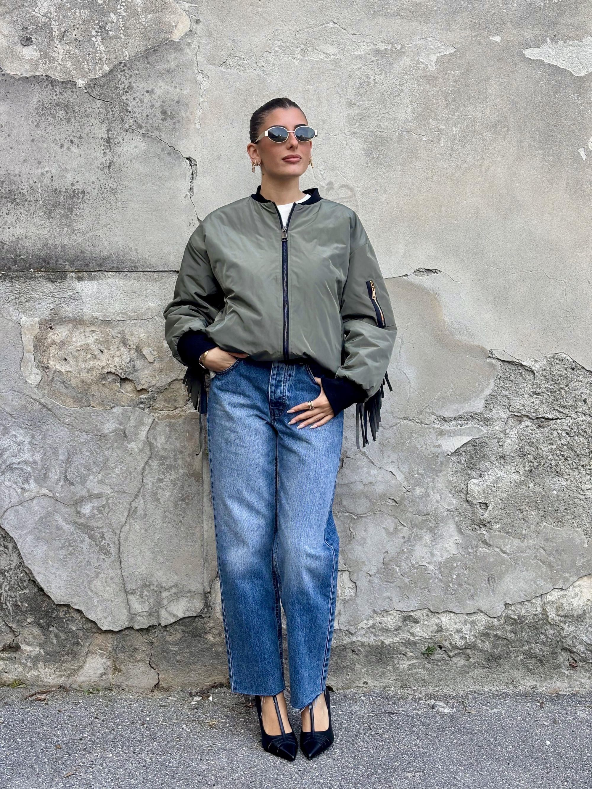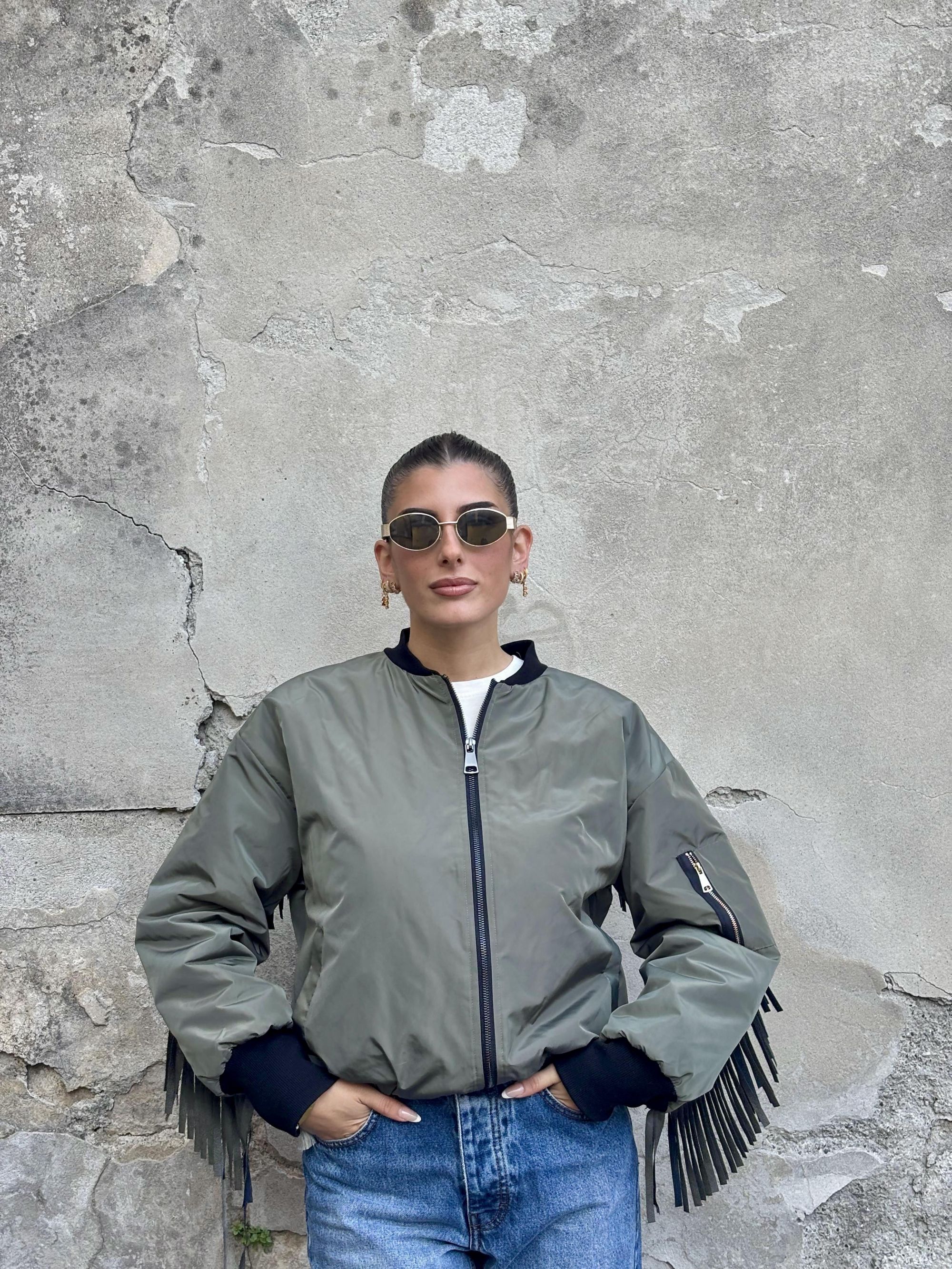 SUSY MIX - GIACCA BOMBER VERDE CON FRANGE ART. S2806