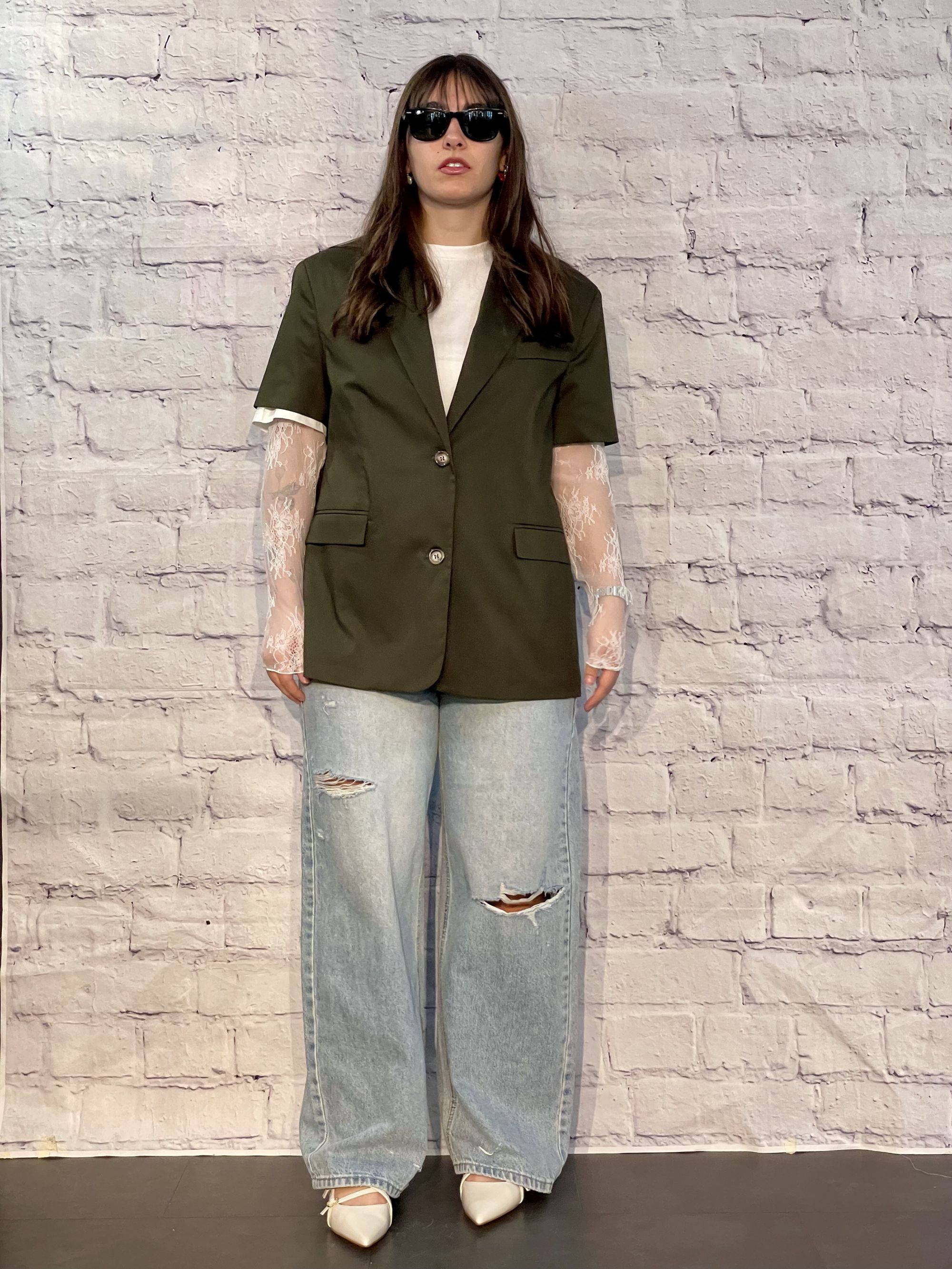 SUSY MIX - GIACCA OVER VERDE MILITARE MEZZA MANICA ART. 10234