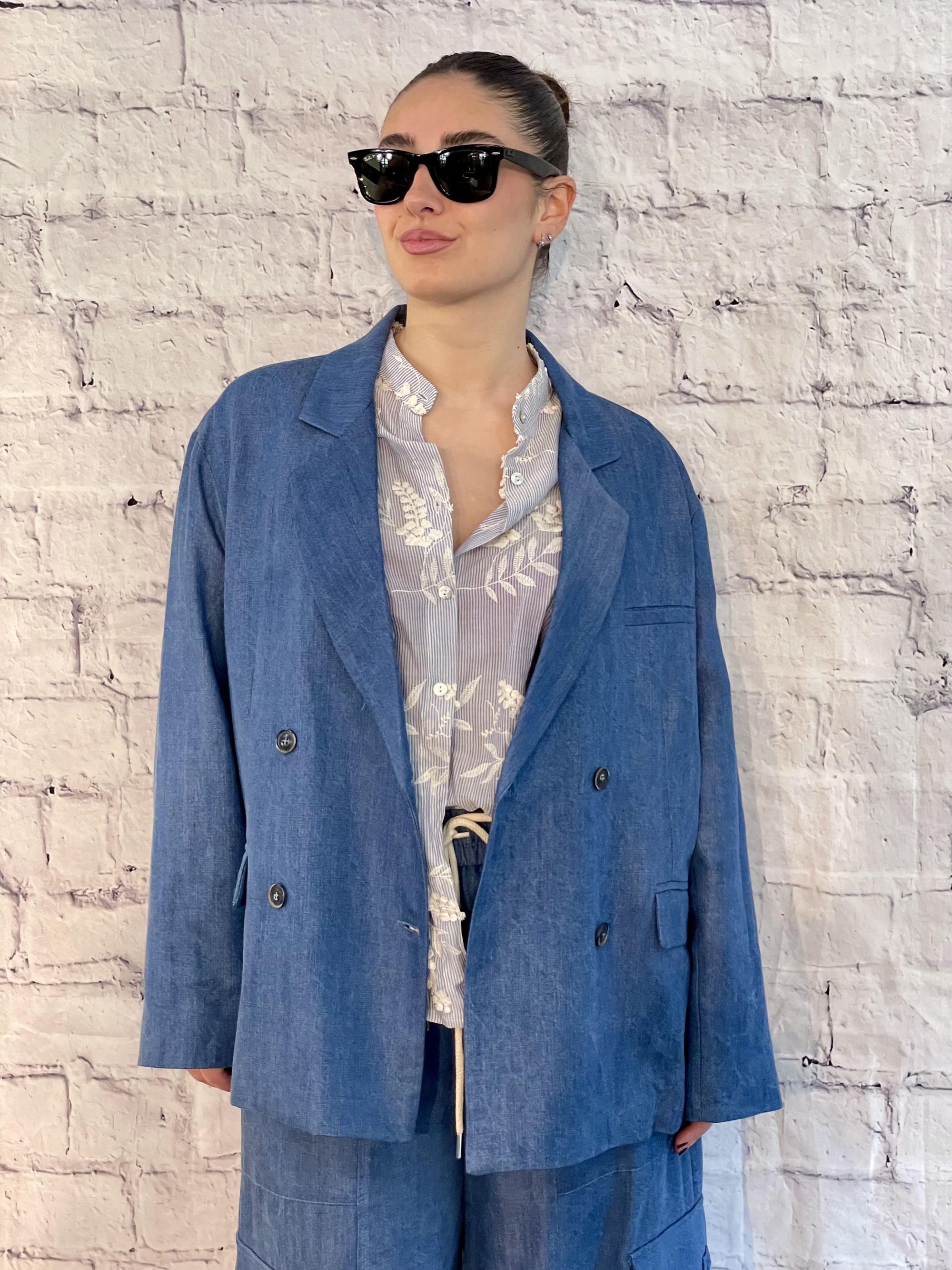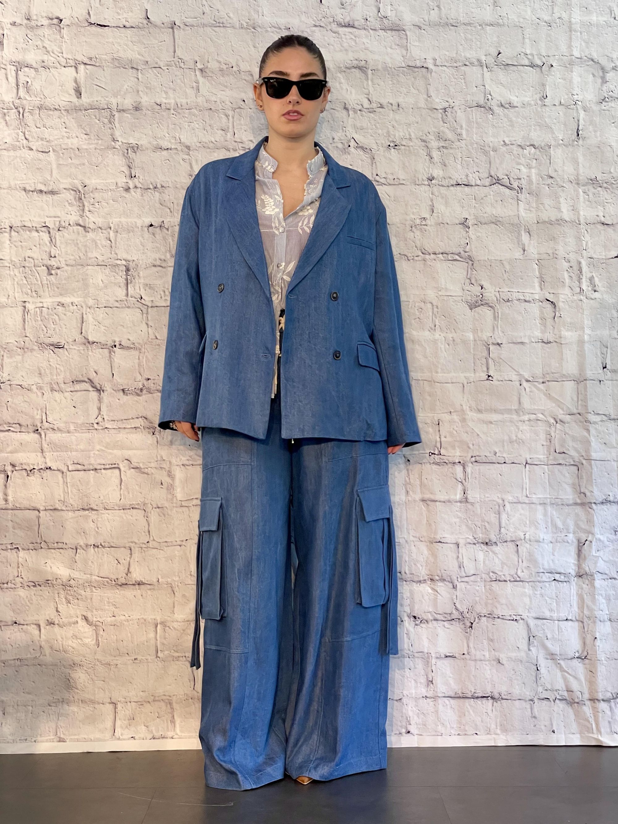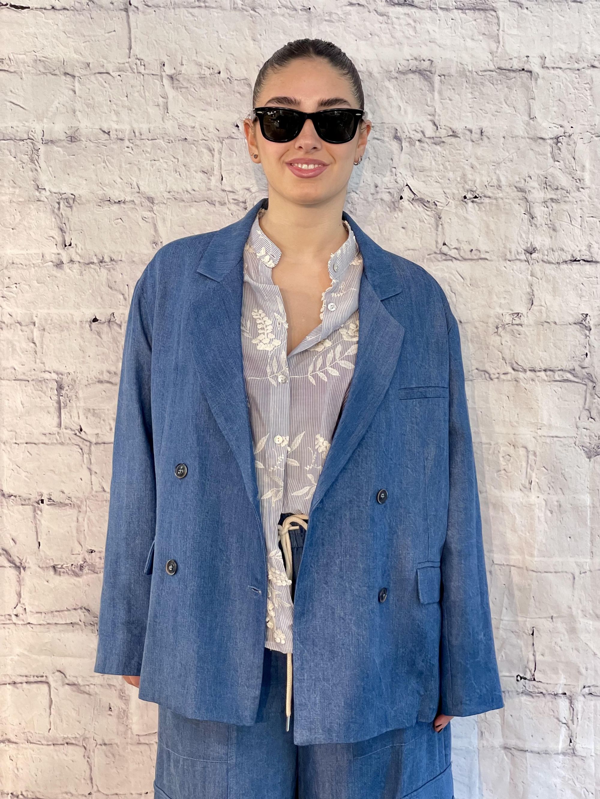 TENSIONE IN - GIACCA OVER IN CHAMBRAY AZZURRO DOPPIOPETTO ART. 26B3861