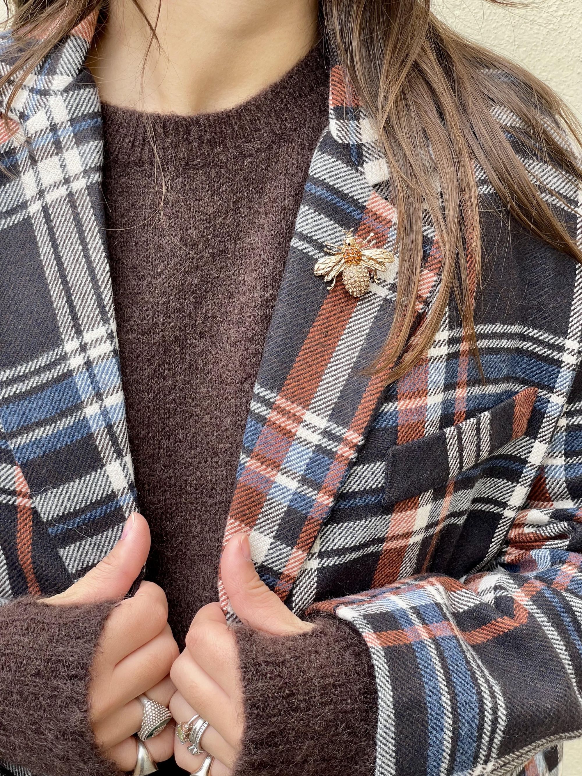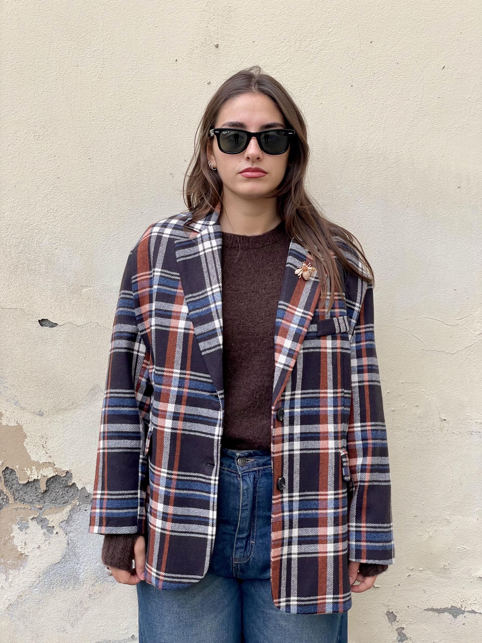 TENSIONE IN - GIACCA CHECK OVER MORO CON SPILLETTE ART. 26B1430