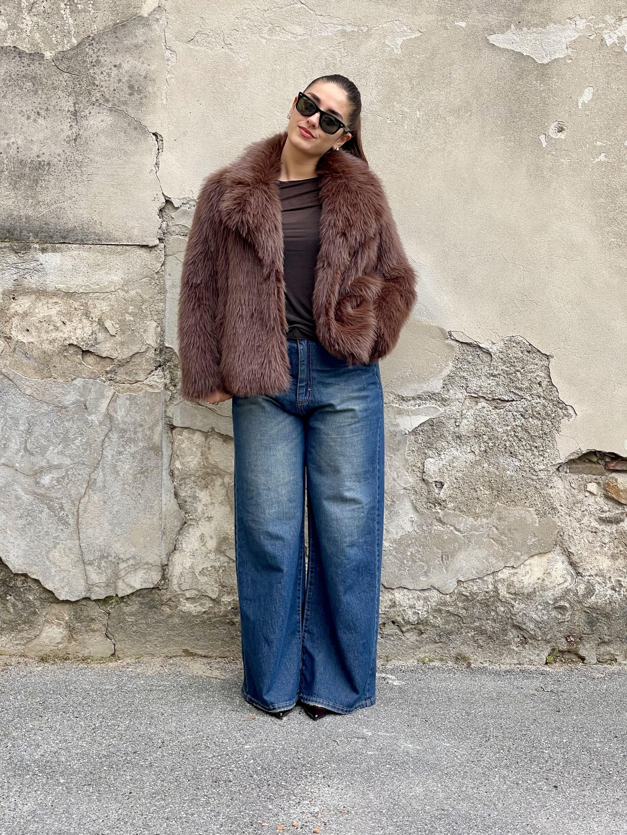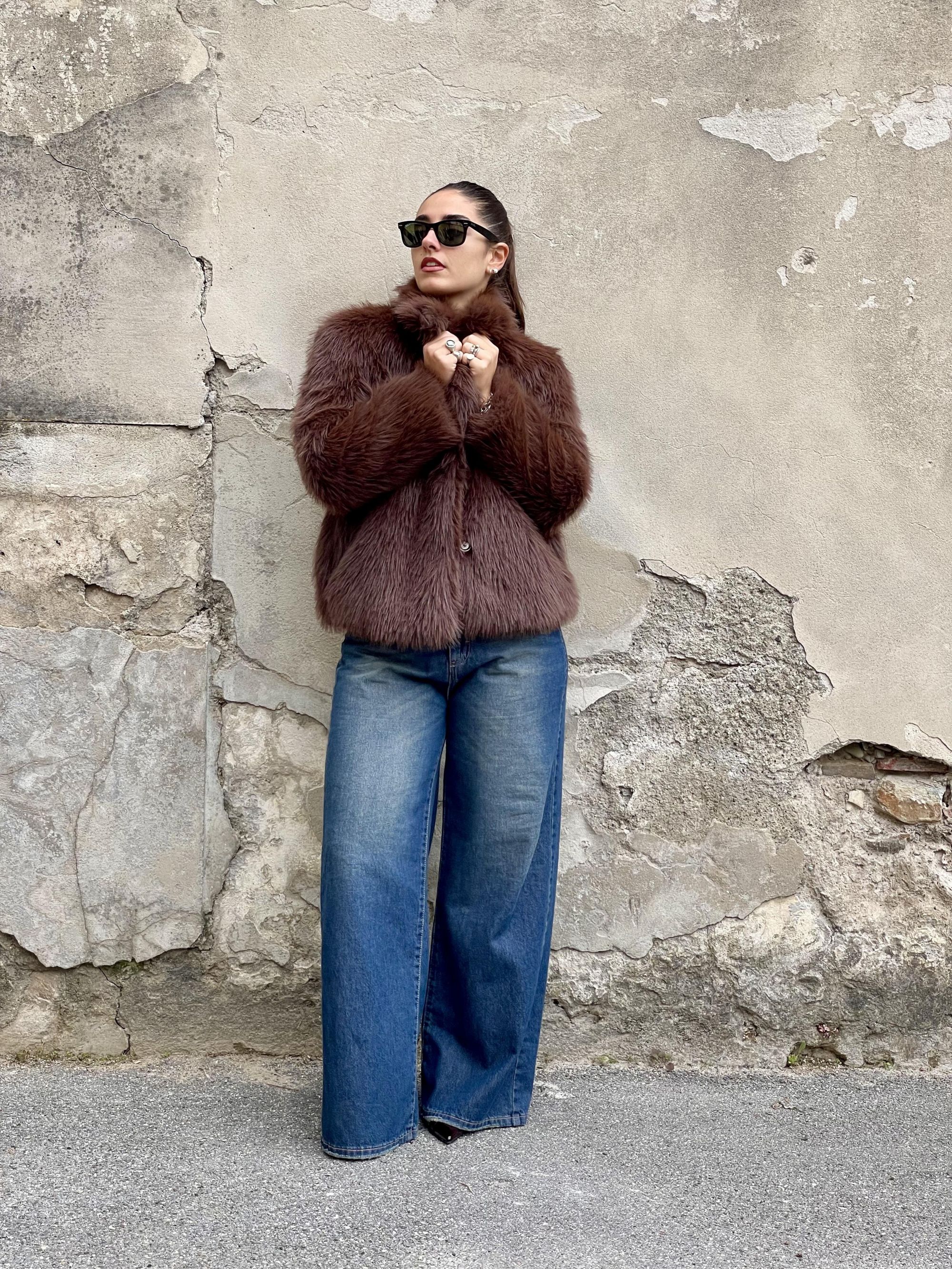 TENSIONE IN - GIACCA ECOPELLICCIA MARRONE ART. 225088-1
