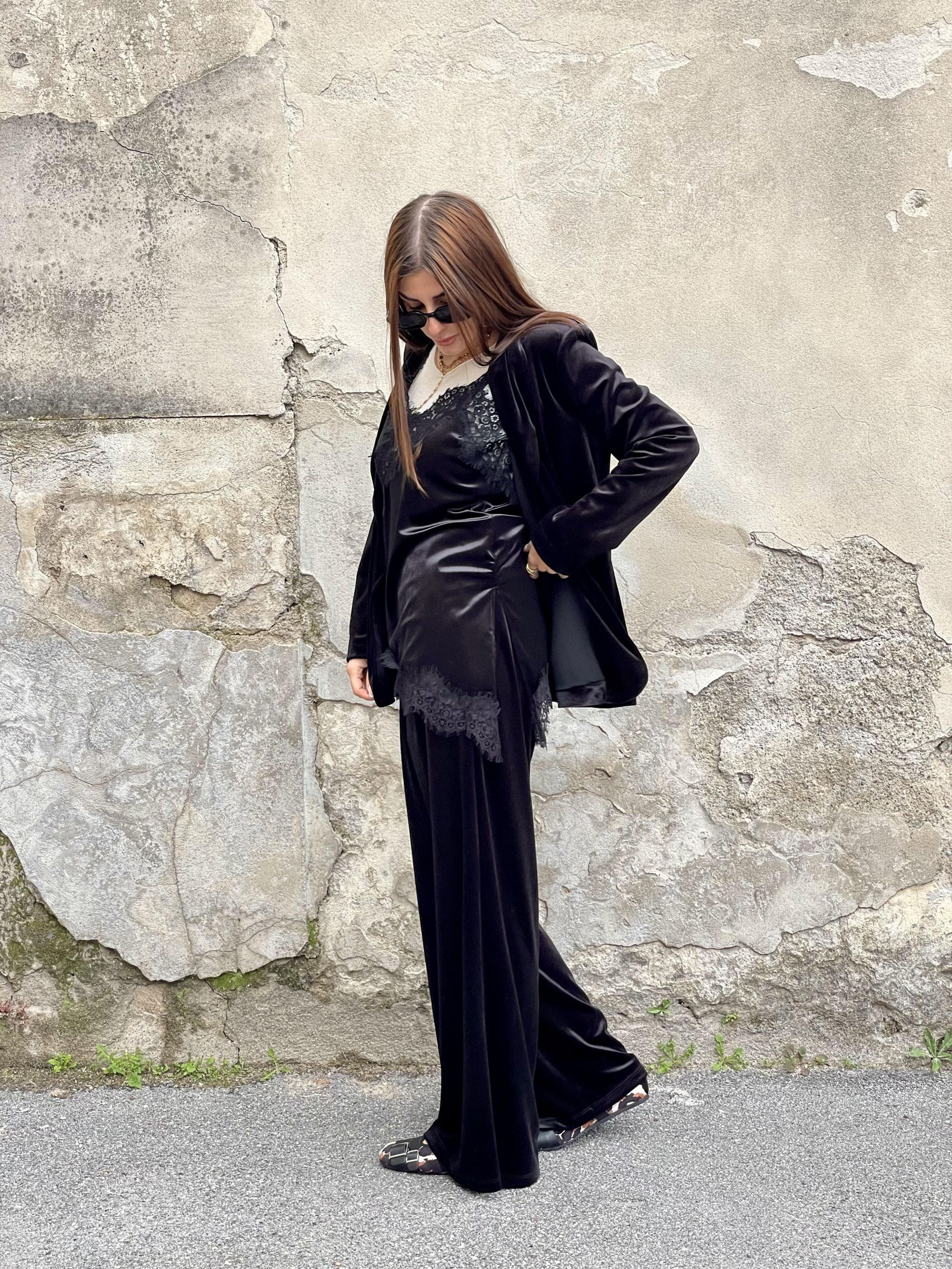 TENSIONE IN - PANTALONE PALAZZO MORO CON TASCHE DAVANTI ART. CJ12707