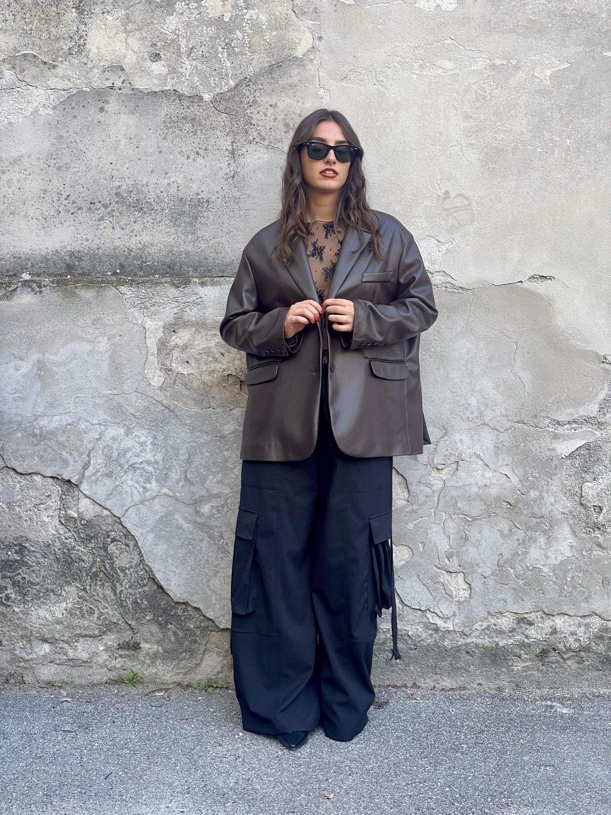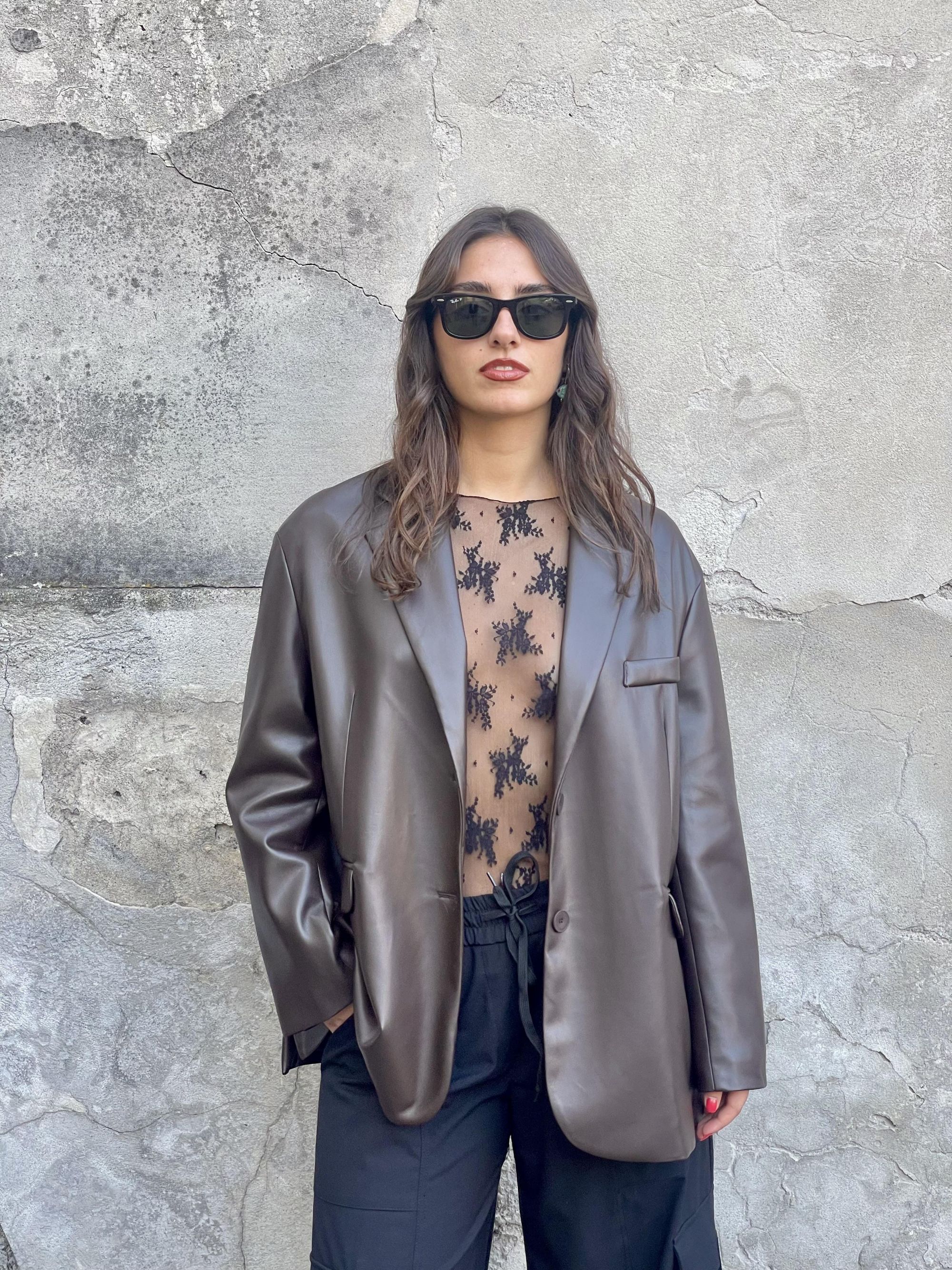 TENSIONE IN - GIACCA OVER ECOPELLE MORO ART. 26B1053