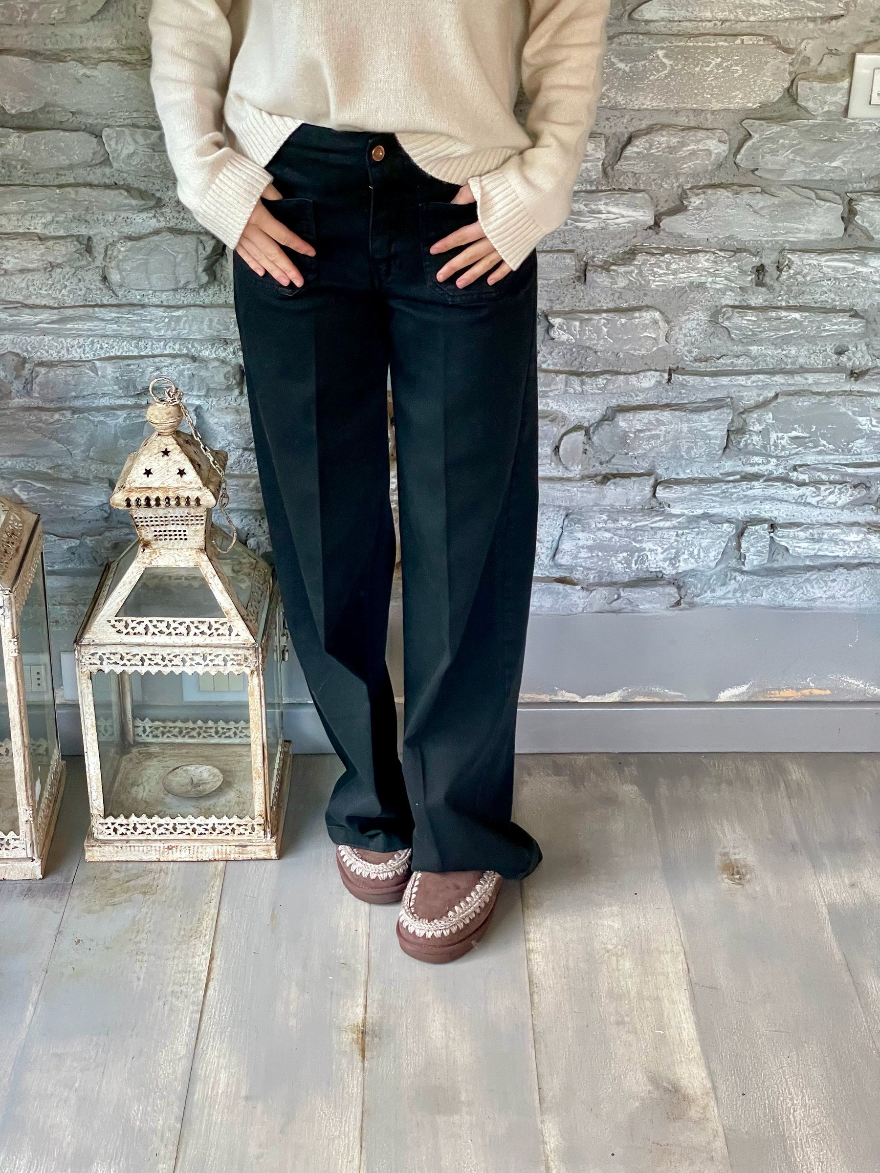 TENSIONE IN - PANTALONE PALAZZO NERO CON TASCHE DAVANTI ART. CJ12707