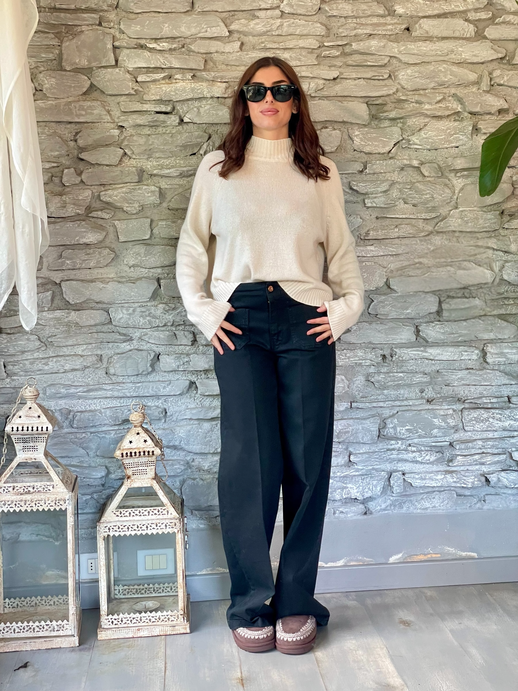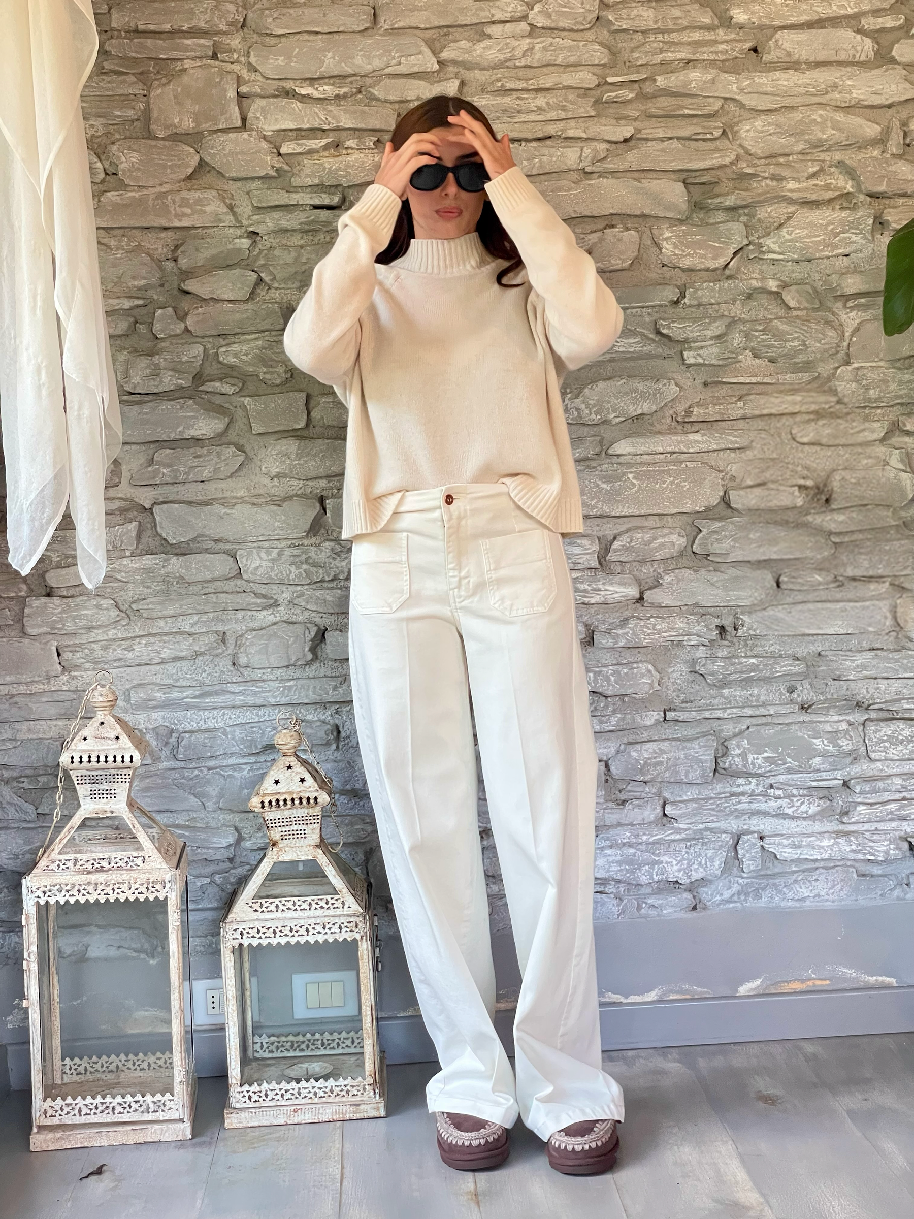 TENSIONE IN - PANTALONE PALAZZO PANNA CON TASCHE DAVANTI ART. CJ12707