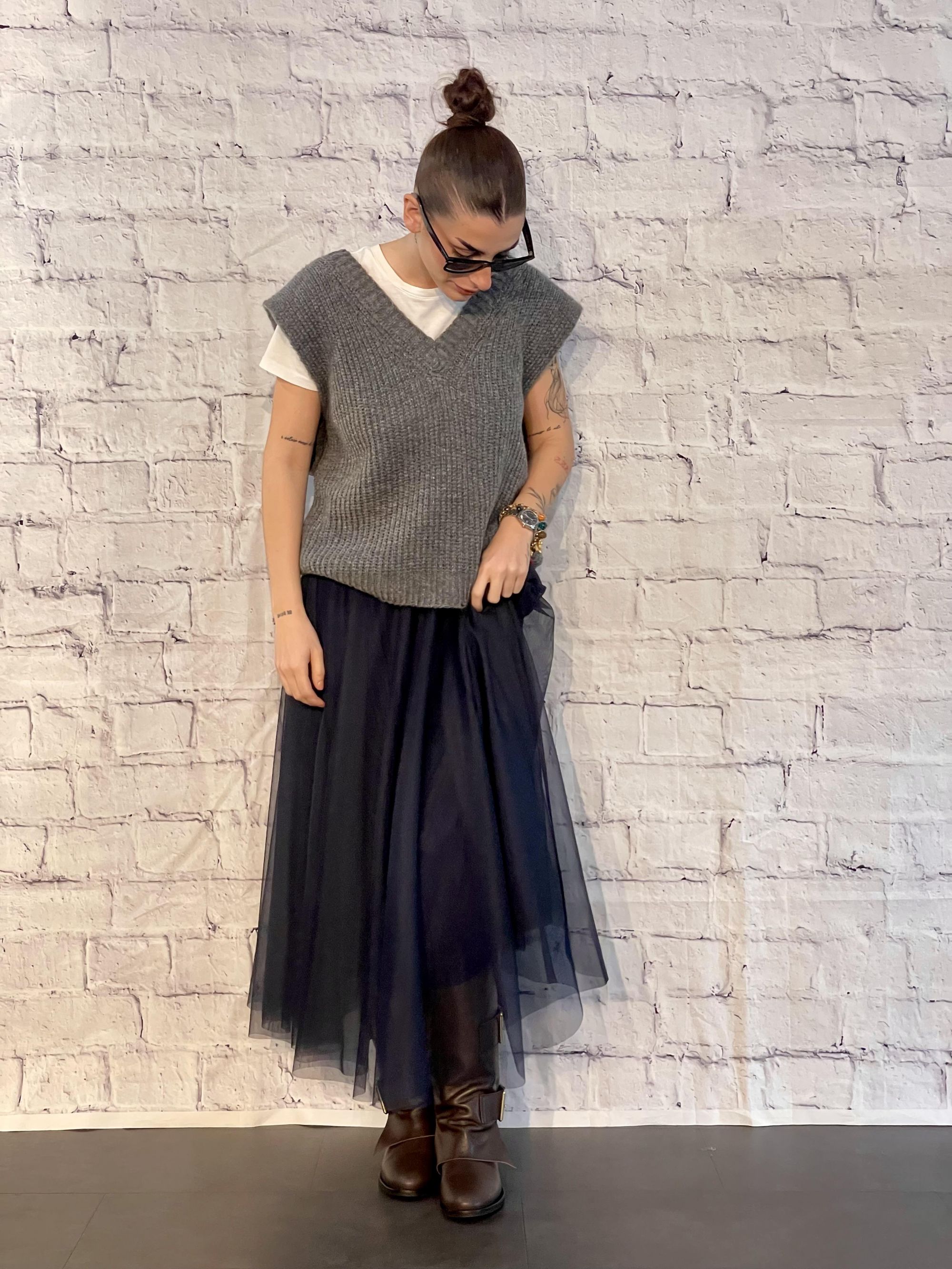 MDIMATILDE - GILET SCOLLO A V GRIGIO A COSTE INGLESI ART. 25523