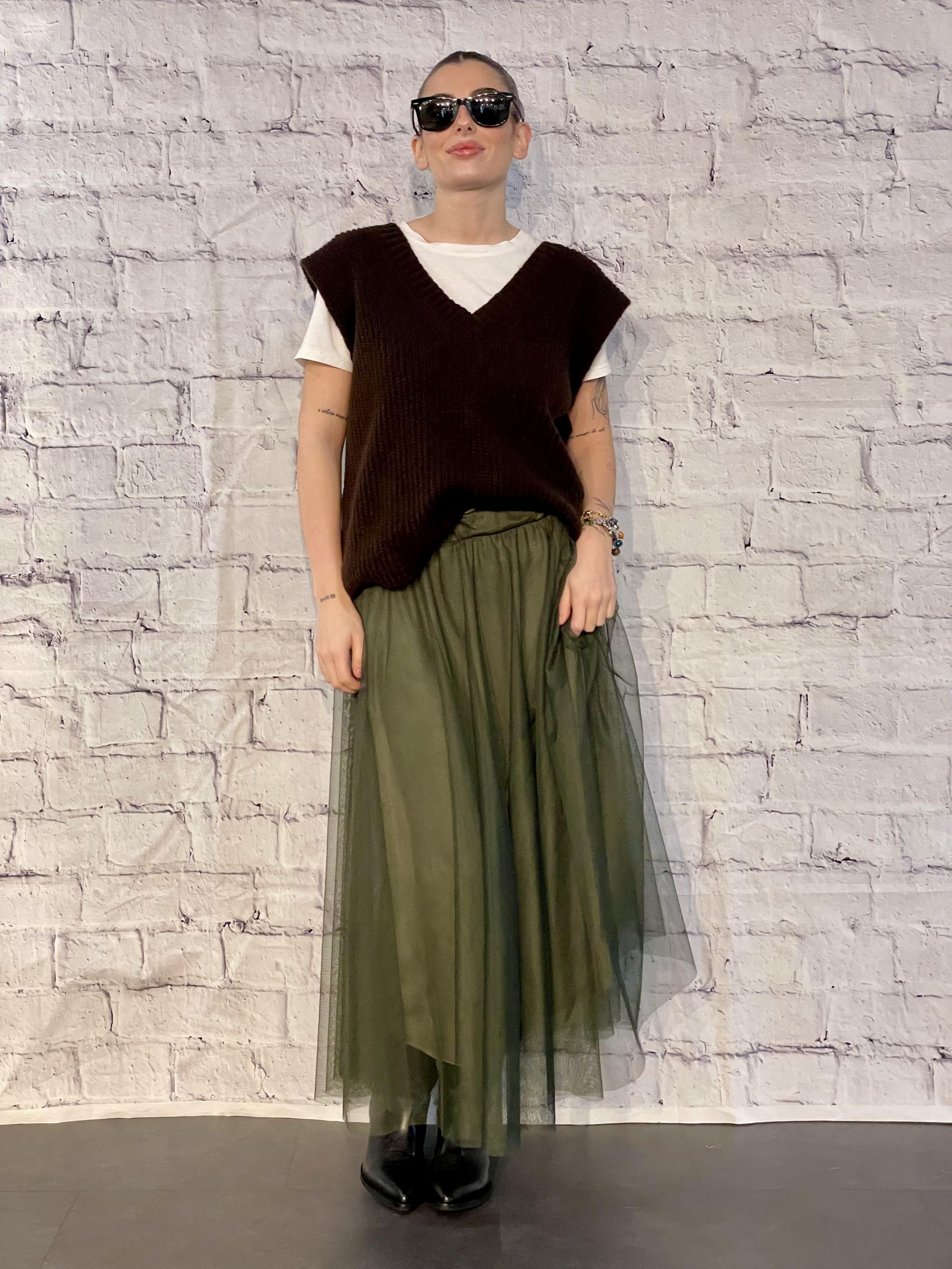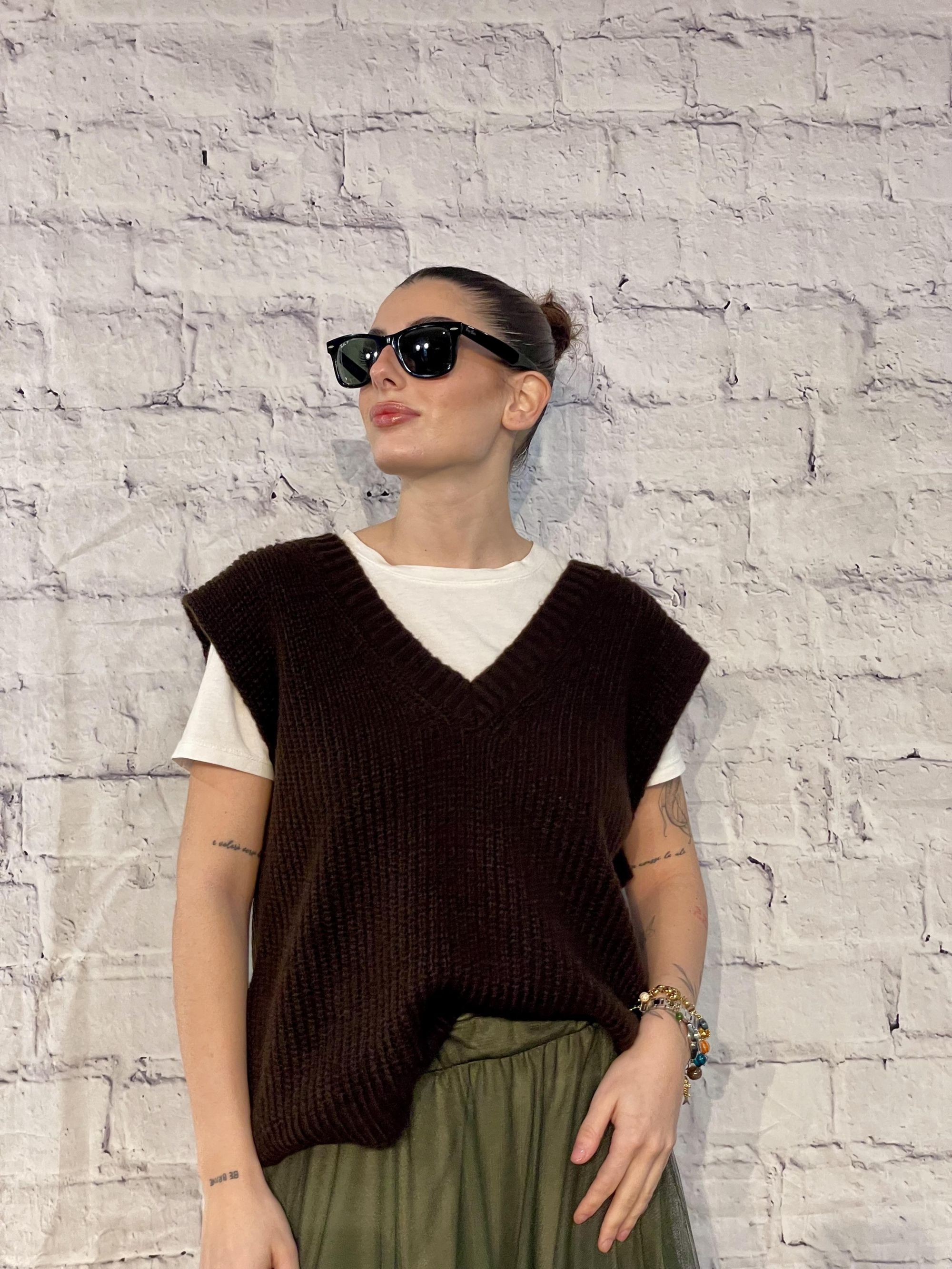 MDIMATILDE - GILET SCOLLO A V MARRONE A COSTE INGLESI ART. 25523