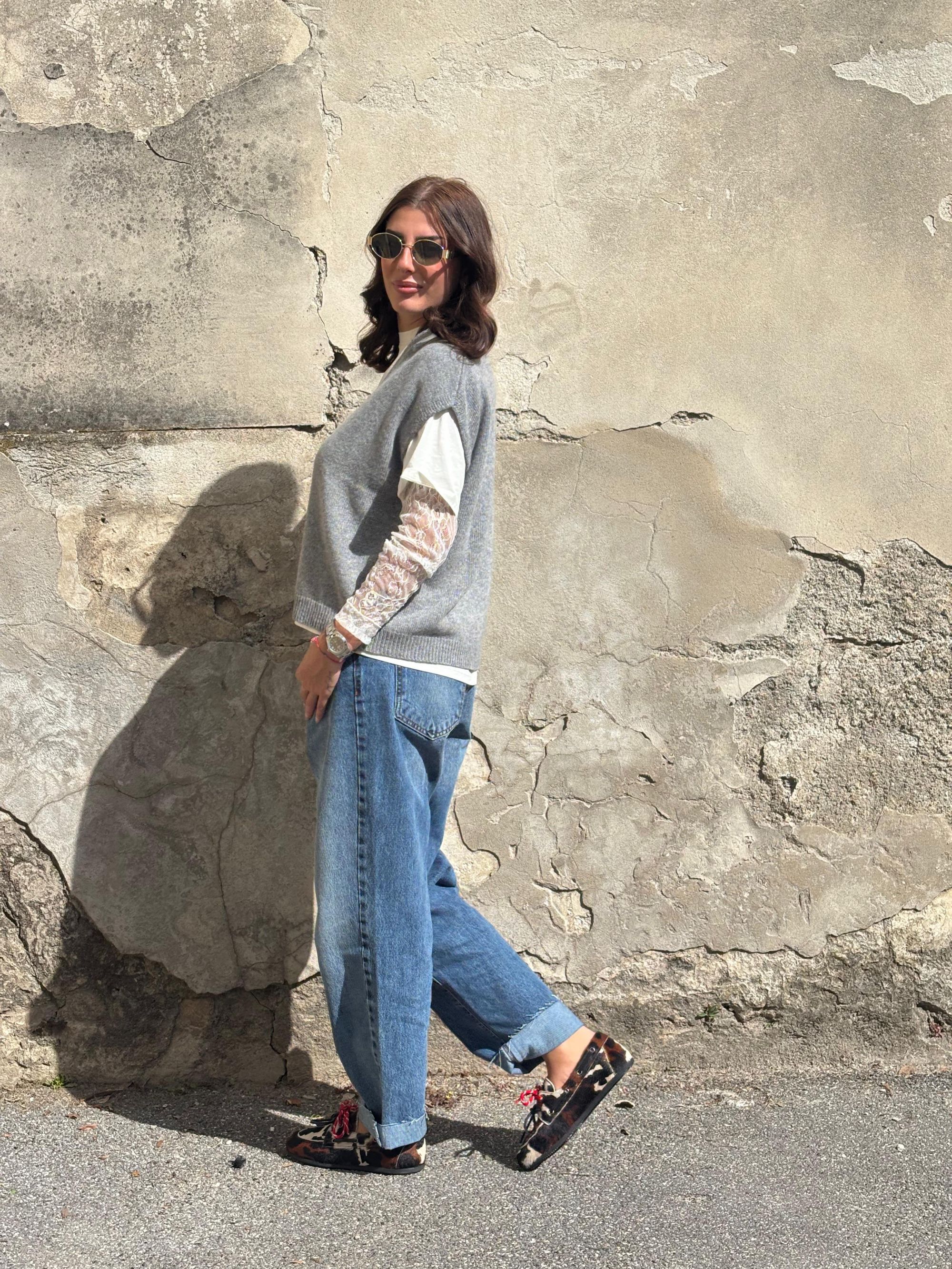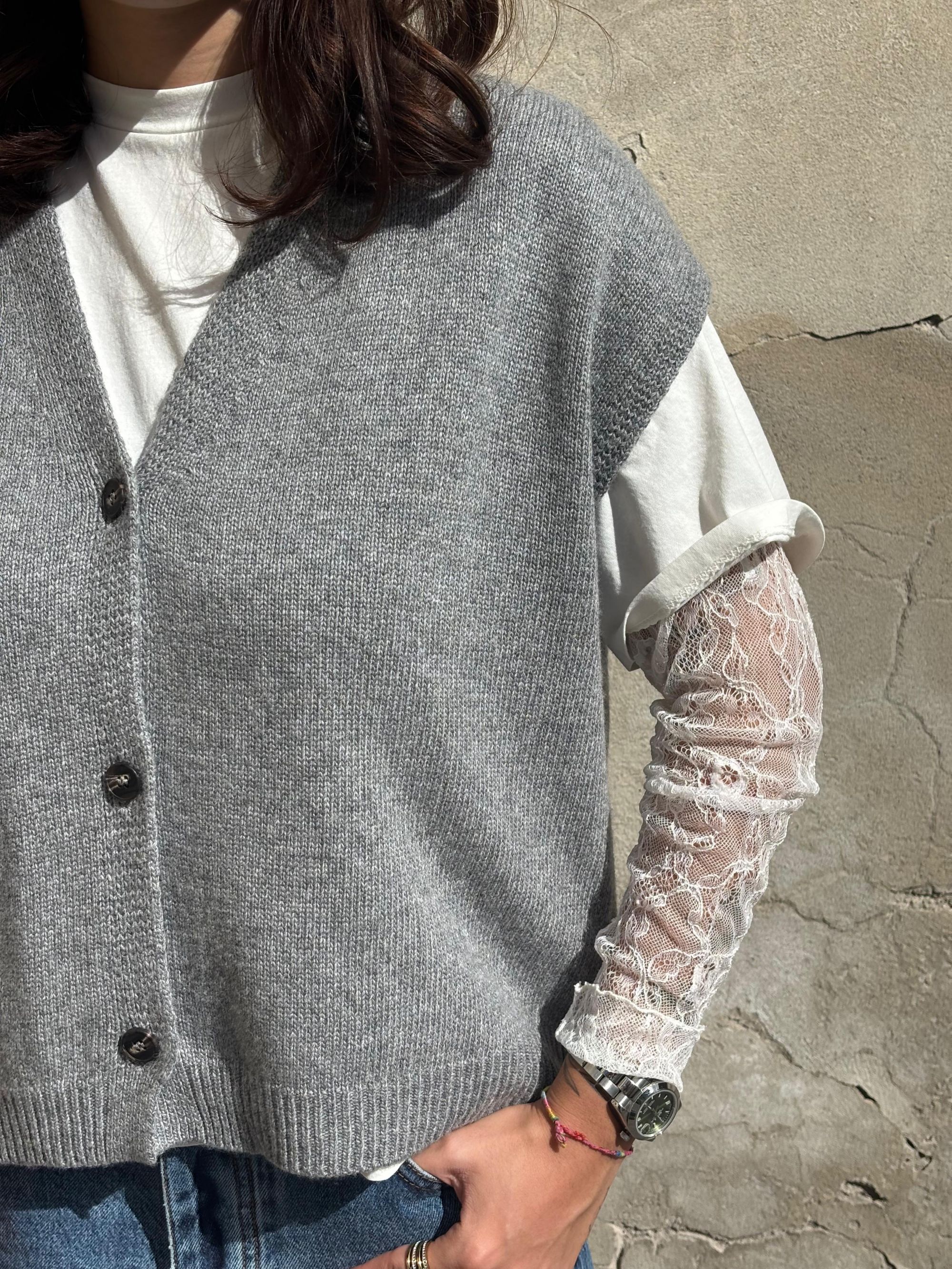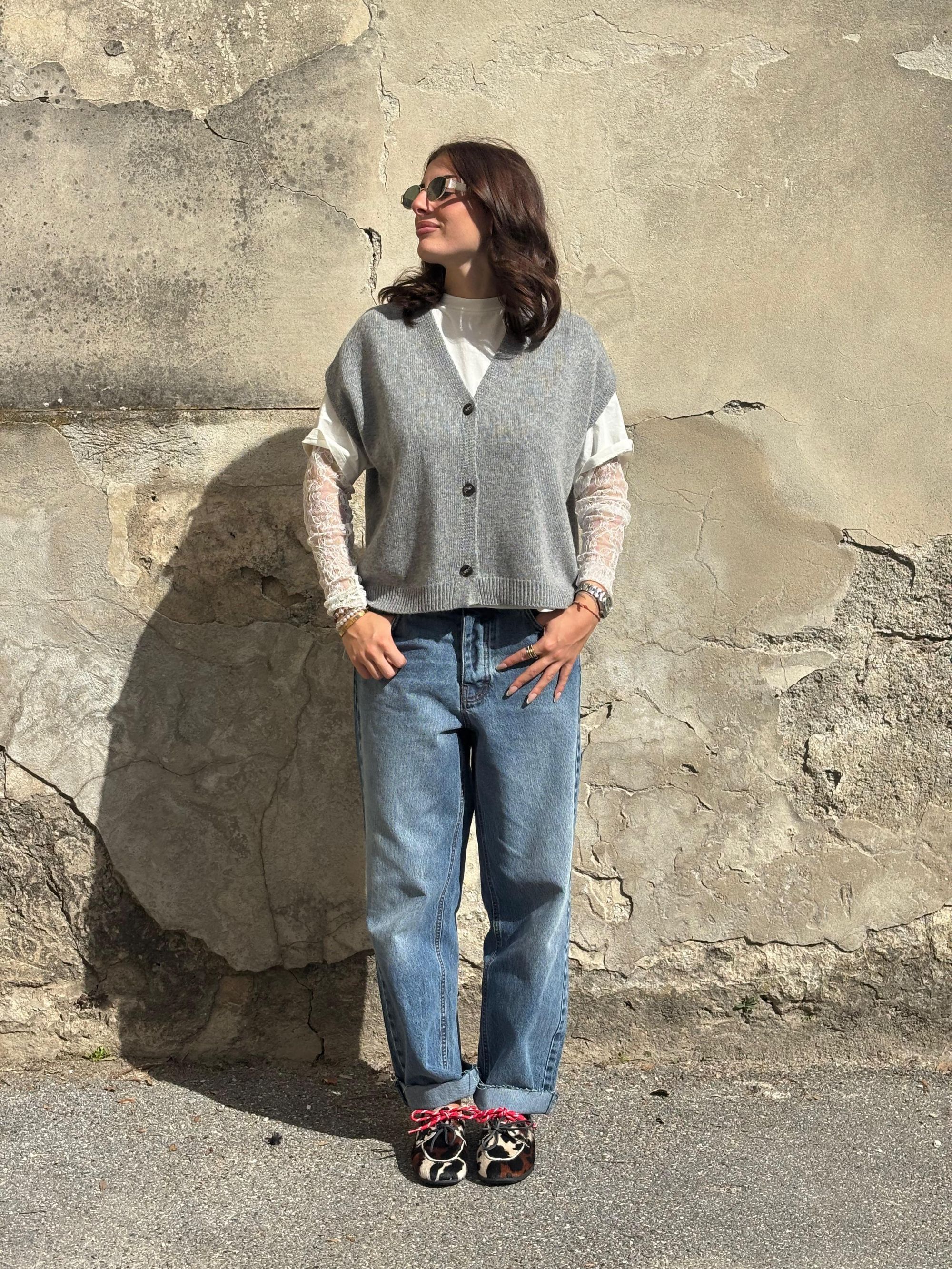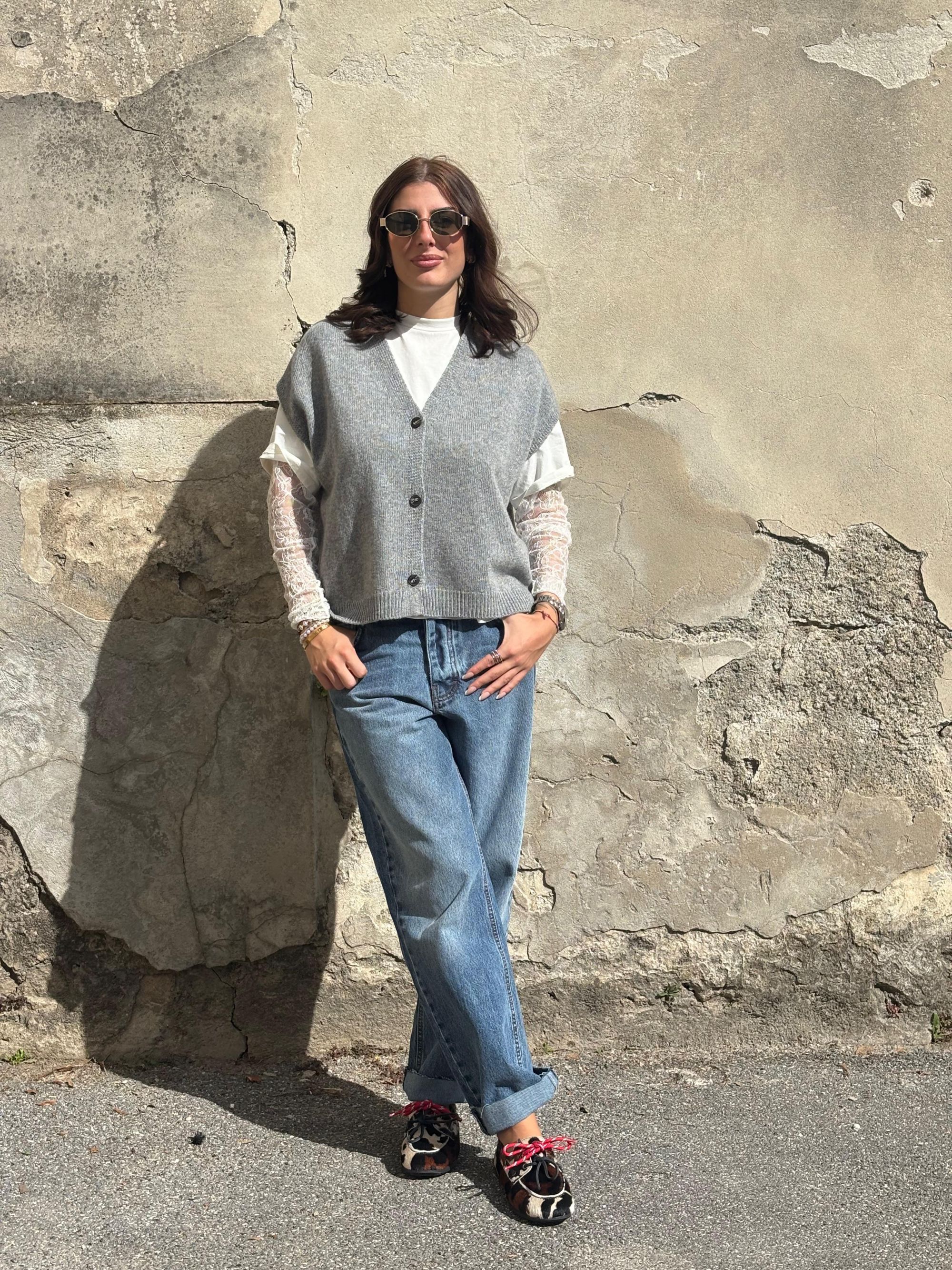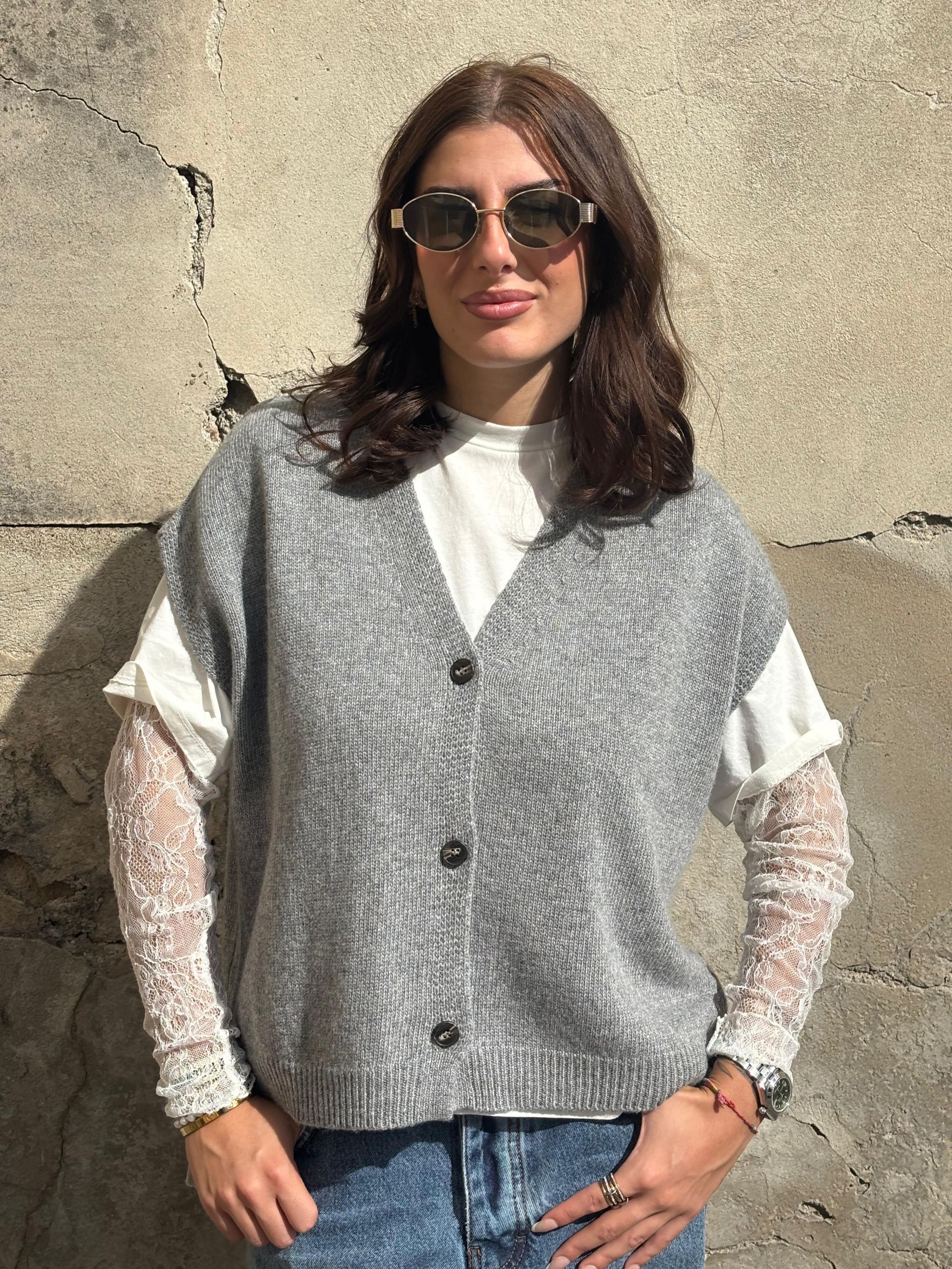 TENSIONE IN - GILET SCOLLO A V GRIGIO CON ABBOTTONATURA ART. D80014
