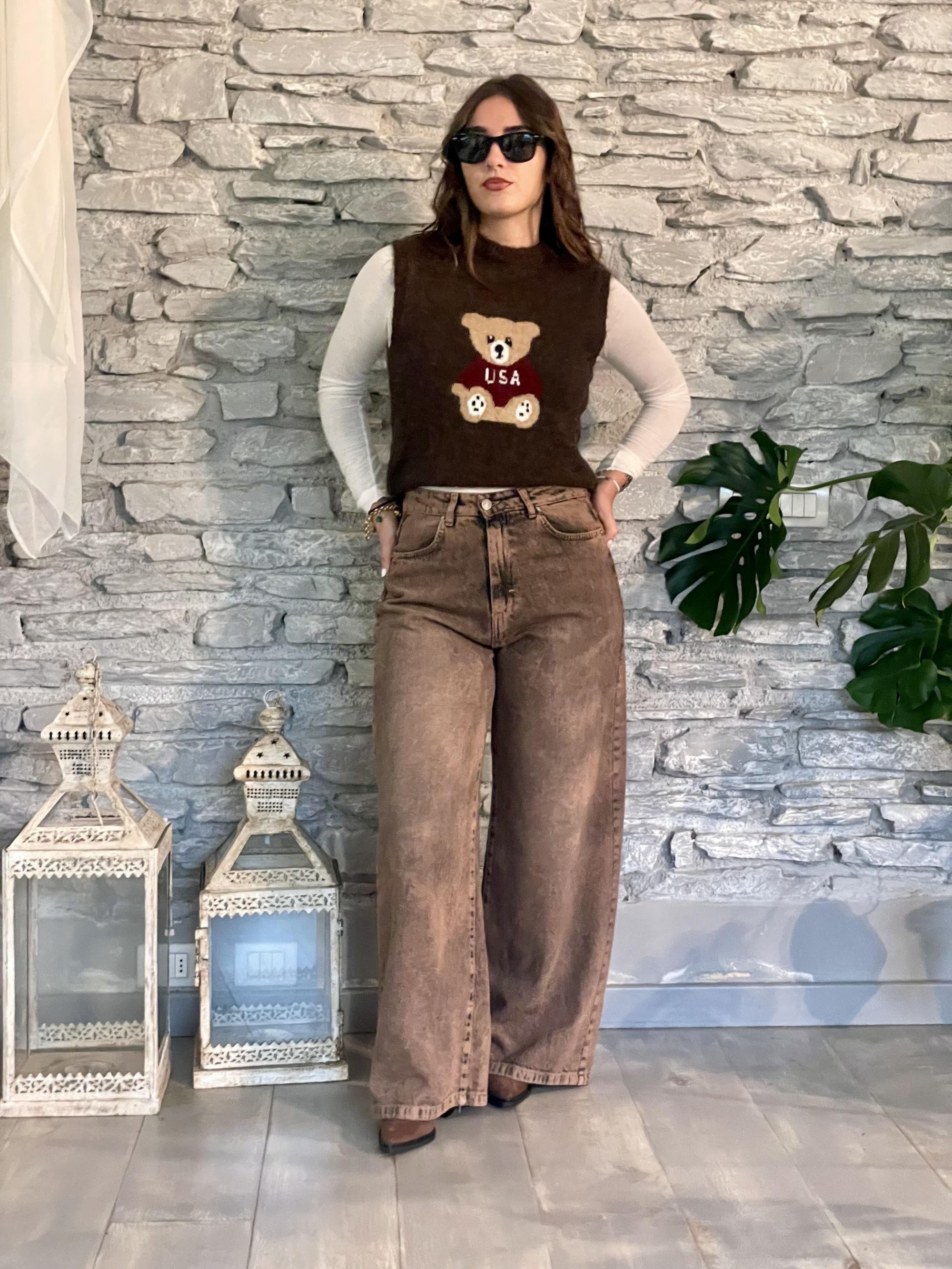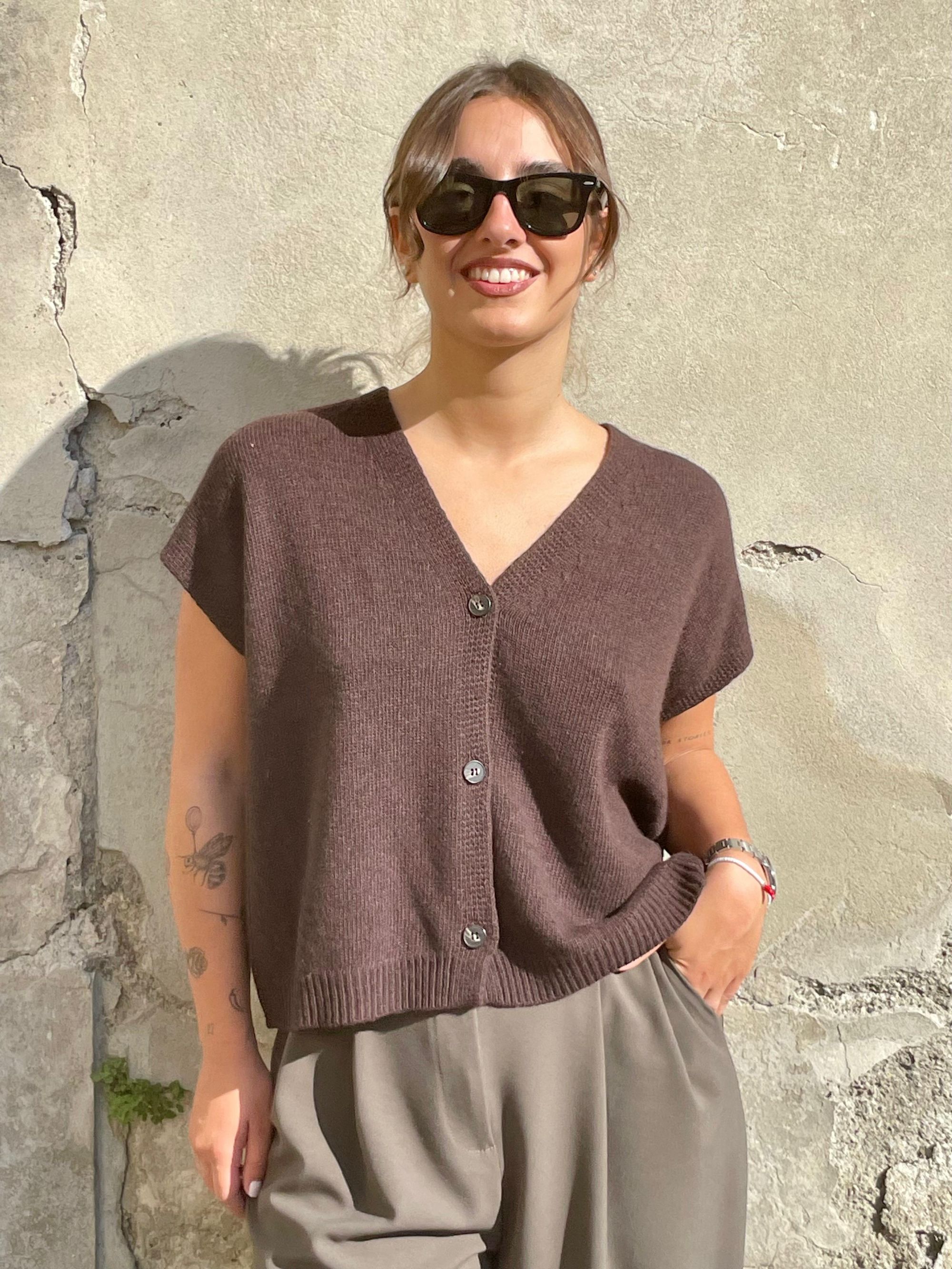TENSIONE IN - GILET SCOLLO A V MARRONE CON ABBOTTONATURA ART. D80014