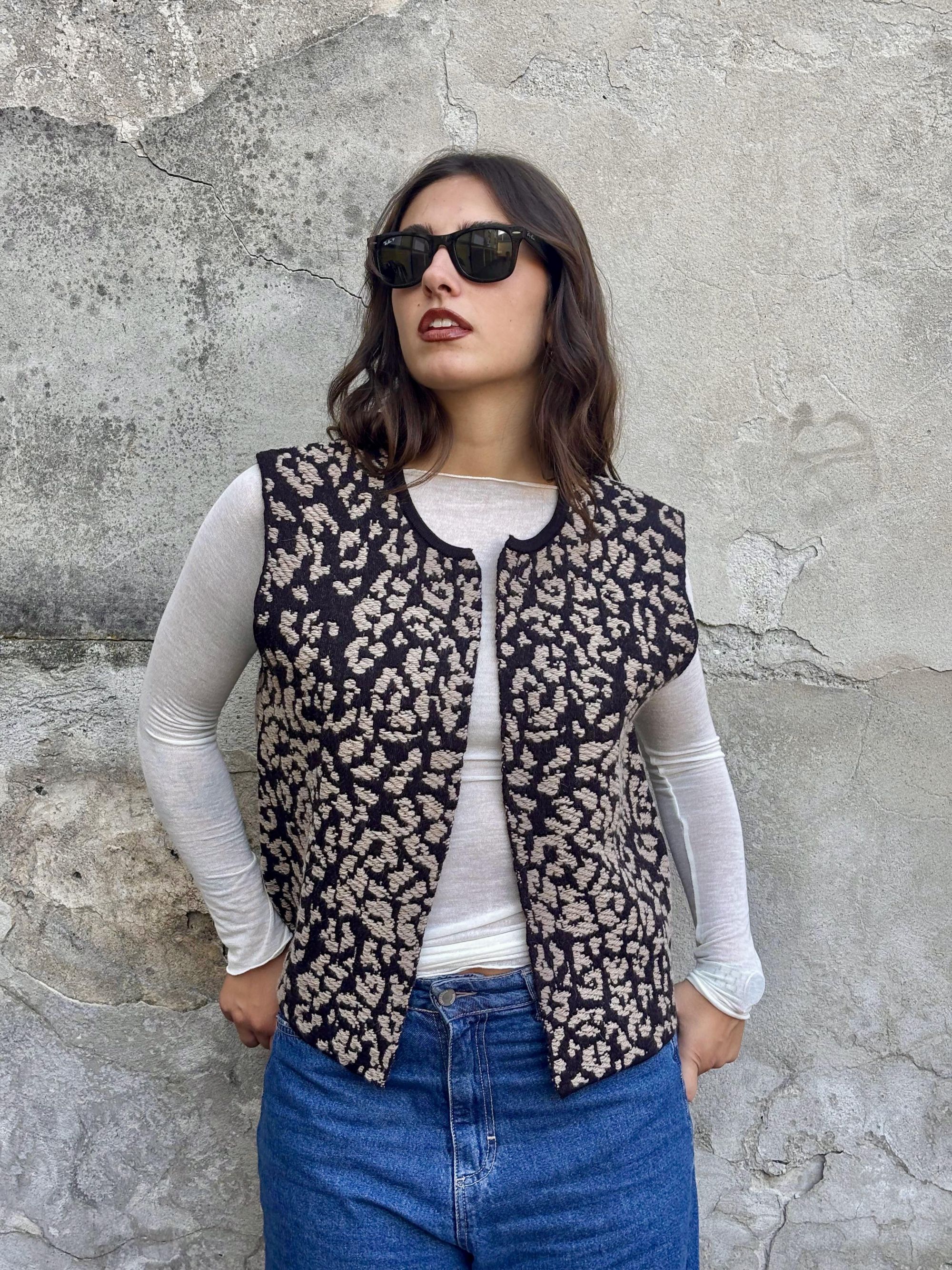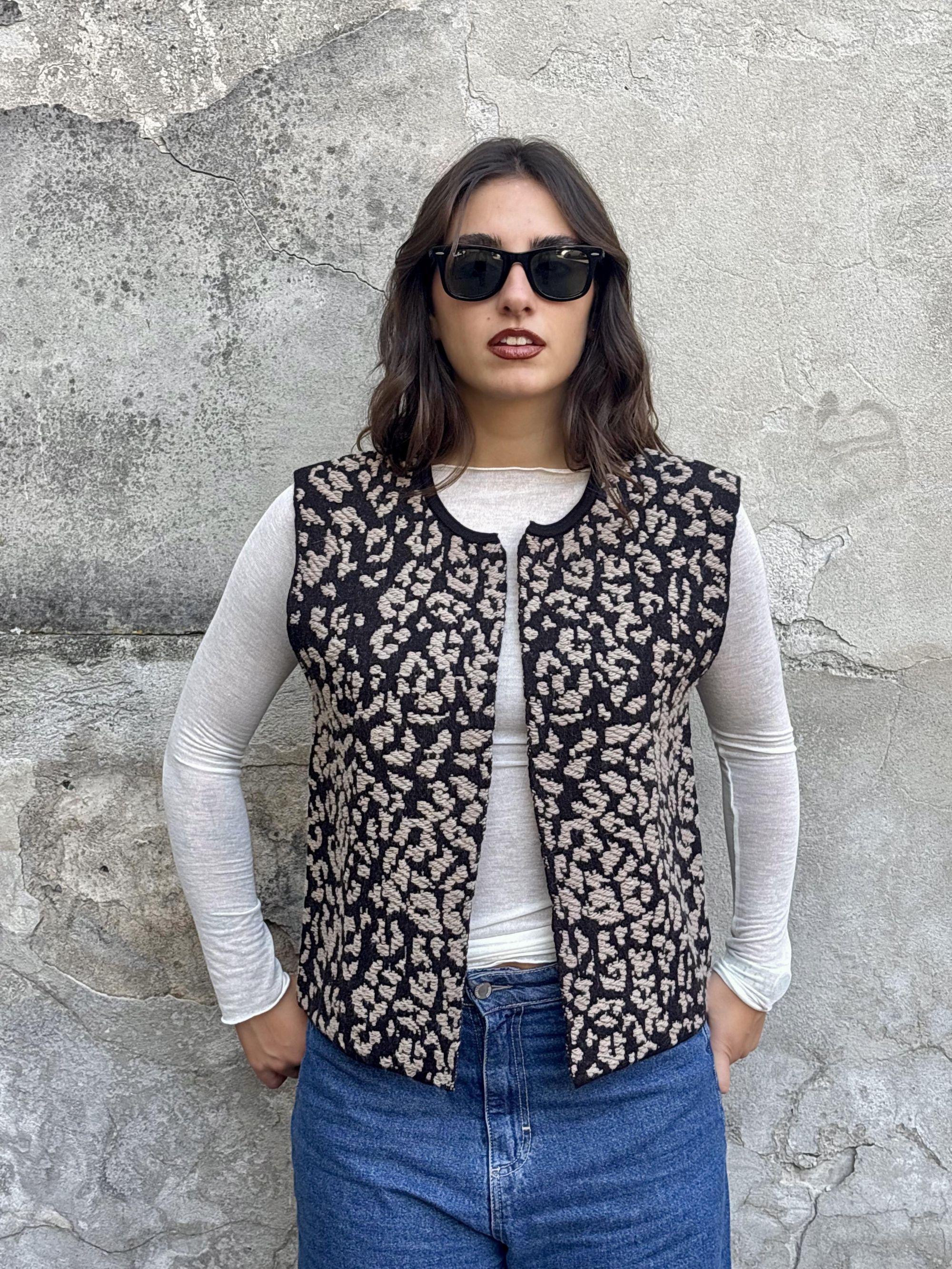 TENSIONE IN - GILET ANIMALIER TAUPE ART. W5MG85A400