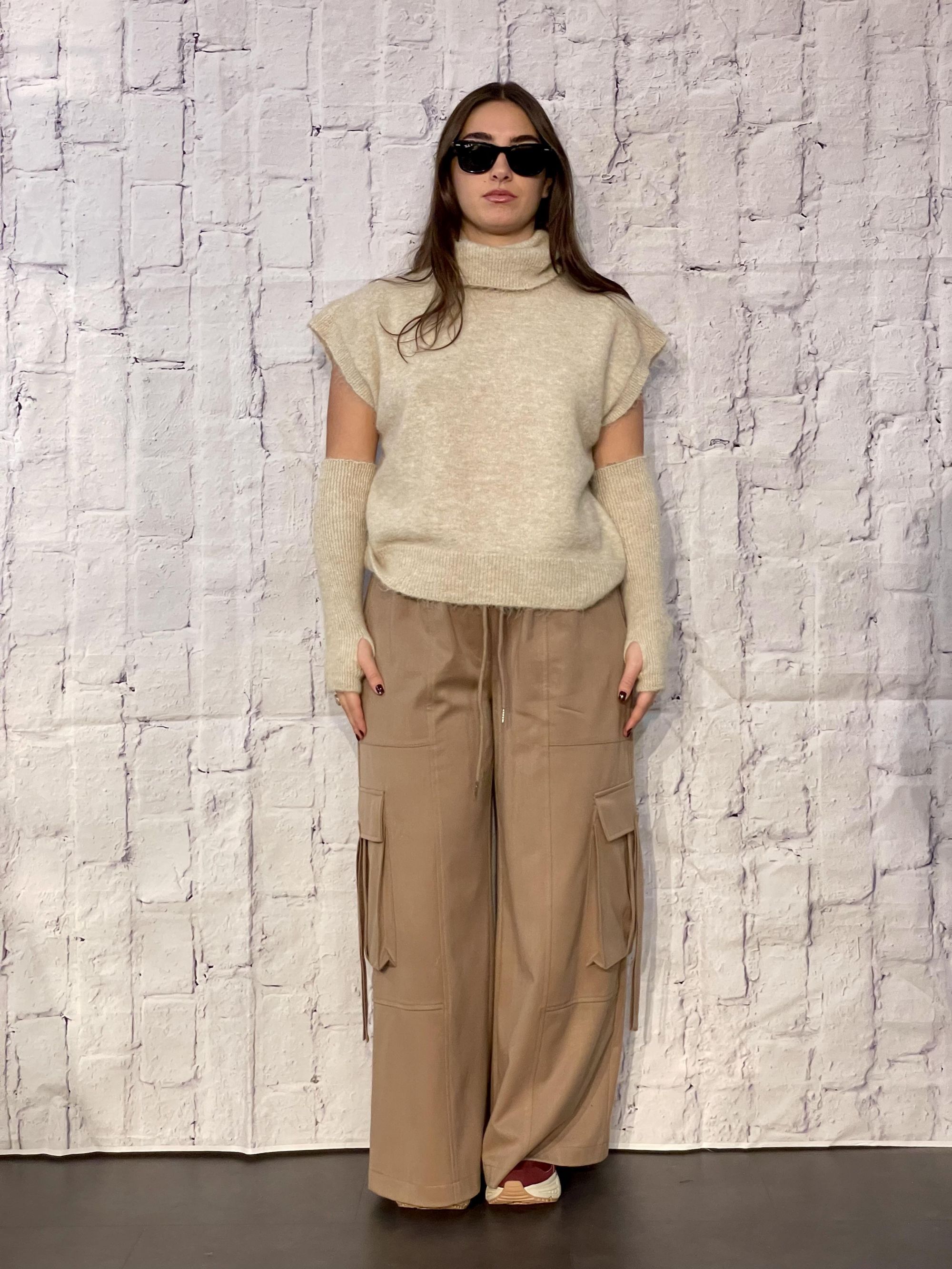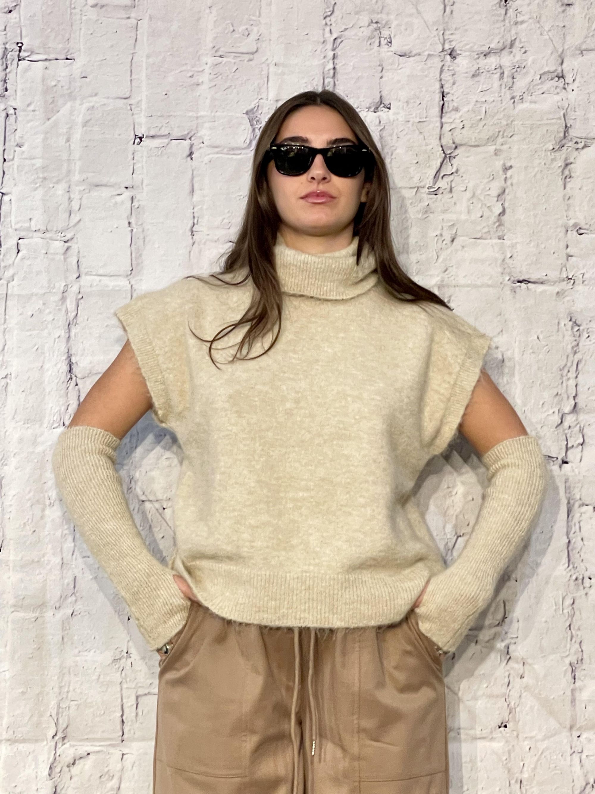 TENSIONE IN - GILET BEIGE COLLO ALTO CON MANICOTTI ART. 26030