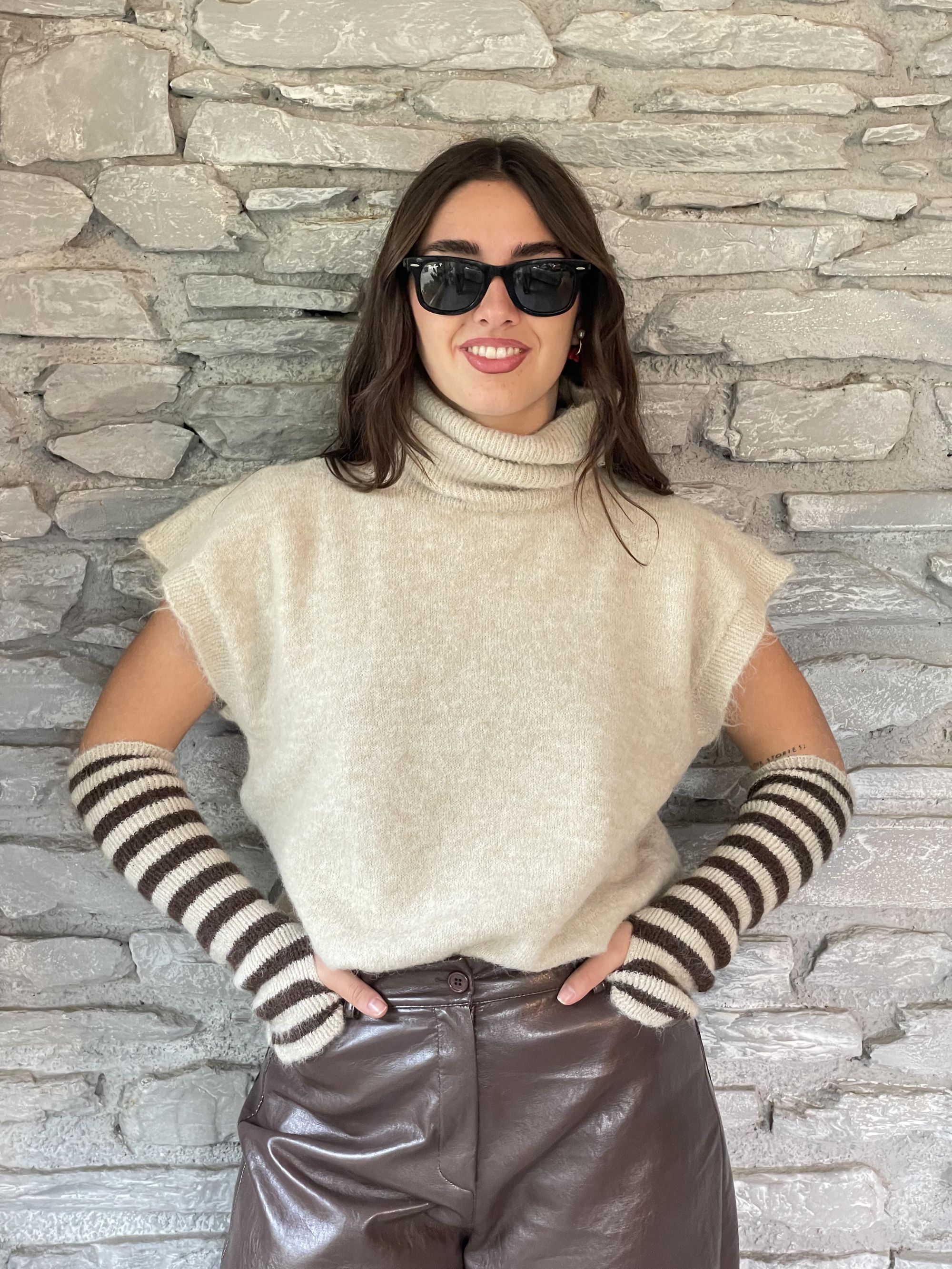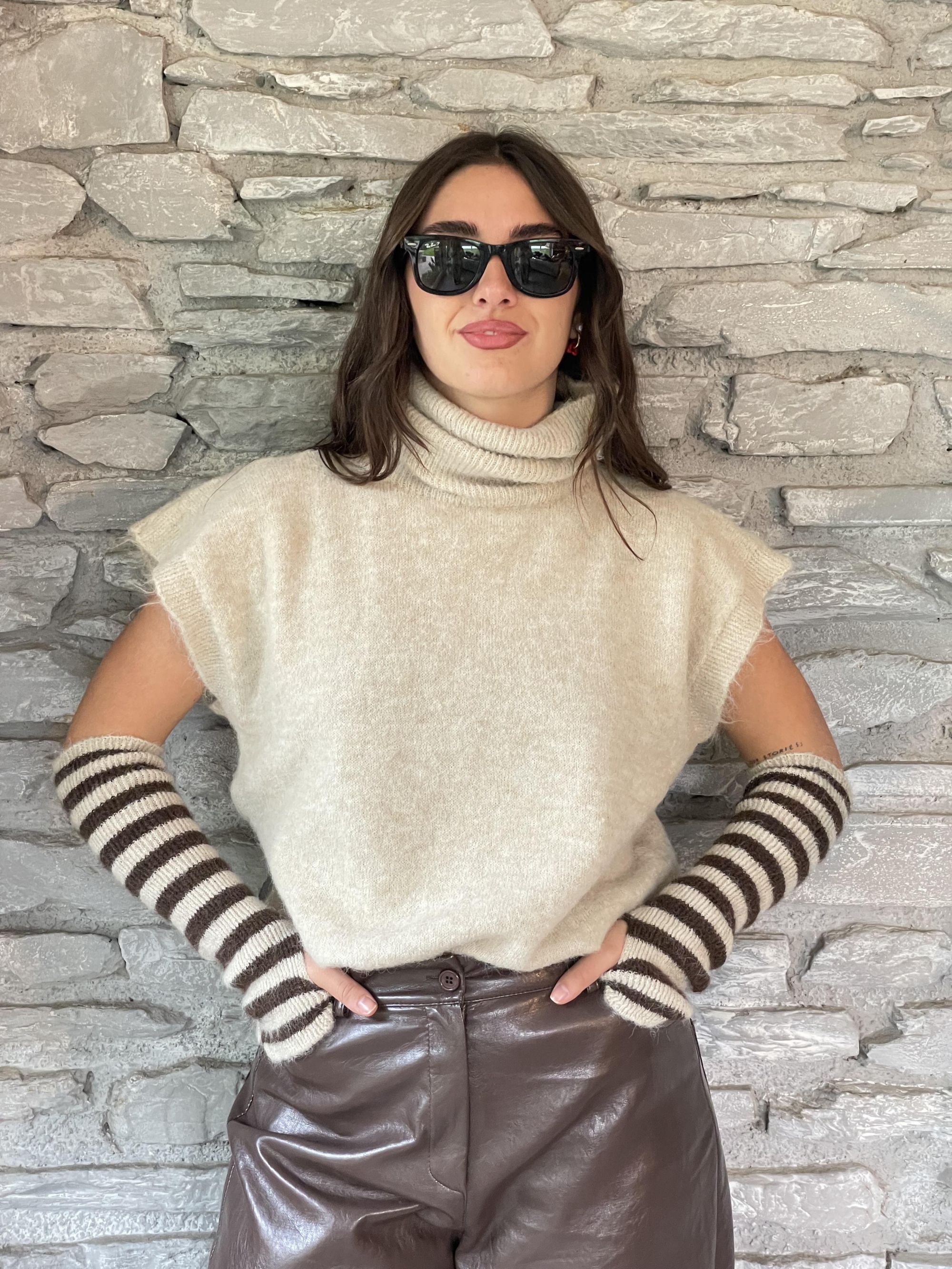 TENSIONE IN - GILET BEIGE CON MANICOTTI A RIGHE ART. 26031
