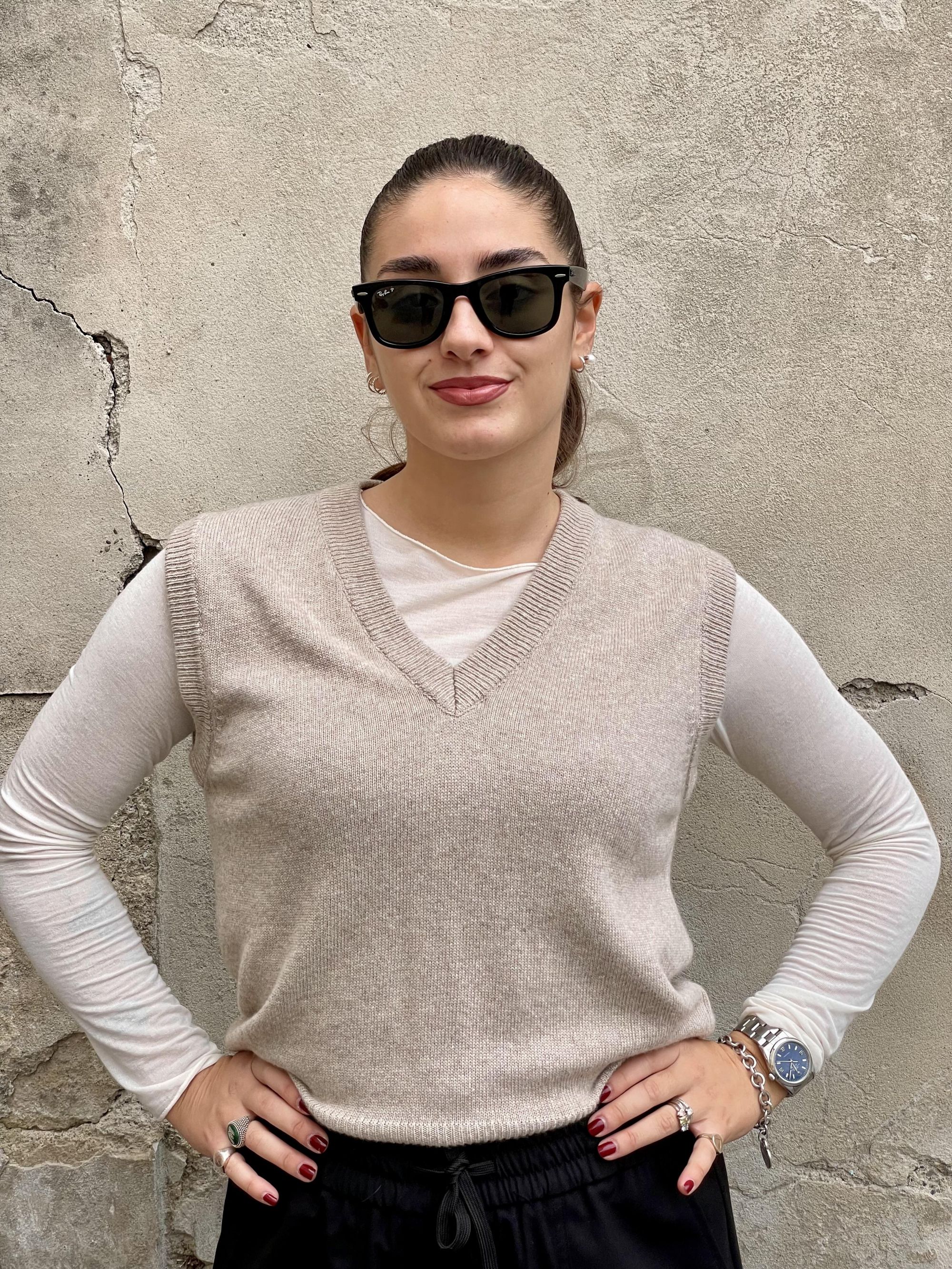 TENSIONE IN - GILET BEIGE SCOLLO A V ART. D80968