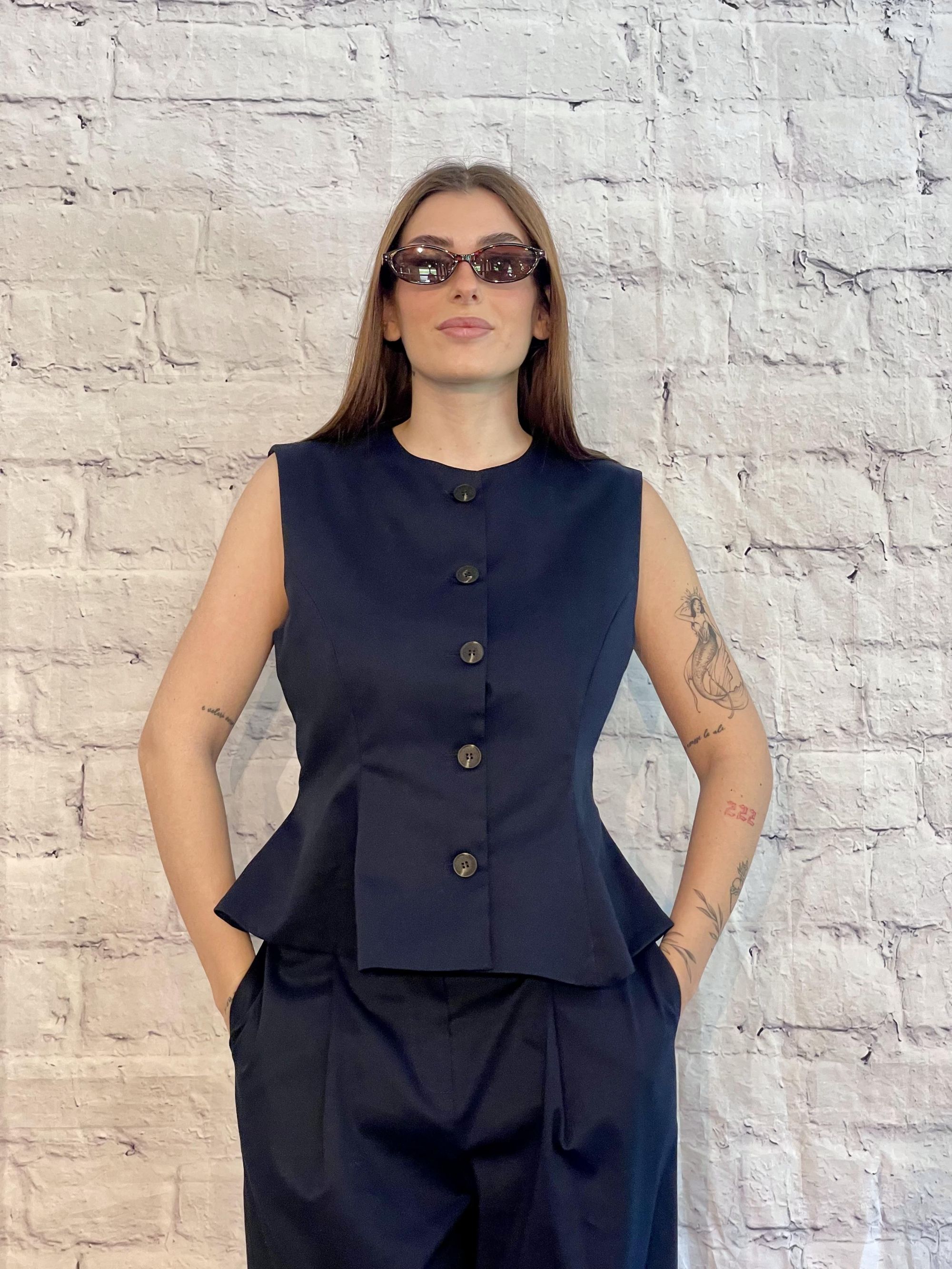TENSIONE IN - GILET BLU SFIANCATO CON SPALLINE IMBOTTITE ART. 26D4508