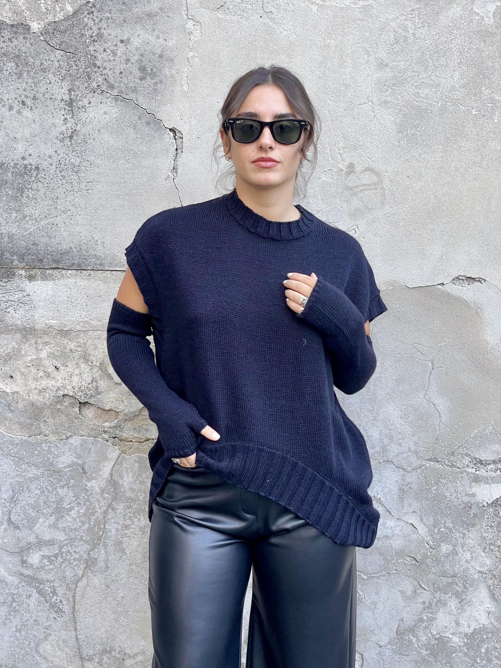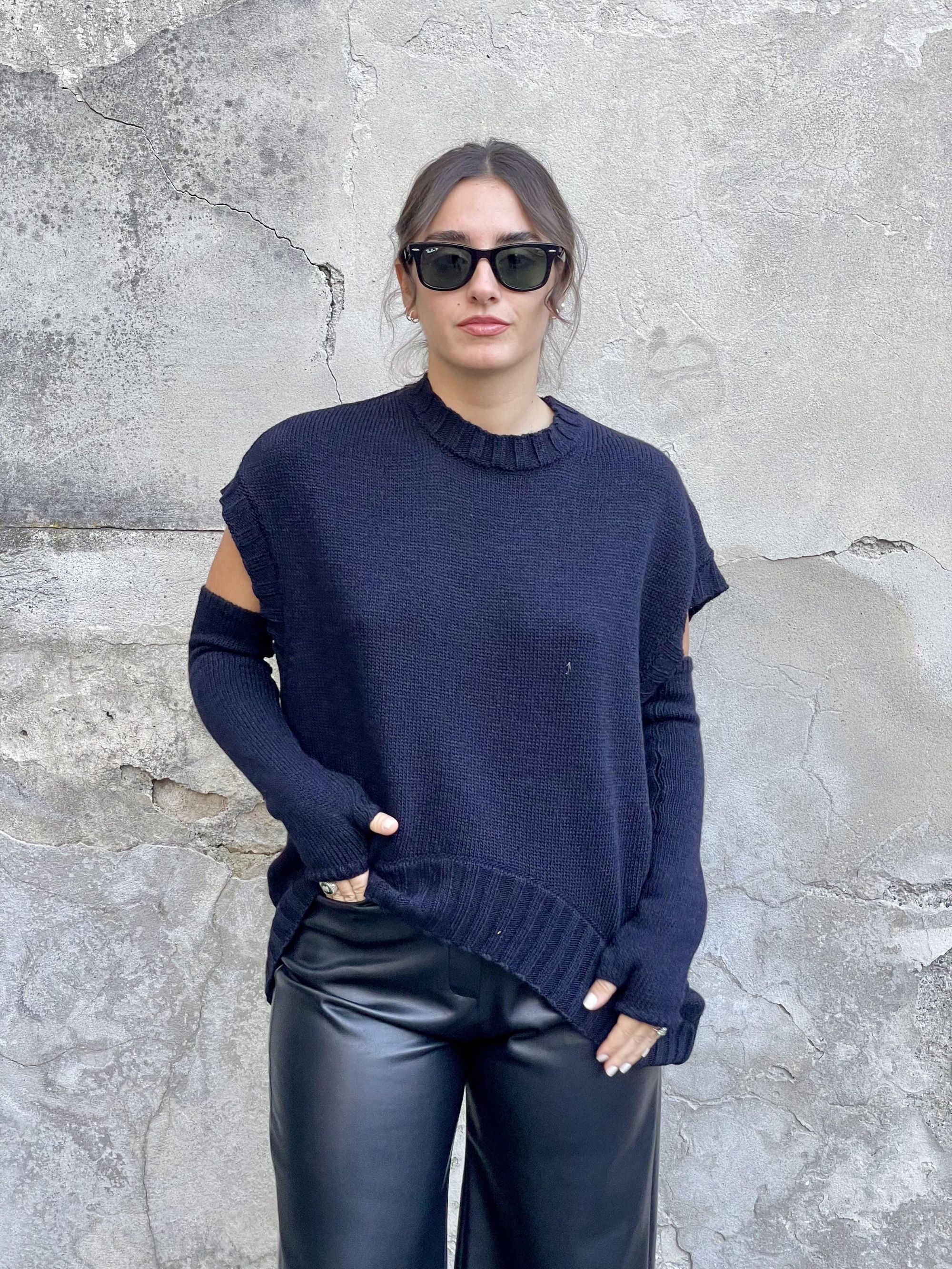 TENSIONE IN - GILET BLU STONDATO CON MANICOTTI ART. 252PA9339
